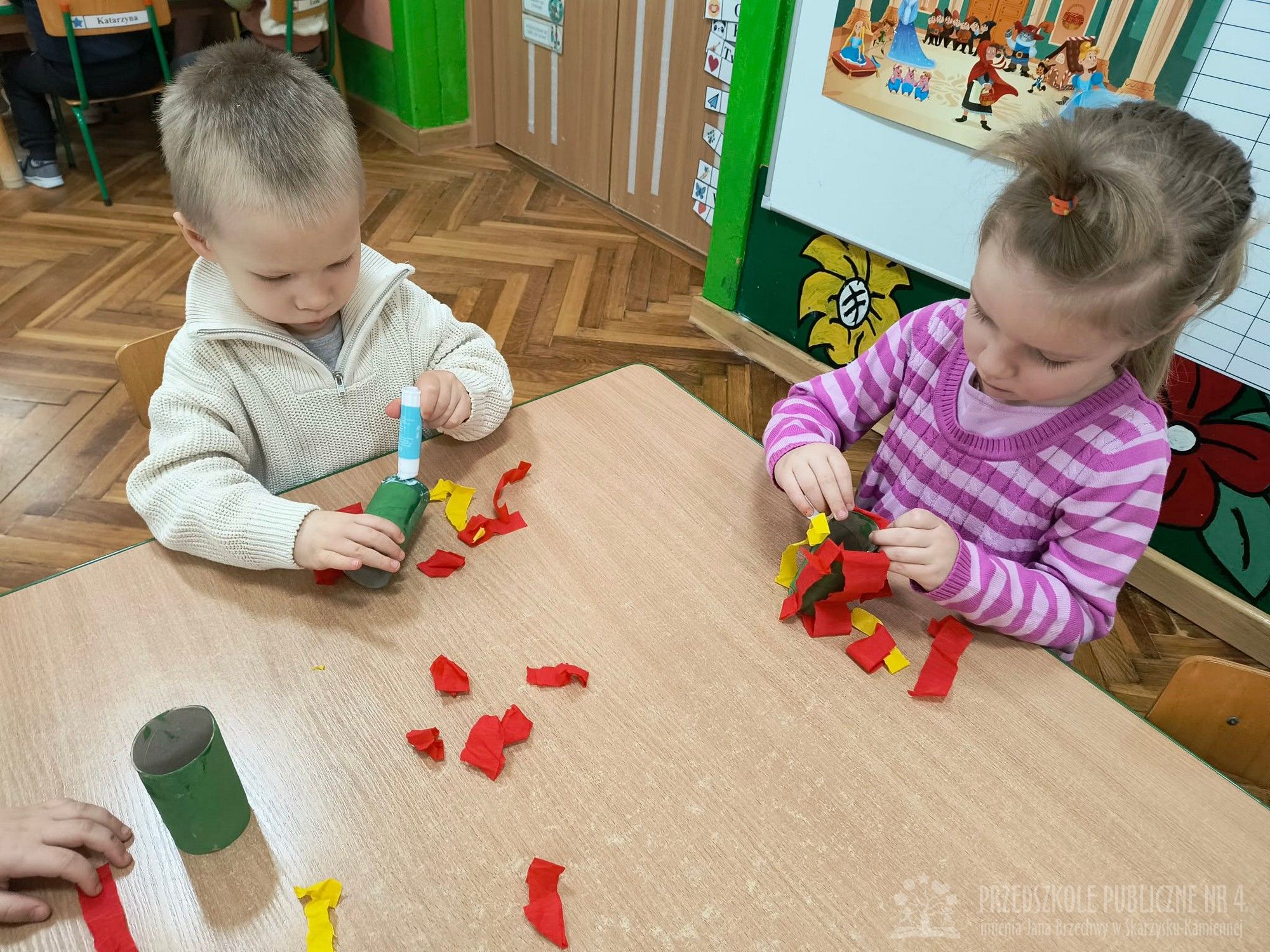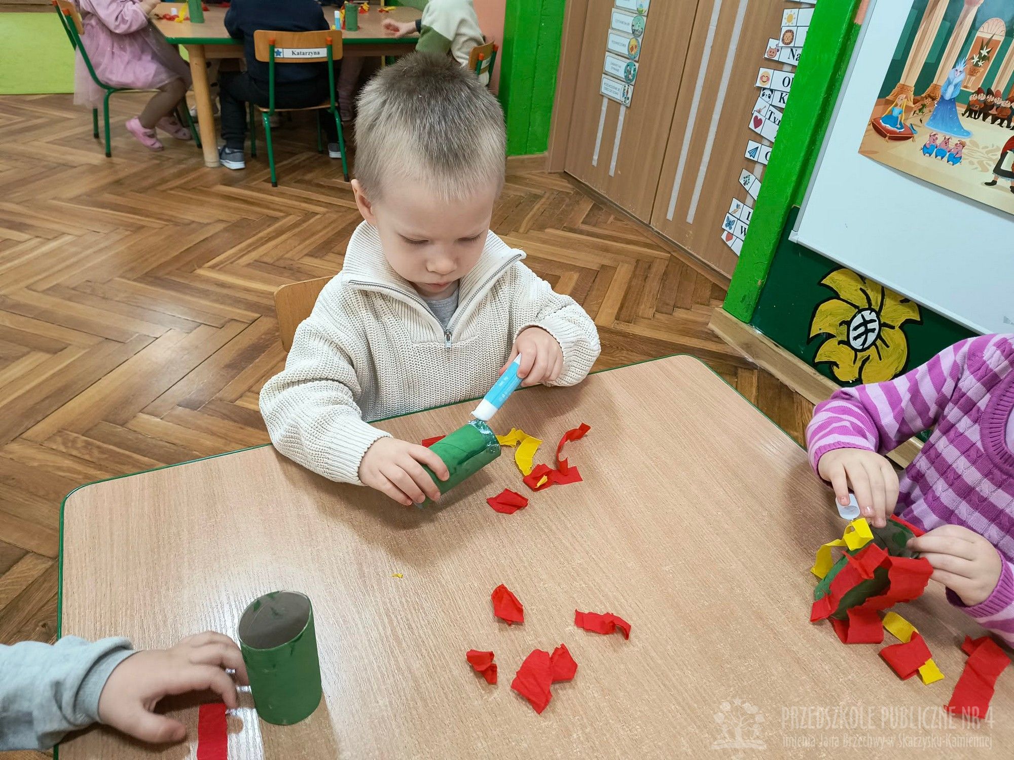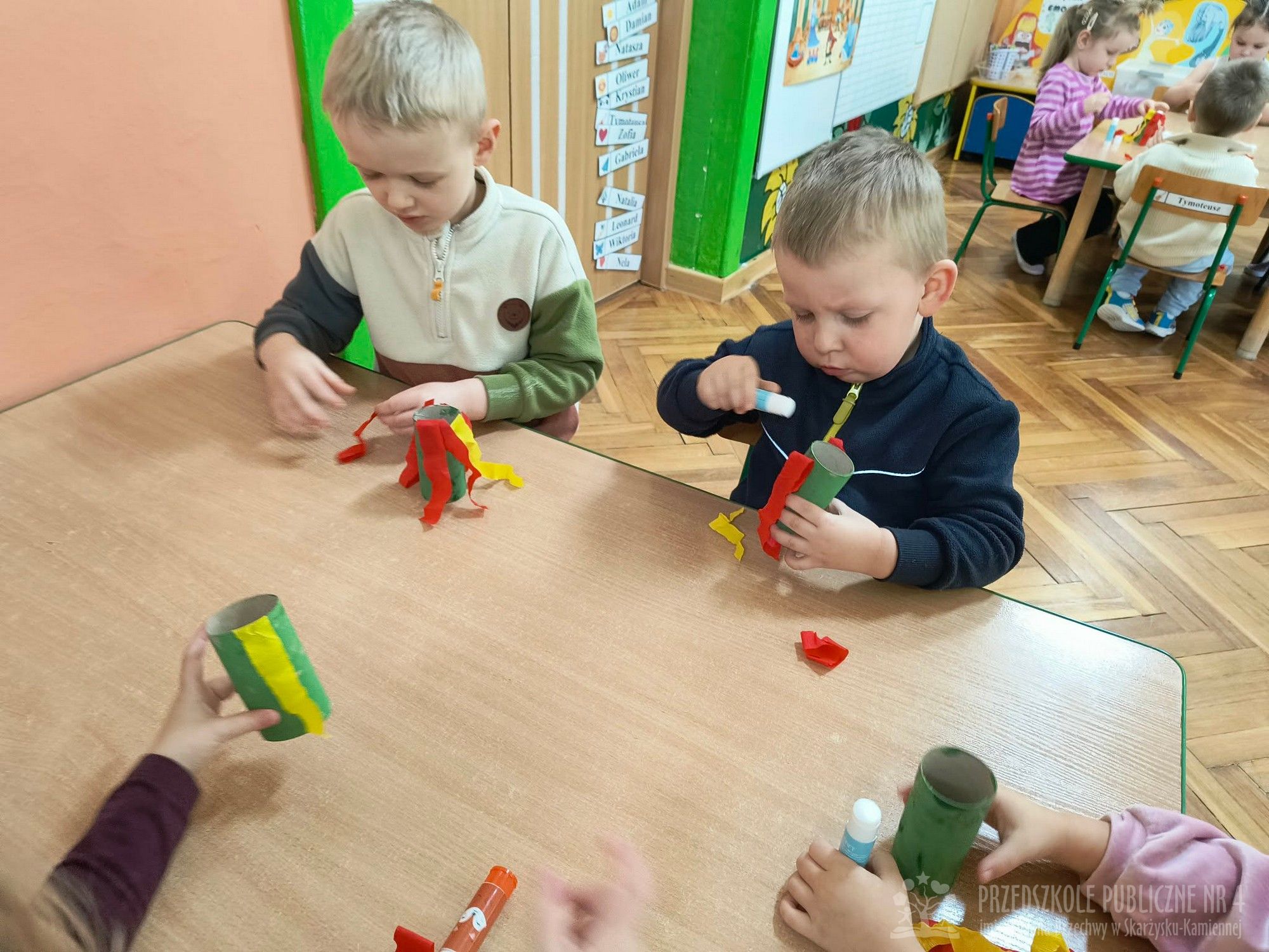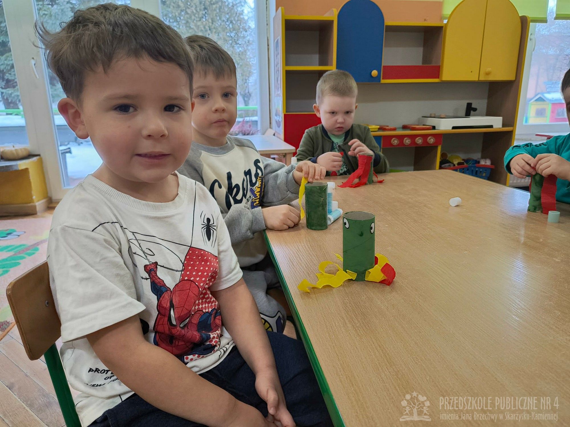 Smerfy bardzo lubią wszelkiego rodzaju prace plastyczne oraz techniczne, tym razem dzieci samodzielnie wykonały smoki. Efekt końcowy wywołał dużo uśmiechu na buziach dzieci.