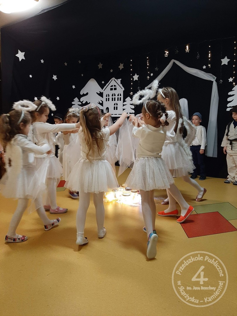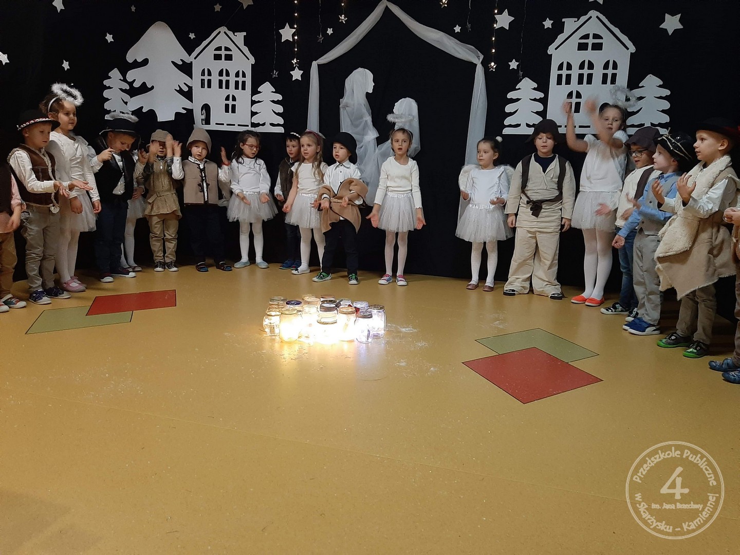 Dnia 22 grudnia 2020r. dzieci z grupy ,,Biedroneczki" zaprezentowały swój talent aktorski podczas przedstawienia Bożonarodzeniowego z okazji zbliżających się świąt. Mali aktorzy, we wspaniałych strojach prezentowali się doskonale, śpiewali pastorałki, kolędy oraz wykonywali układ taneczno– ruchowy. Całej uroczystości towarzyszyła piękna dekoracja oraz atmosfera.