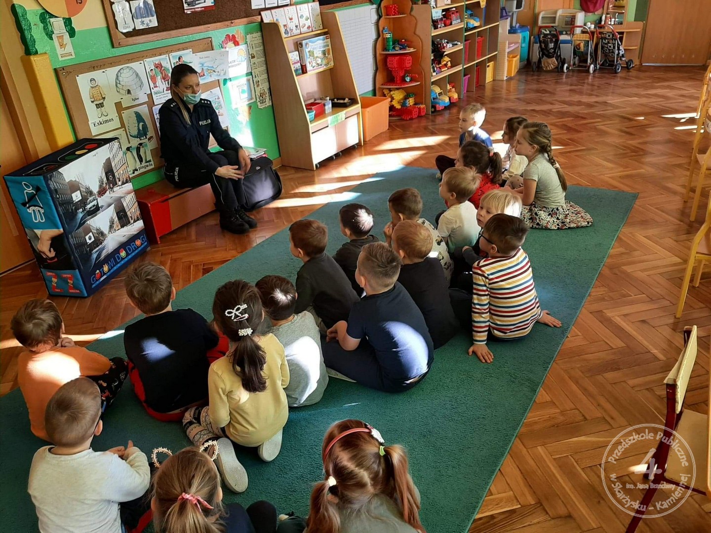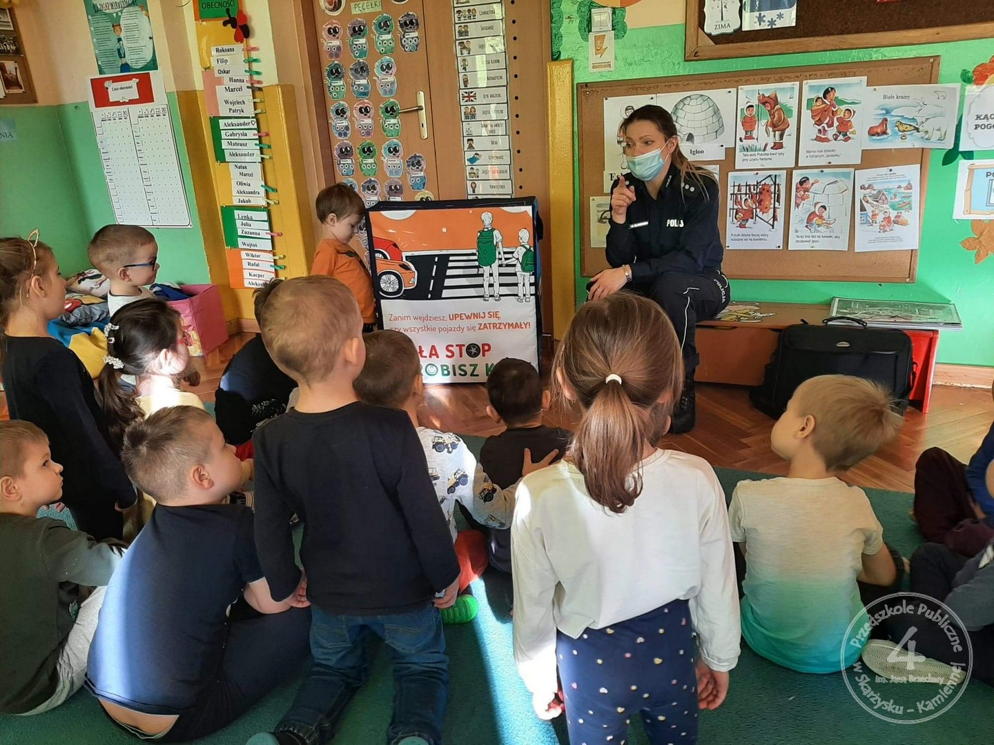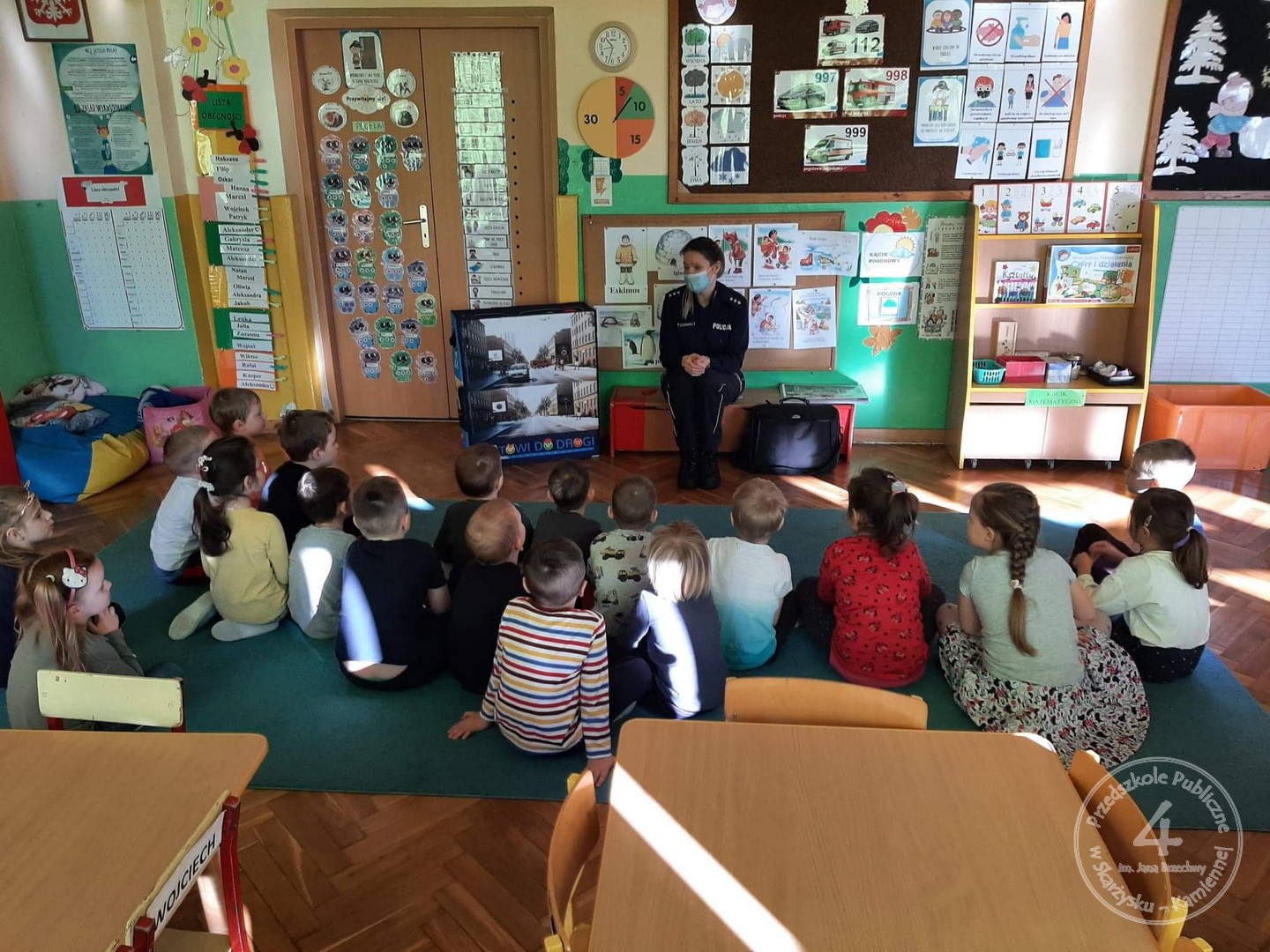 Tegoroczna zima obdarzyła nas białym puchem. Śnieg otulił wszystko dookoła. Najbardziej z tego cieszą się dzieci - bo najwyższy czas ulepić bałwana, rzucać śnieżkami, zjeżdżać na sankach z „górki na pazurki”. Korzystając z uroków zimy nie możemy zapomnieć o przestrzeganiu kilku zasad bezpieczeństwa. W tym celu zaprosiłyśmy do przedszkola panią policjant, która rozmawiała z przedszkolakami na temat bezpiecznych zabaw na śniegu i lodzie.