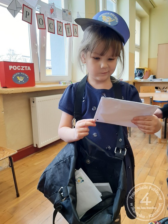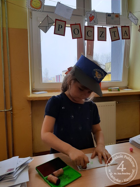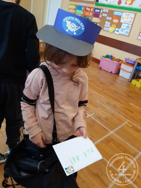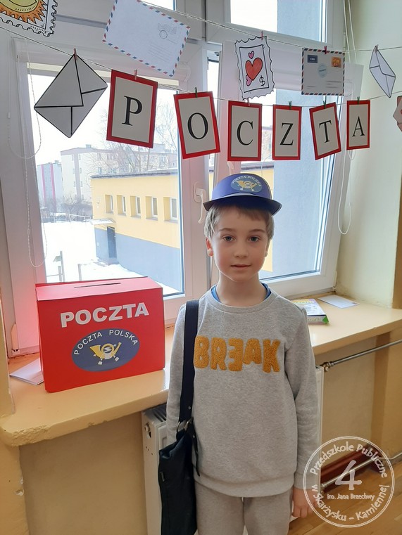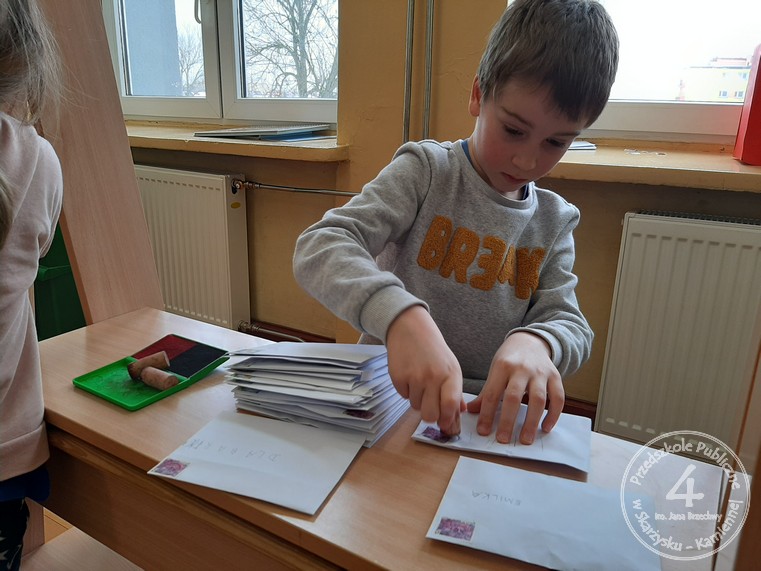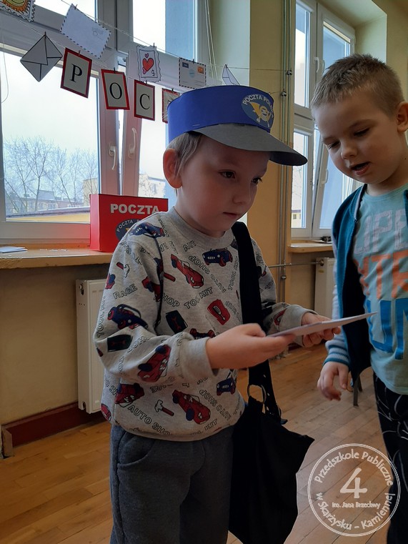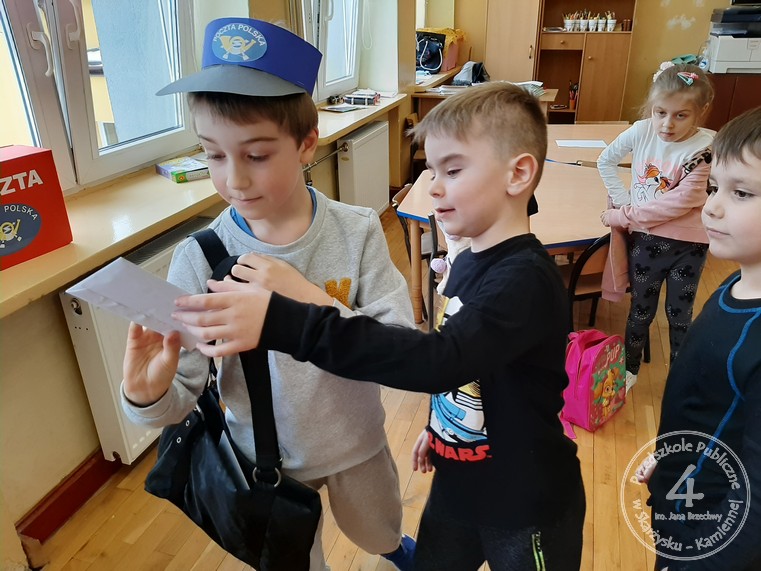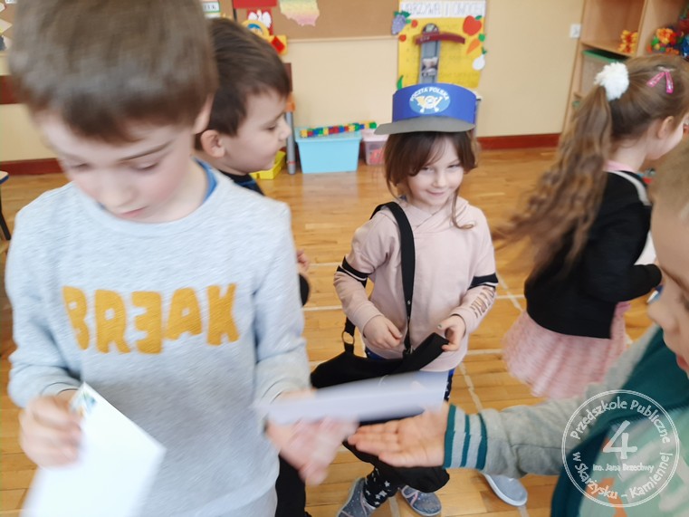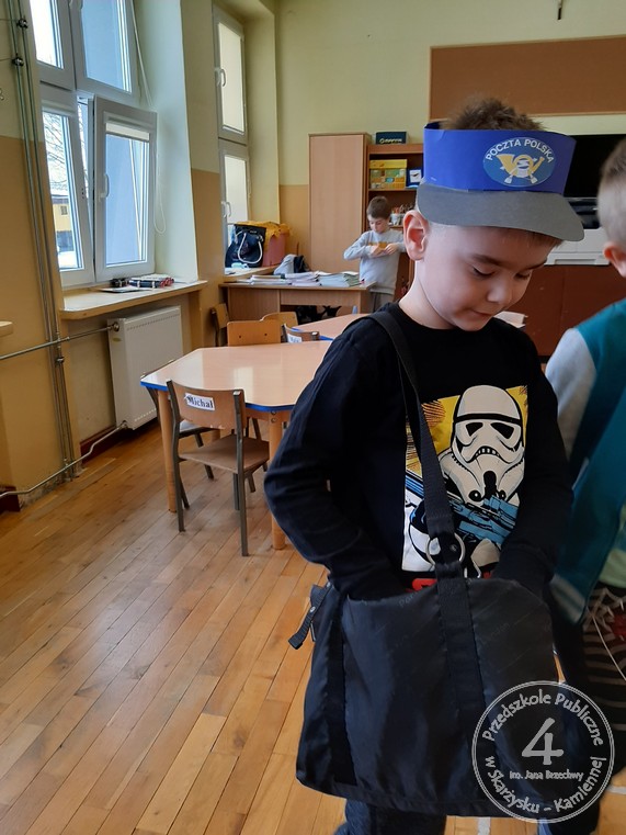 Na 16 lutego przypada Dzień Listonosza. Z tej okazji postanowiliśmy w naszej sali stworzyć pocztę. Pojawiła się nawet skrzynka na listy, koperty oraz znaczki pocztowe. Wszystkie dzieci zabrały się do tworzenia listów, które następnie pakowały do kopert, przyklejały znaczki, adresowały i wreszcie wrzucały do skrzynki. Dzieci w toku zabawy poznały drogę listu od nadawcy do adresata. Same mogły wcielić się w rolę urzędnika pocztowego (stemplowały listy) oraz stać się listonoszami. Każde dziecko w czapce listonosza z torbą pełną listów roznosiło je do adresatów.