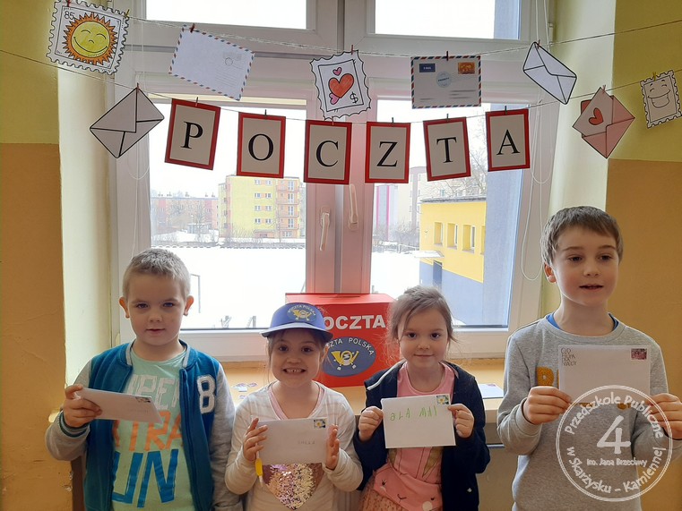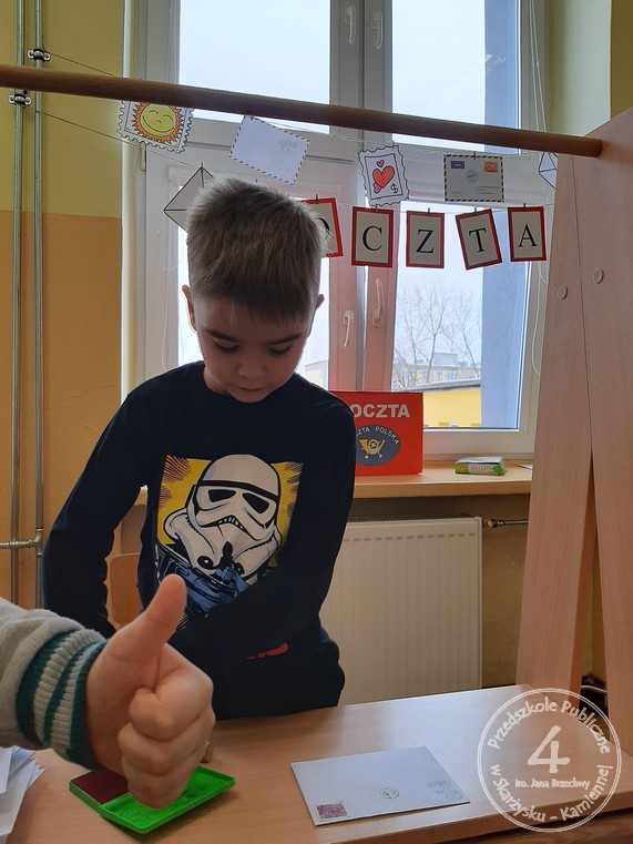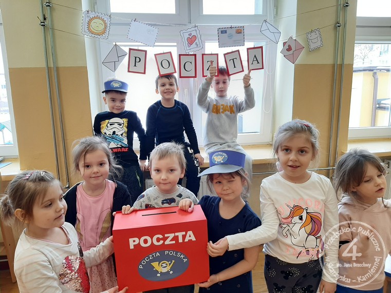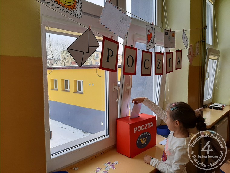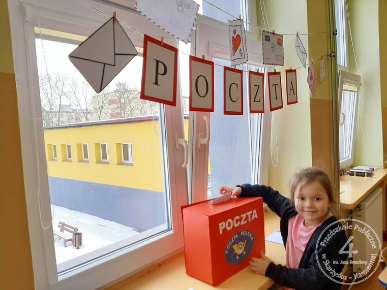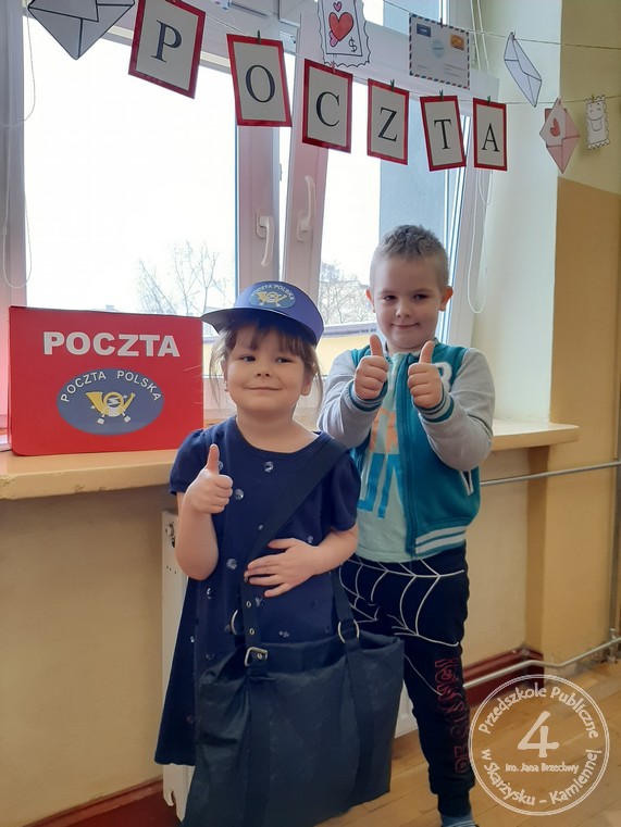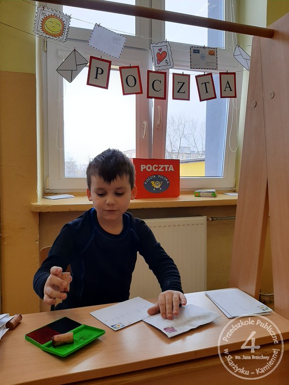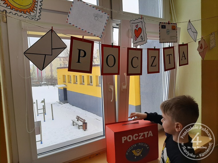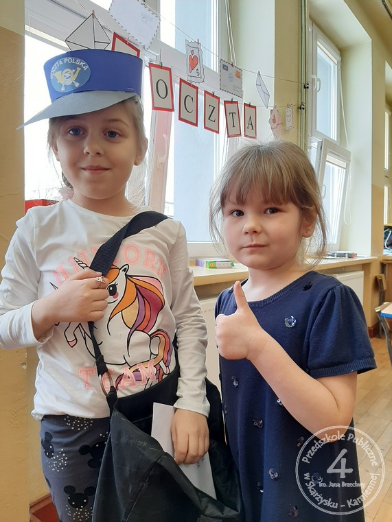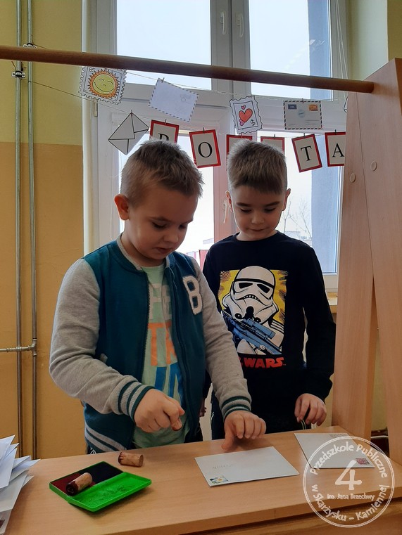 Na 16 lutego przypada Dzień Listonosza. Z tej okazji postanowiliśmy w naszej sali stworzyć pocztę. Pojawiła się nawet skrzynka na listy, koperty oraz znaczki pocztowe. Wszystkie dzieci zabrały się do tworzenia listów, które następnie pakowały do kopert, przyklejały znaczki, adresowały i wreszcie wrzucały do skrzynki. Dzieci w toku zabawy poznały drogę listu od nadawcy do adresata. Same mogły wcielić się w rolę urzędnika pocztowego (stemplowały listy) oraz stać się listonoszami. Każde dziecko w czapce listonosza z torbą pełną listów roznosiło je do adresatów.