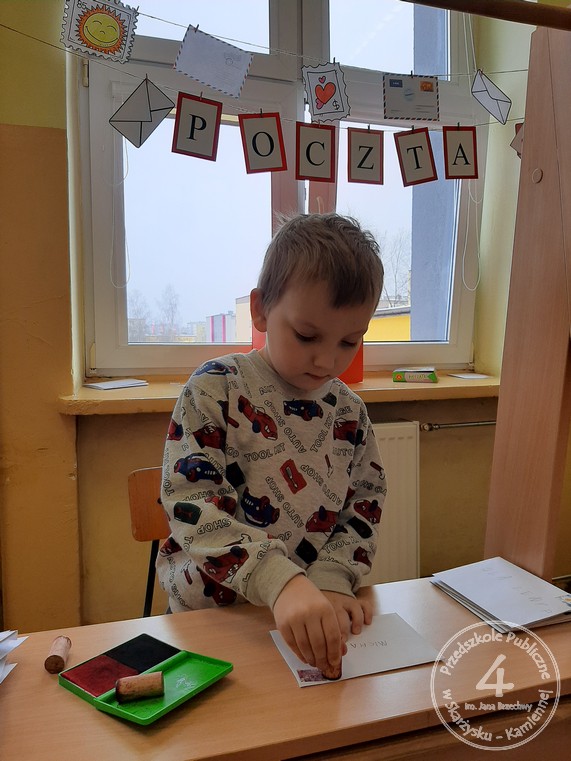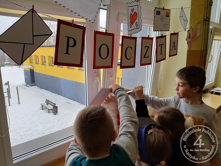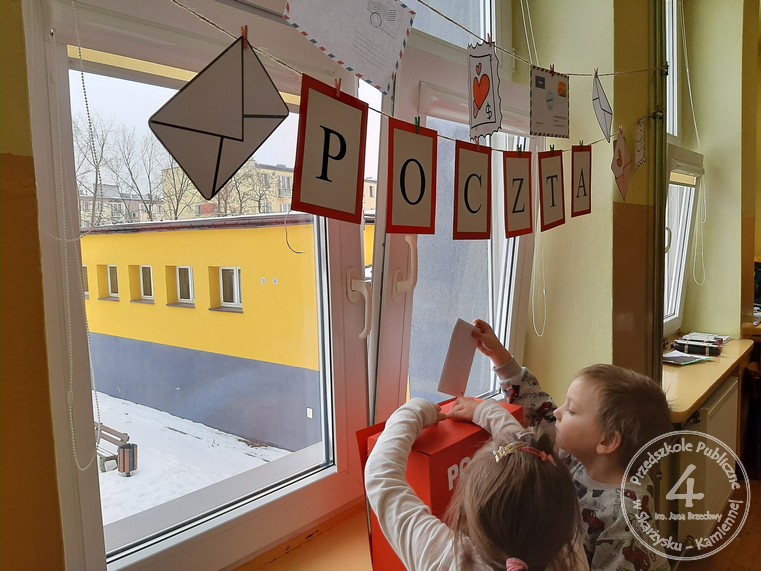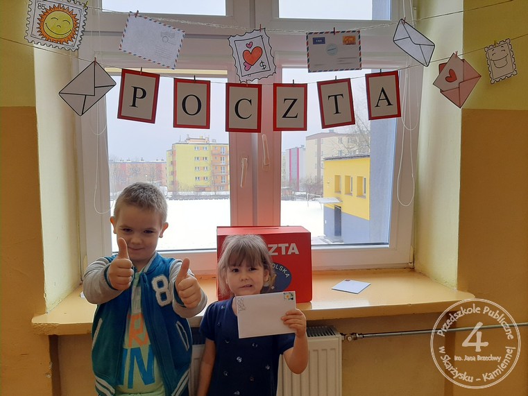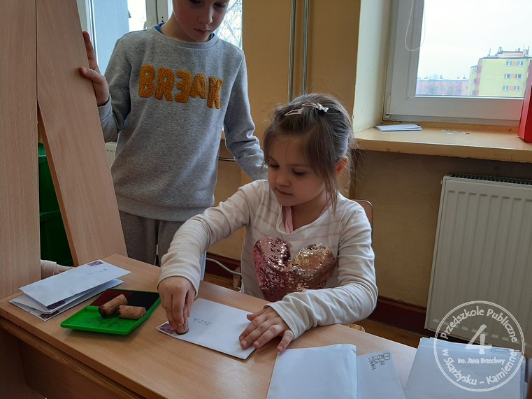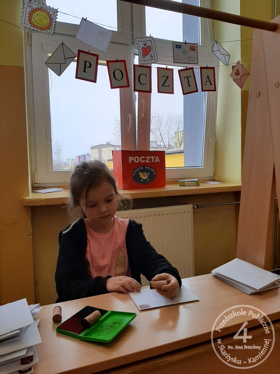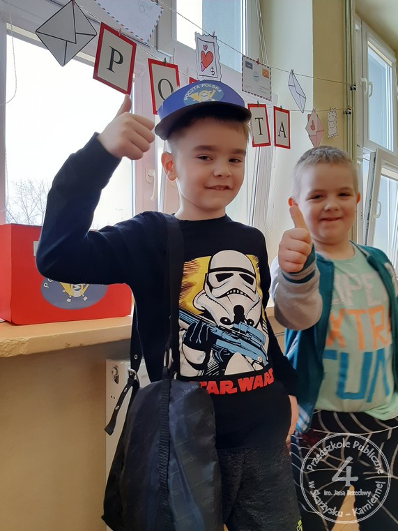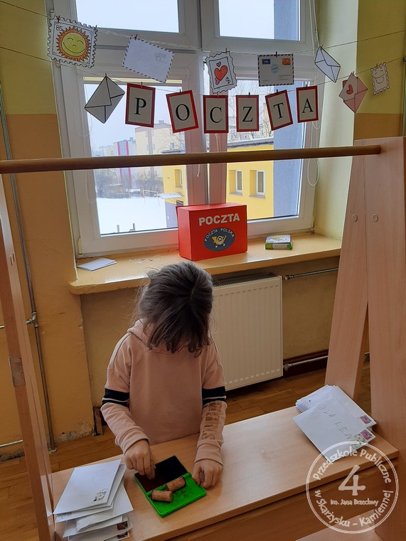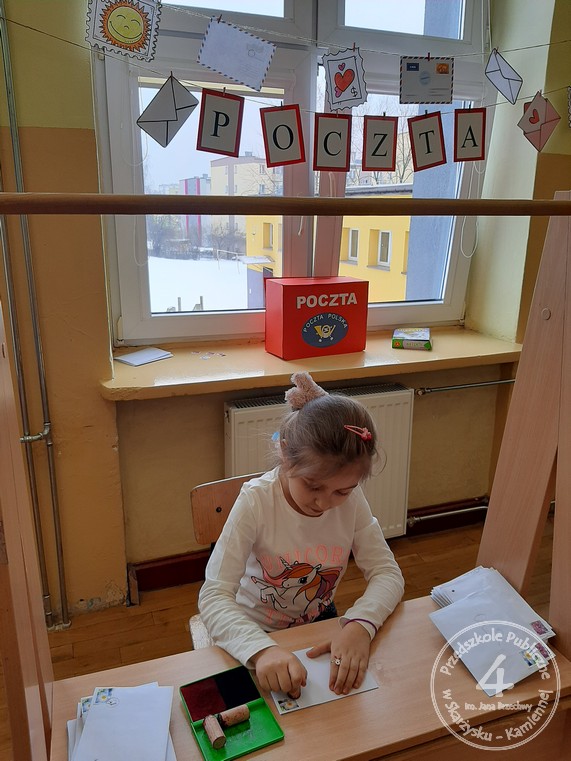 Na 16 lutego przypada Dzień Listonosza. Z tej okazji postanowiliśmy w naszej sali stworzyć pocztę. Pojawiła się nawet skrzynka na listy, koperty oraz znaczki pocztowe. Wszystkie dzieci zabrały się do tworzenia listów, które następnie pakowały do kopert, przyklejały znaczki, adresowały i wreszcie wrzucały do skrzynki. Dzieci w toku zabawy poznały drogę listu od nadawcy do adresata. Same mogły wcielić się w rolę urzędnika pocztowego (stemplowały listy) oraz stać się listonoszami. Każde dziecko w czapce listonosza z torbą pełną listów roznosiło je do adresatów.