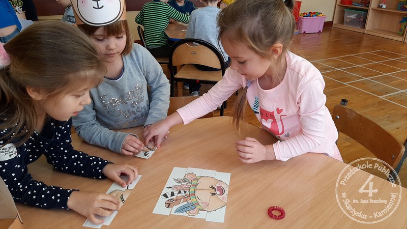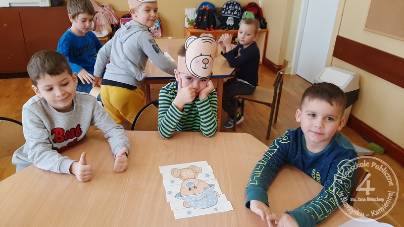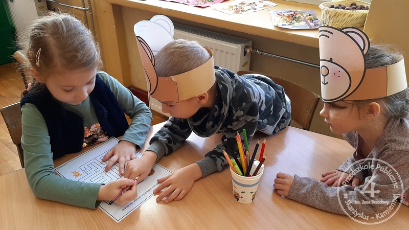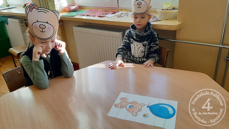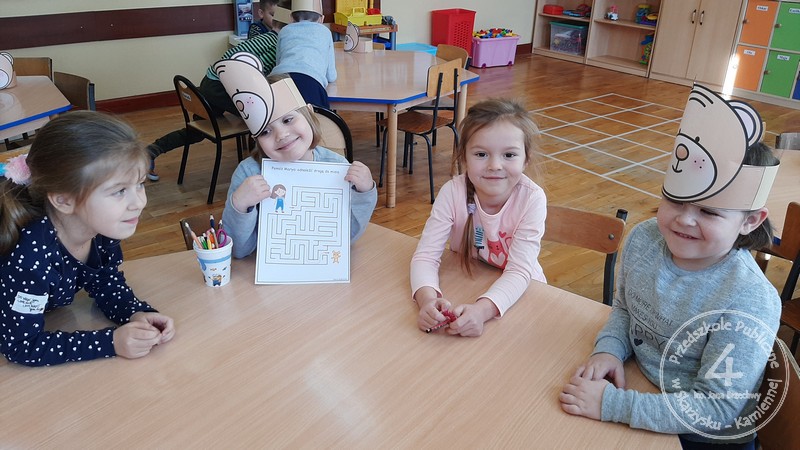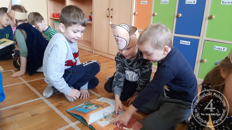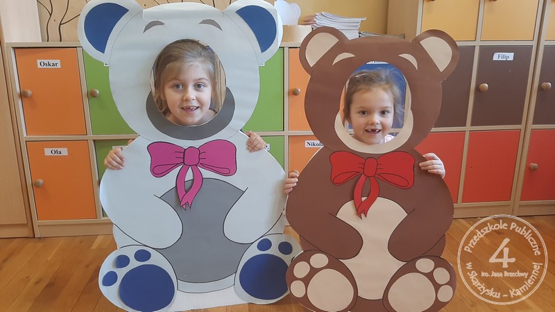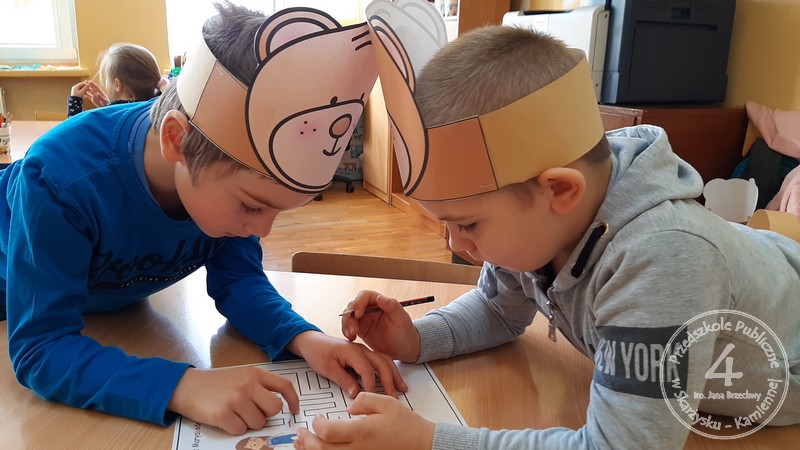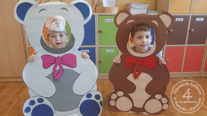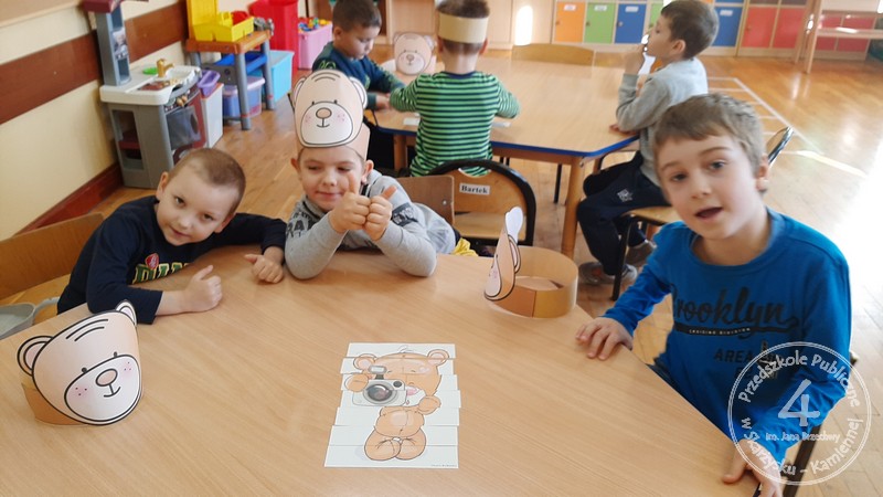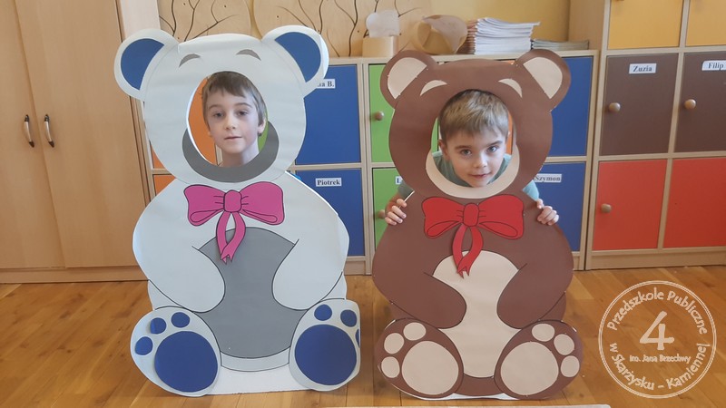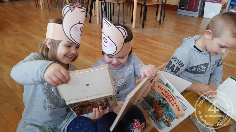 25 listopada swoje święto mają pluszowe misie. Nasza grupa również świętowała tego dnia. Dzieci poznały historię pluszowego misia oraz okoliczności, w wyniku których na świecie pojawił się pierwszy pluszowy miś. Pracując w grupach przedszkolaki miały do wykonania różne zadania: układanie misia z pociętych pasków, pokonywanie labiryntu prowadzącego do misia, kolorowanie misia. W tym dniu zaprosiliśmy do naszej grupy panią Paulinę z biblioteki, która przyniosła ze sobą mnóstwo książek o misiach. Z wielkim zaciekawieniem przeglądaliśmy je, a jedną z nich pani Paulina nam przeczytała. Wysłuchaliśmy historii o Kubusiu Puchatku i jego przyjaciołach.