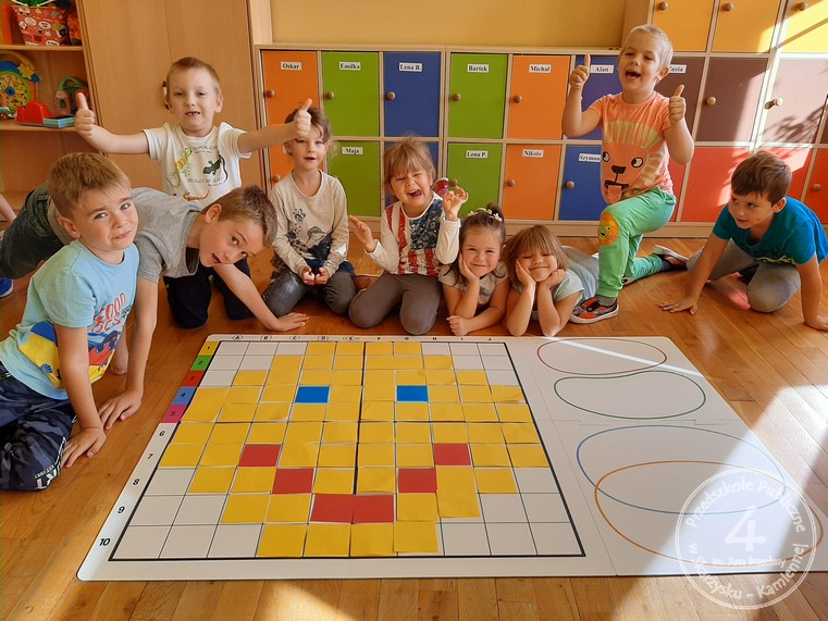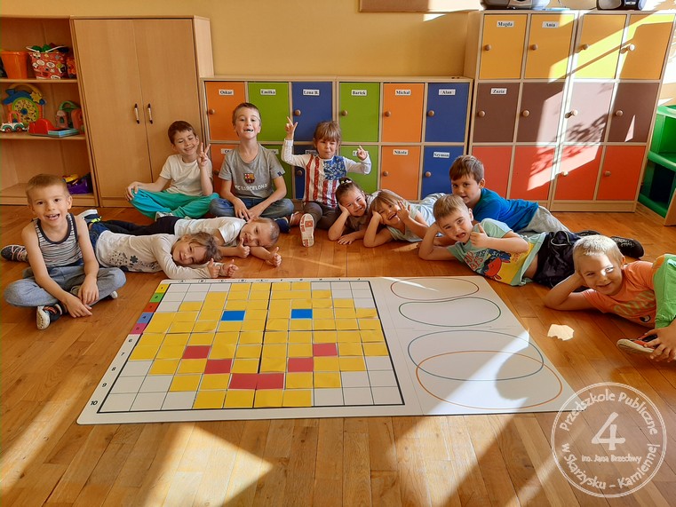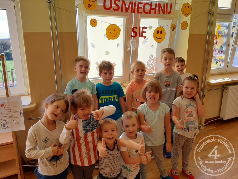 2 października w naszej grupie obchodziliśmy Śwaitowy Dzień Uśmiechu. Dzieci poznały historię obchodów Dnia Uśmiechu oraz symbolu „uśmiechu” – „smiley face”. Następnie rozpoczęliśmy zabawę z matą do kodowania, na której ułożyliśmy wspólnie "smiley face". Każdy przedszkolak wykonał swoją własną uśmiechniętą buźkę z wykorzystaniem farb plakatowych.