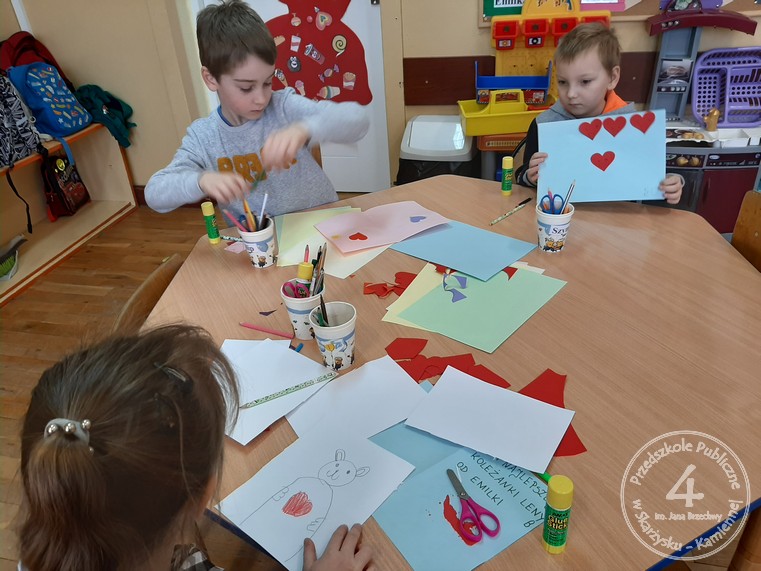 15 lutego obchodziliśmy w naszej grupie Walentynki. Wszystkie dzieci samodzielnie wykonały karki walentynkowe dla koleżanek i kolegów z grupy, a następnie wrzucały je do naszej walentynkowej skrzynki. Na zakończenie dnia nastąpiło wręczenie kartek. Dzieci otrzymały także lizaki w kształcie serduszka.