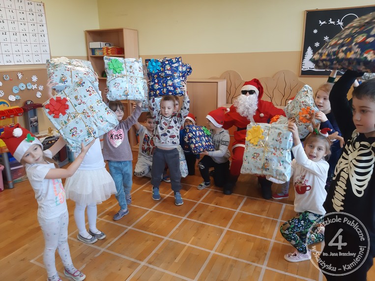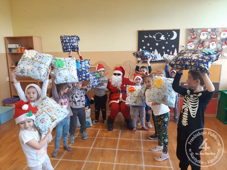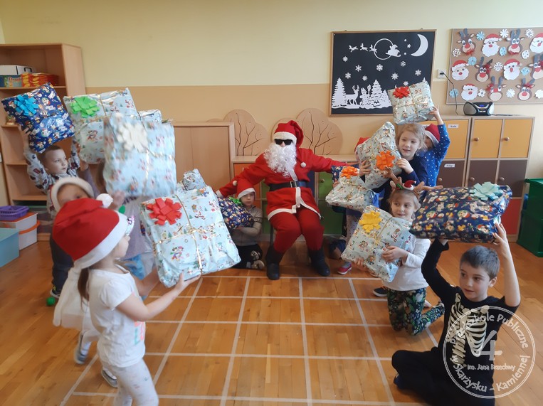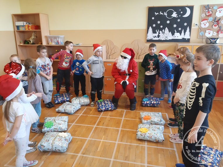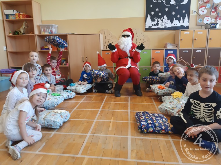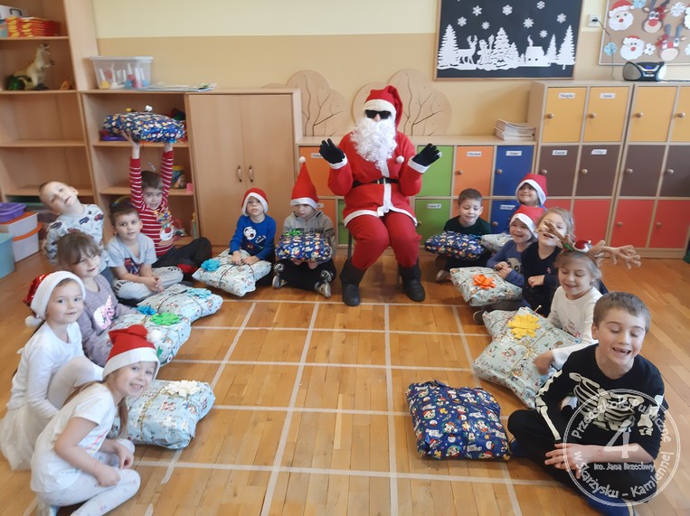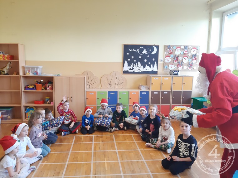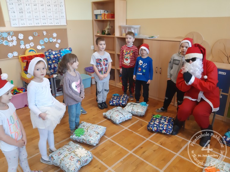 Na początku grudnia do naszej grupy zawitał Św. Mikołaj. Wszystkim dzieciom wręczył prezenty. Przedszkolaki w podziękowaniu zaśpiewały piosenkę dla Mikołaja.