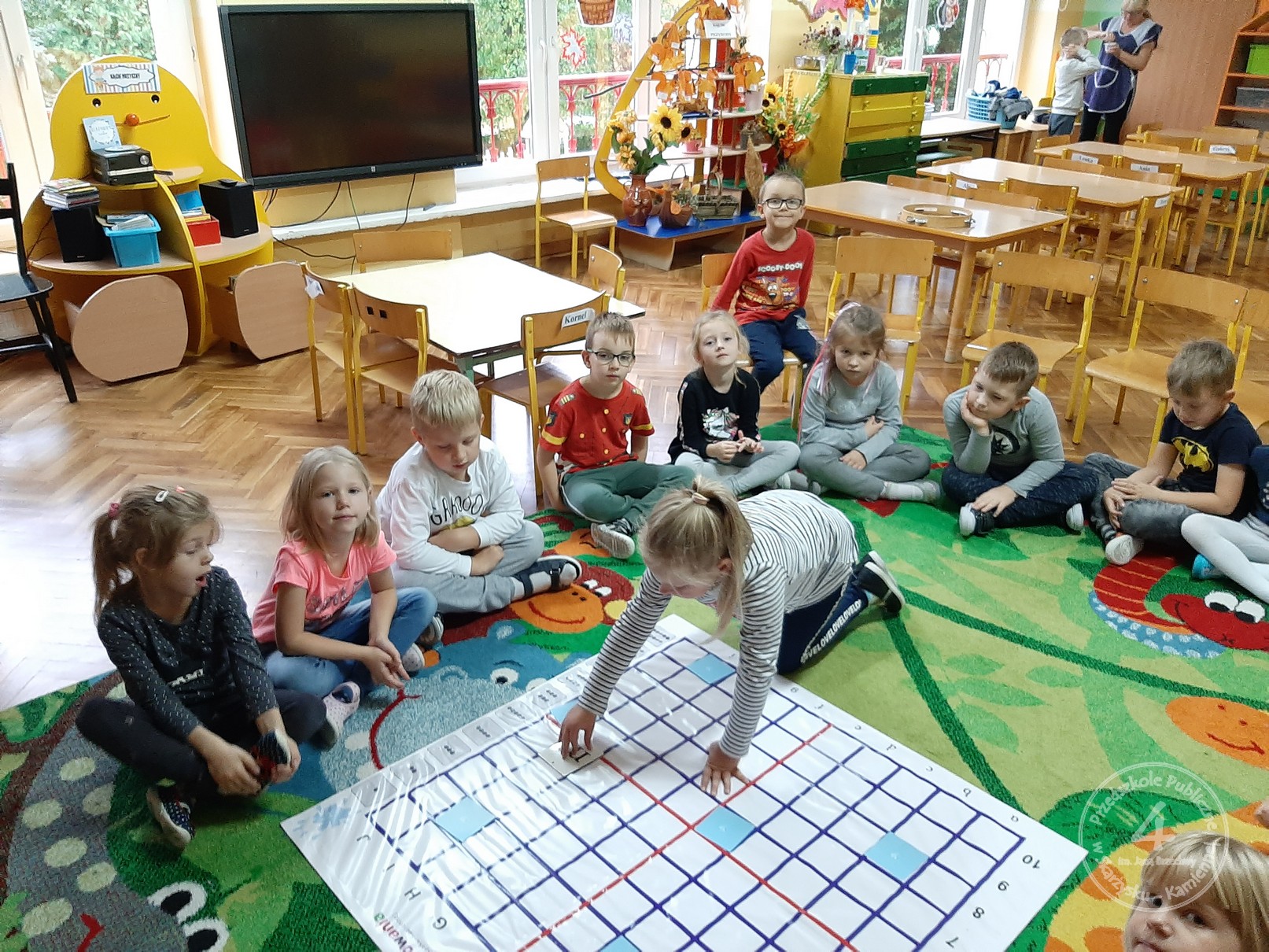 Code Week, czyli Europejski Tydzień Kodowania. W tym roku odbył się on w dniach 10-25 października. CodeWeek to społeczna inicjatywa, w ramach której europejskie państwa konkurująw liczbie zorganizowanych wydarzeń związanych z programowaniem. Dzieci brały udział w zabawach z elementami kodowania z wykorzystaniem nowych technologii. maty do kodowania oraz zadań matematycznych z kubeczkami. Bawiły się wyśmienicie.