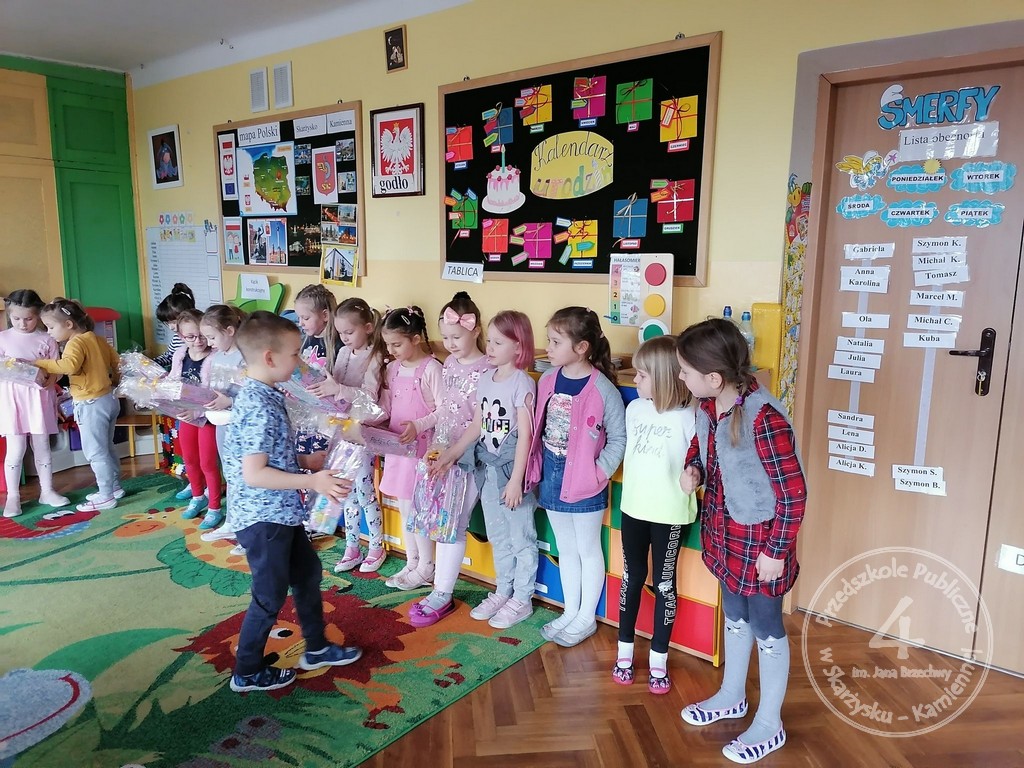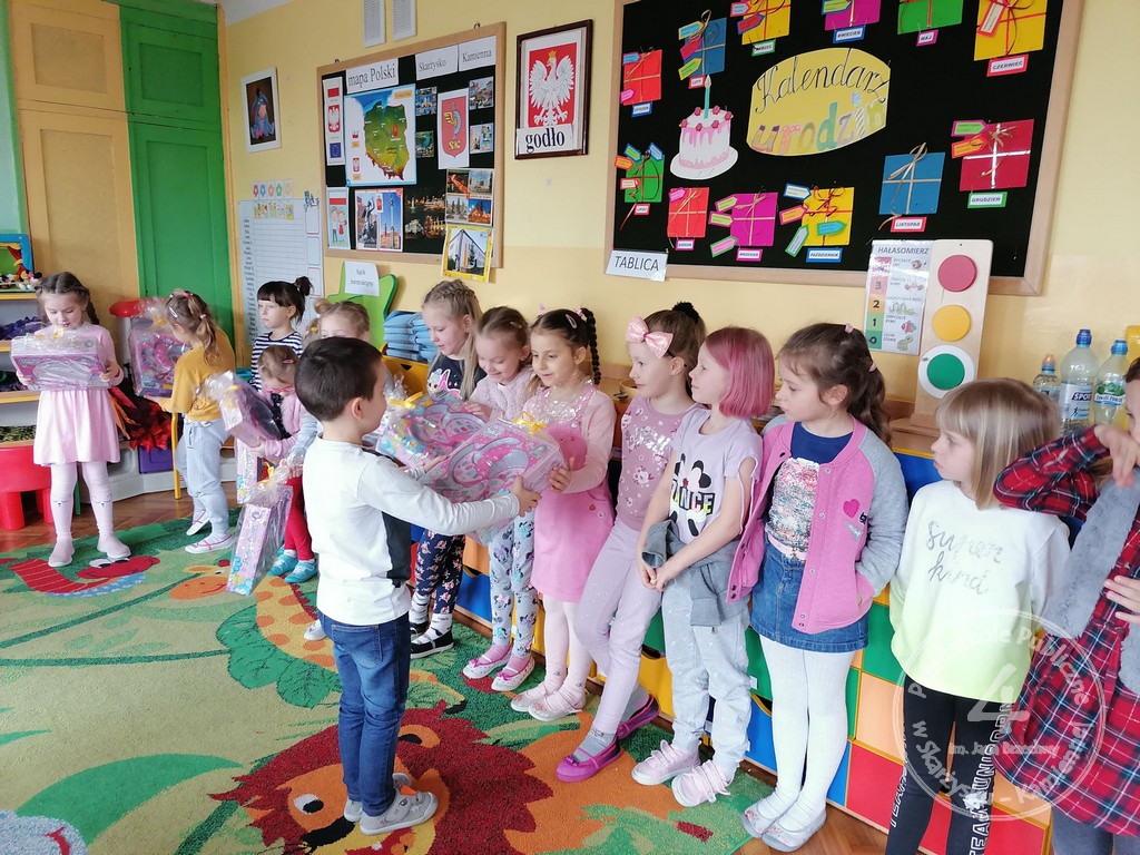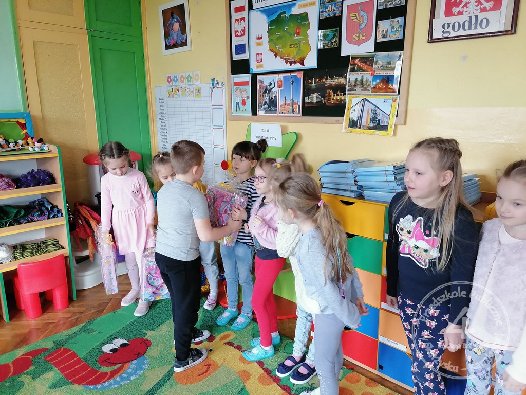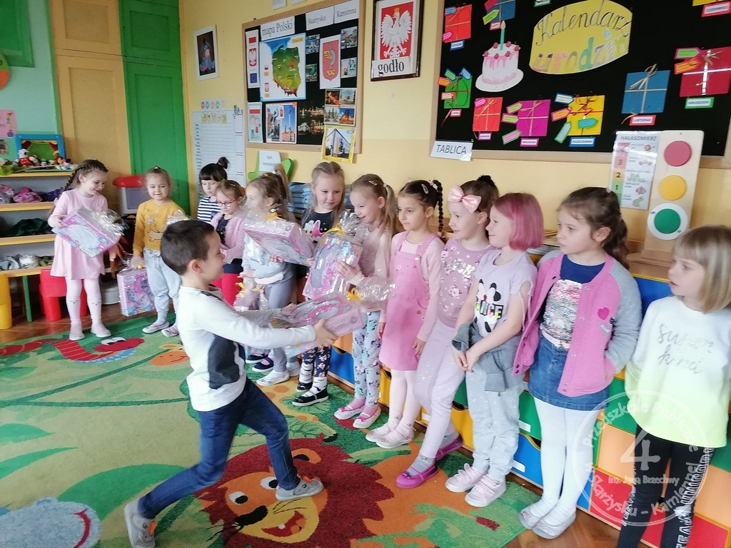 W tym dniu chłopcy z grupy Smerfy stanęli na wysokości zadania i przez cały dzień poprzez swoje zachowanie i dobre uczynki sprawiali swoim koleżankom radość. Nie zabrakło niespodzianek i upominków dla naszych wspaniałych małych kobiet. Każda dziewczynka dostała prezencik. Oprócz życzeń były śpiewy i tańce. Było dużo śmiechu i radości.