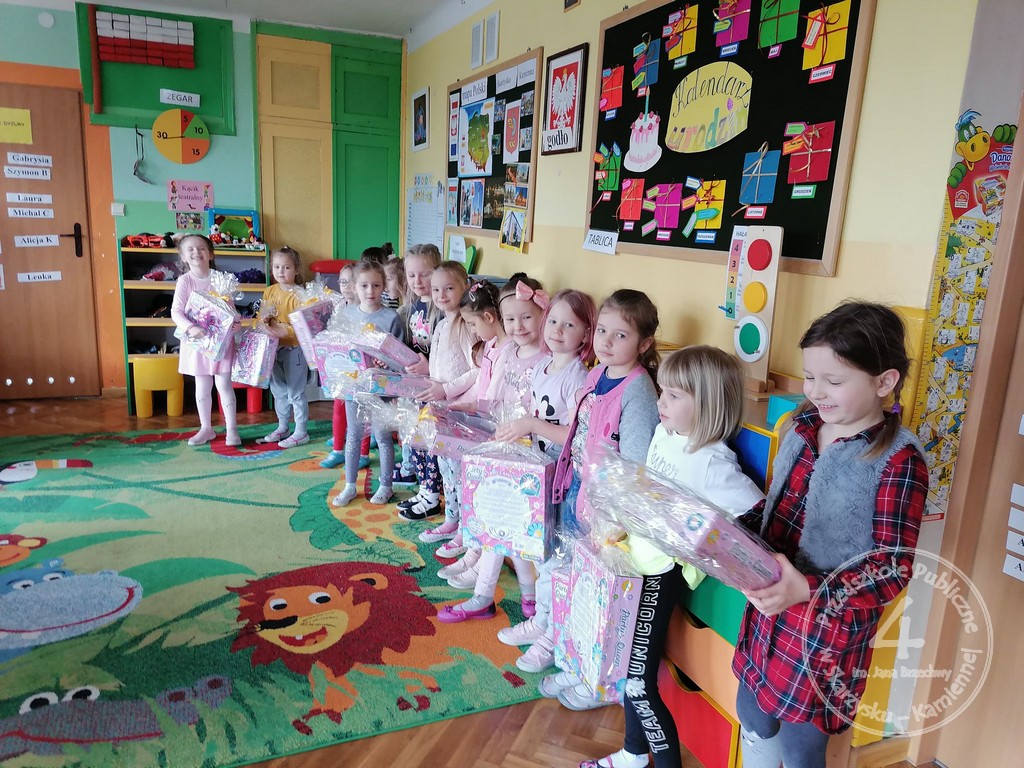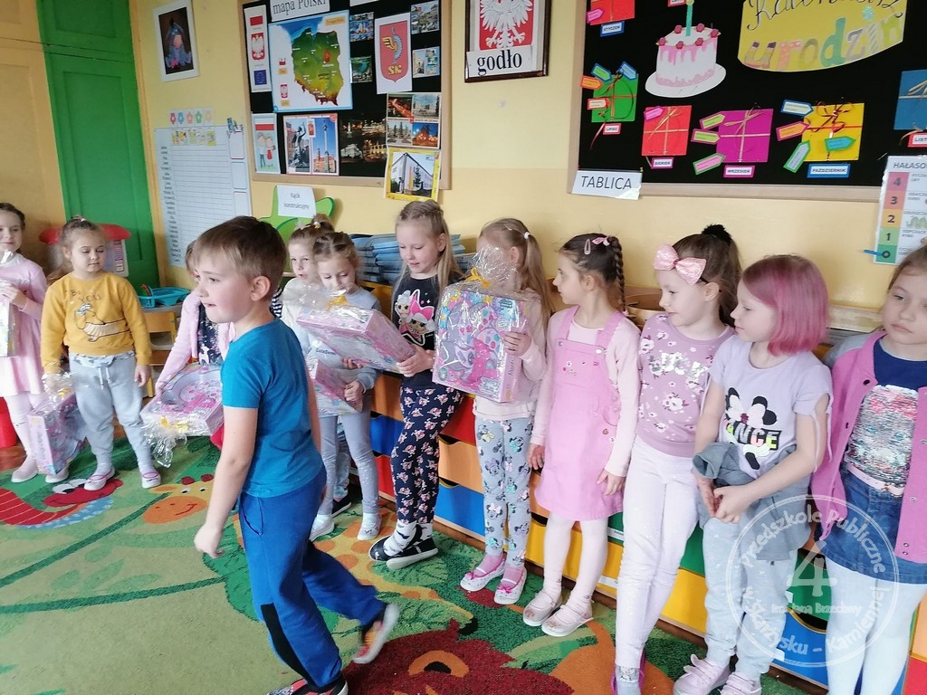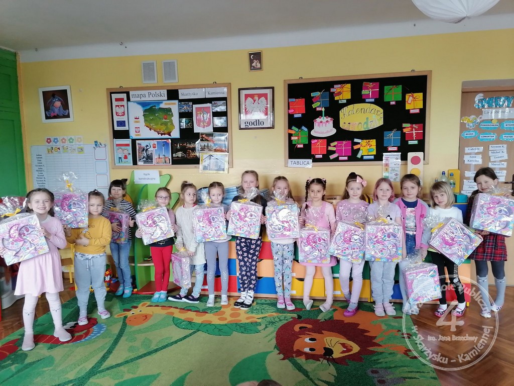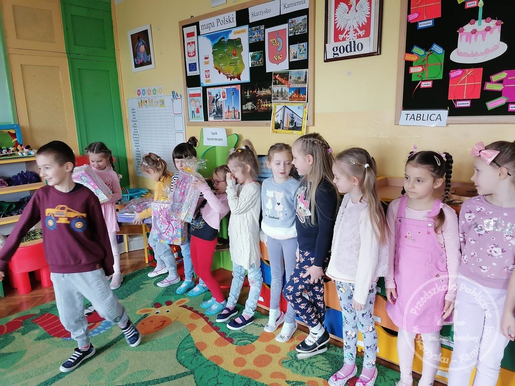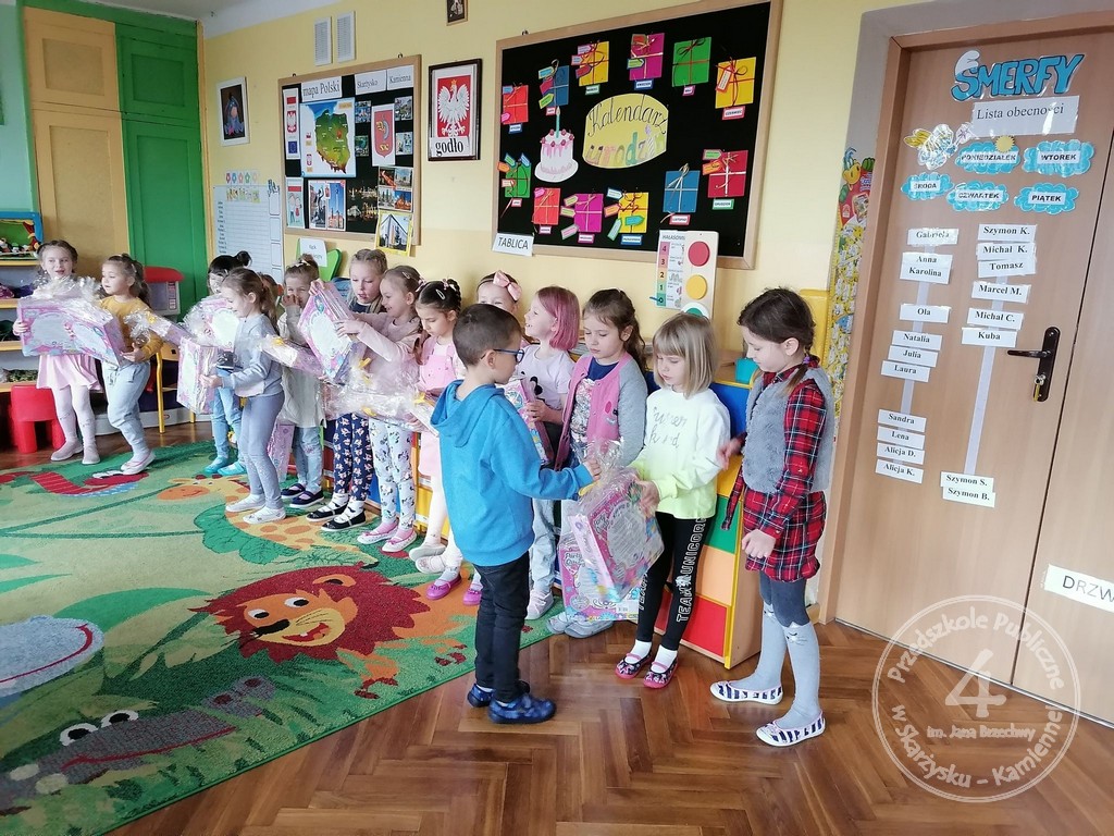 W tym dniu chłopcy z grupy Smerfy stanęli na wysokości zadania i przez cały dzień poprzez swoje zachowanie i dobre uczynki sprawiali swoim koleżankom radość. Nie zabrakło niespodzianek i upominków dla naszych wspaniałych małych kobiet. Każda dziewczynka dostała prezencik. Oprócz życzeń były śpiewy i tańce. Było dużo śmiechu i radości.