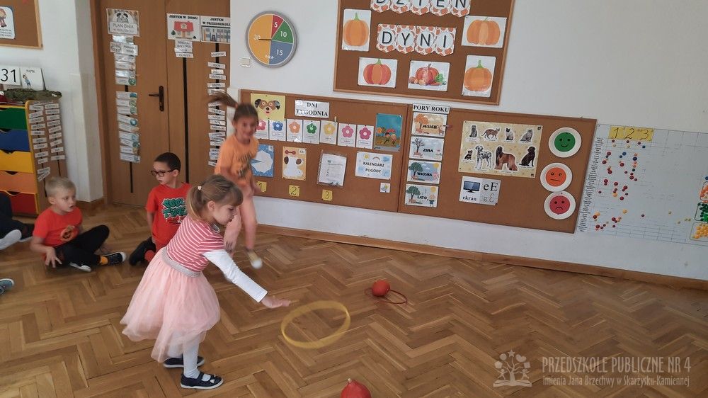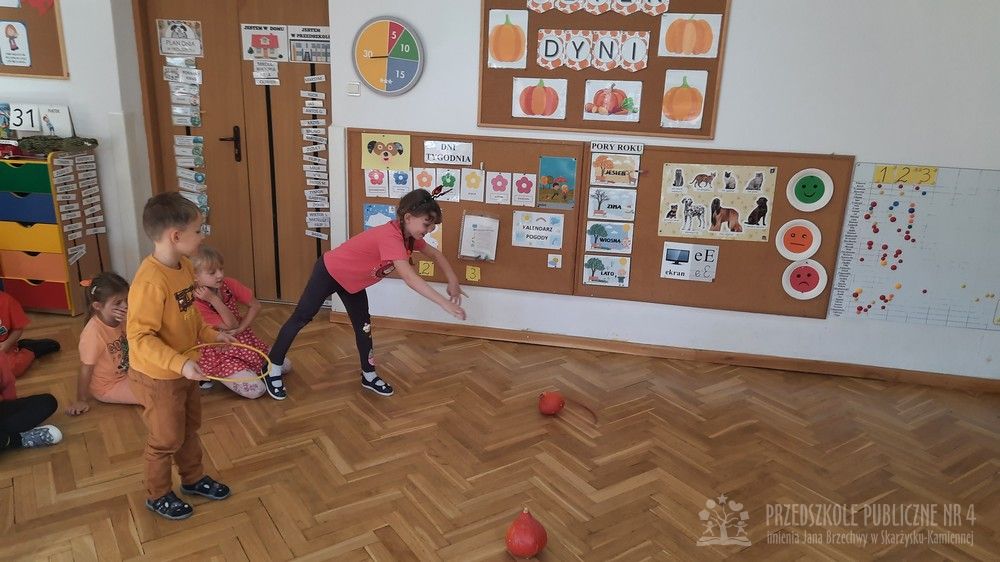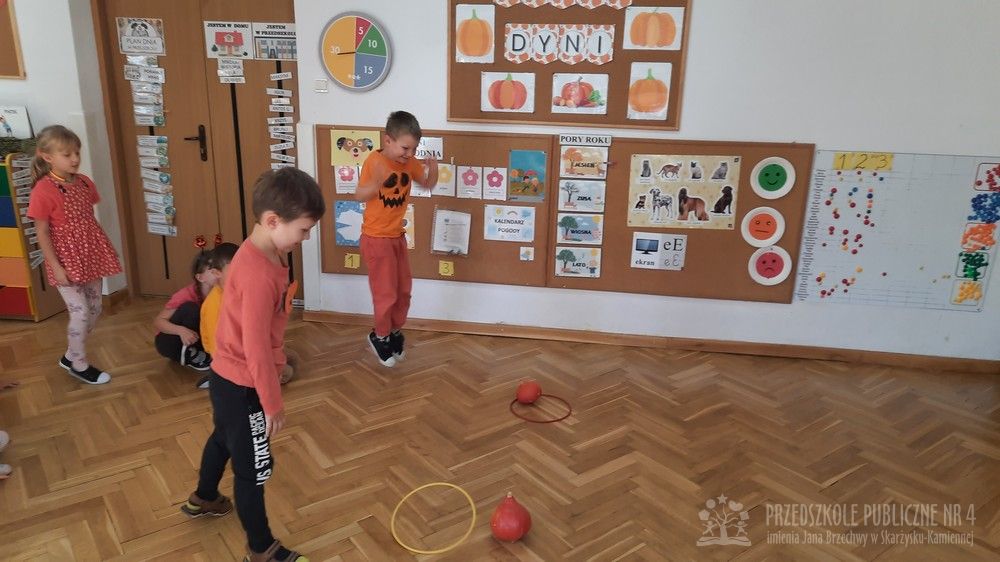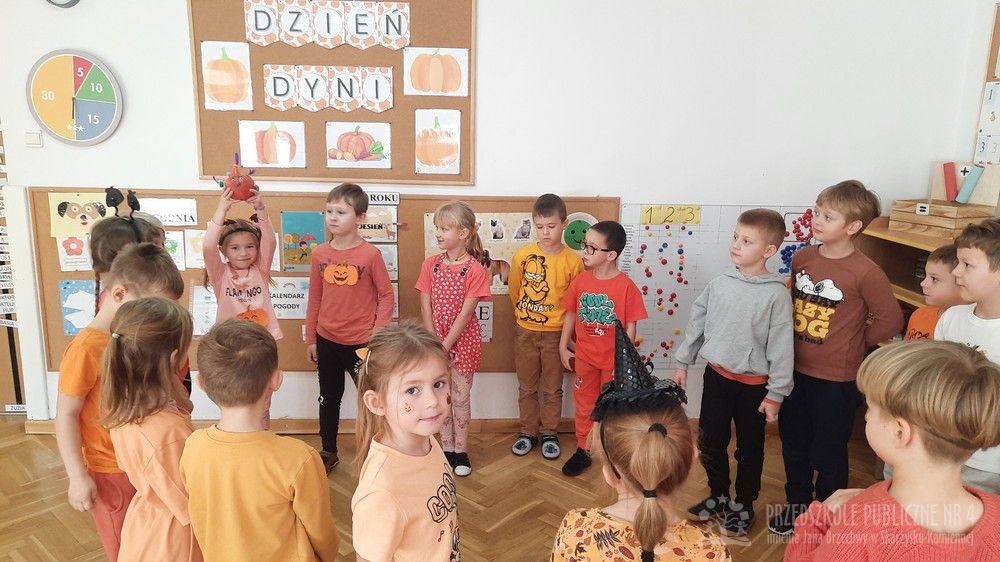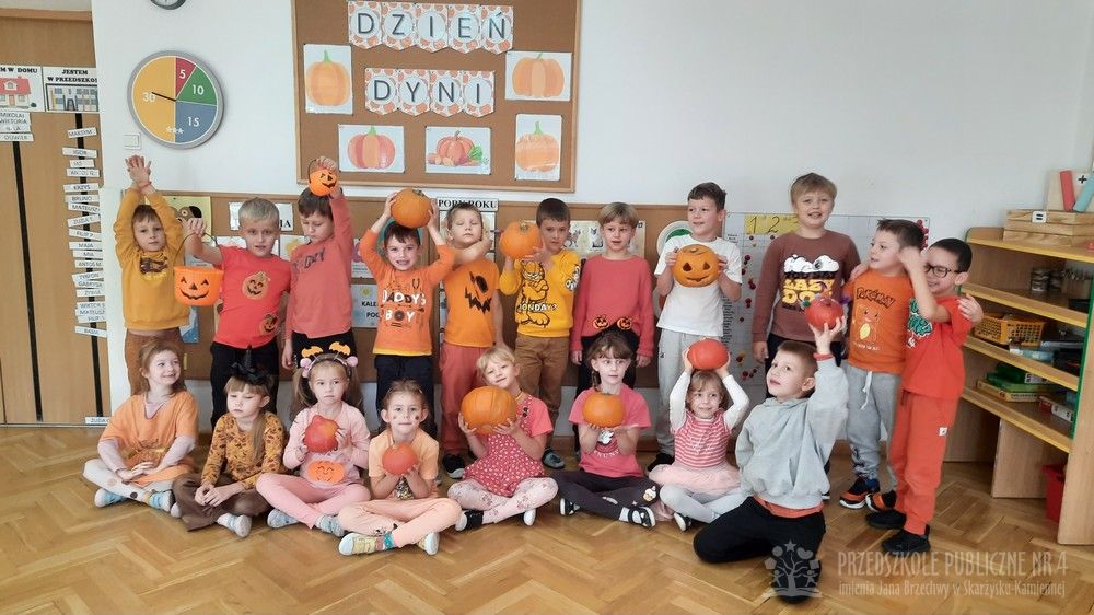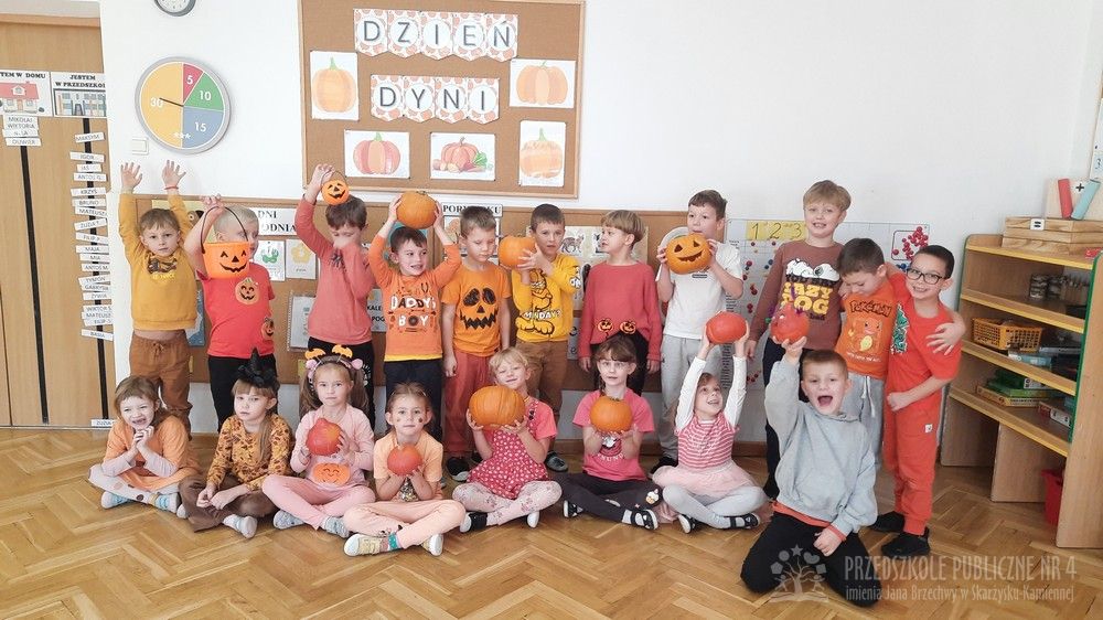 31 października obchodziliśmy w naszym przedszkolu Dzień Dyni. Przedszkolaki poznały wielką różnorodność dyń i wzbogaciły wiedzę na temat tego warzywa. Dzieci miały możliwość wzięcia udziału w licznych zabawach i konkursach, w których motywem przewodnim była oczywiście dynia. Wykonały rozmaite prace plastyczne. Zabawy i radości z okazji tego święta nie brakowało.