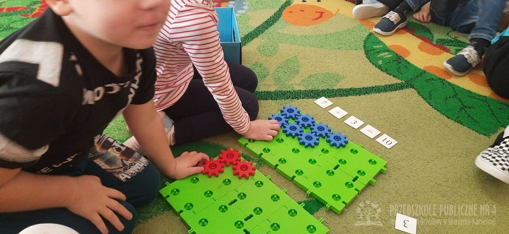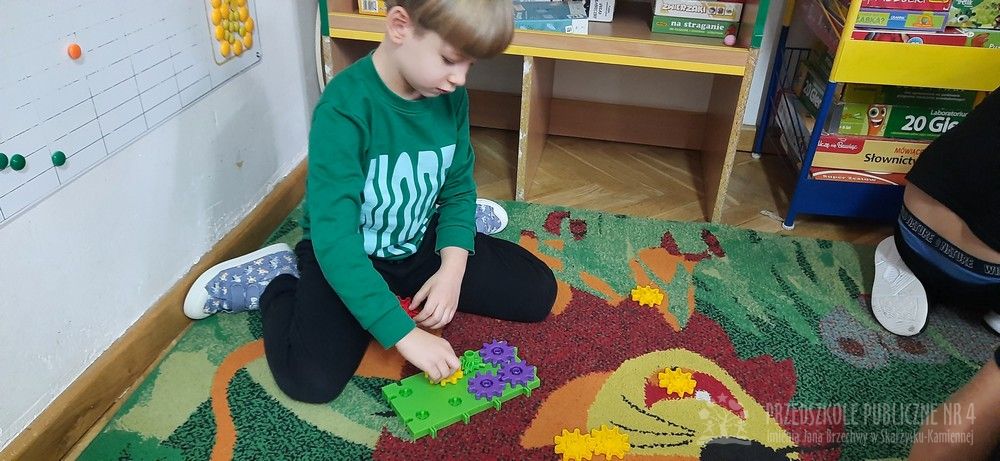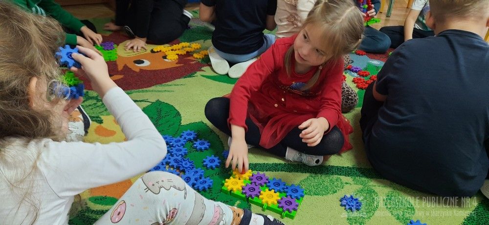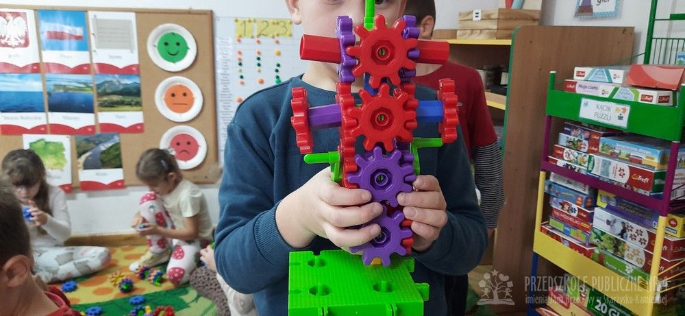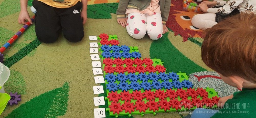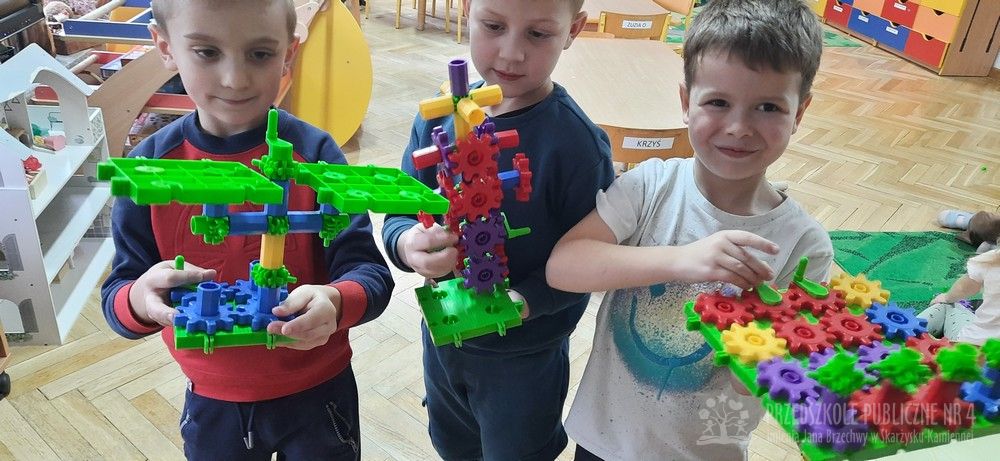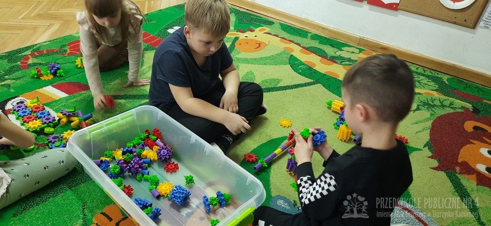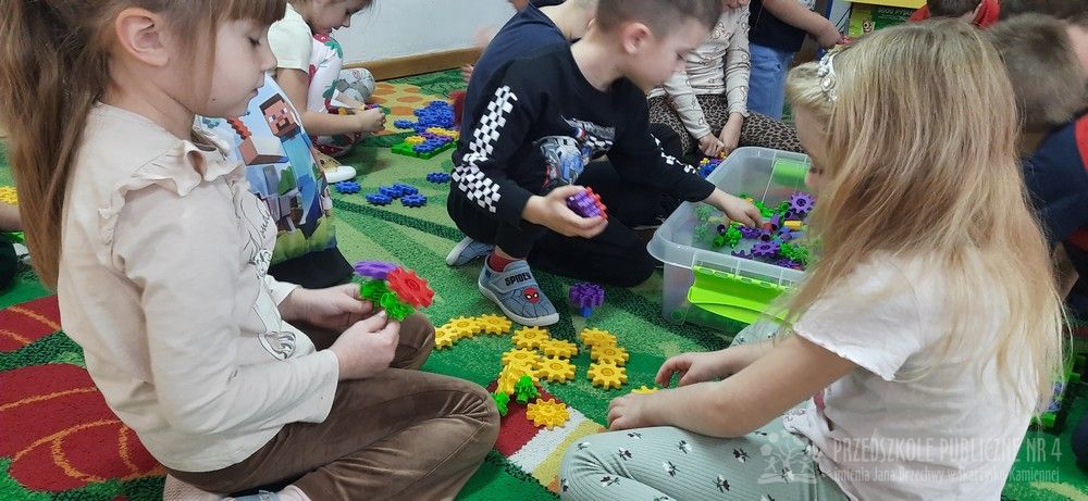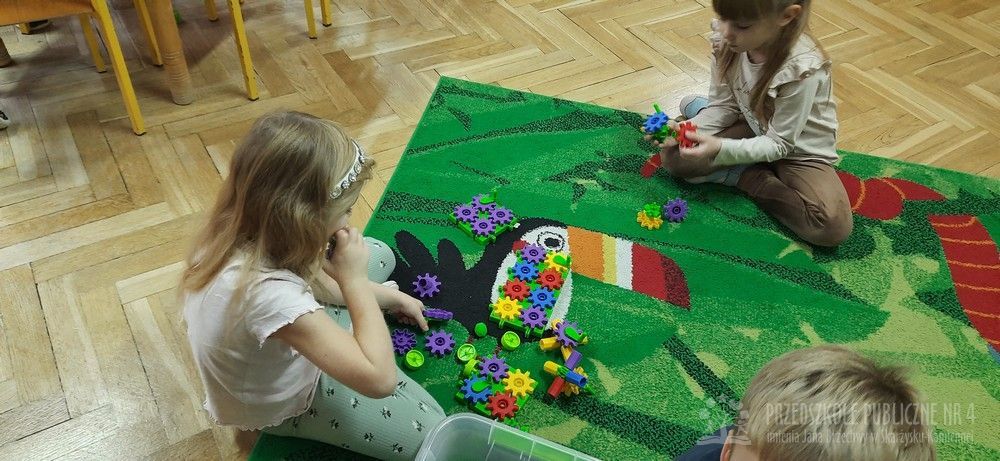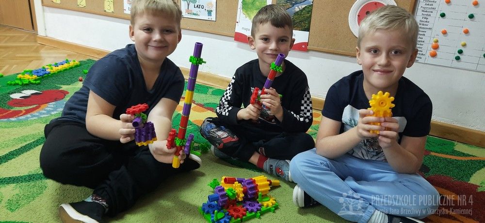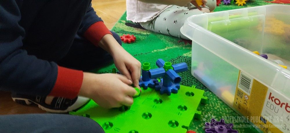 Grupa Biedronek bierze udział w ogólnopolskim programie "Kolorowa Matematyka z Korbo", który pomaga dzieciom zrozumieć matematykę przez działanie na konkretach. Dzieci segregowały klocki według koloru i kształtu figur geometrycznych: koło, kwadrat. Przeliczały i wykonywały zadania matematyczne wykorzystując klocki. Przedszkolaki z zainteresowaniem konstruowały różne budowle przestrzenne.