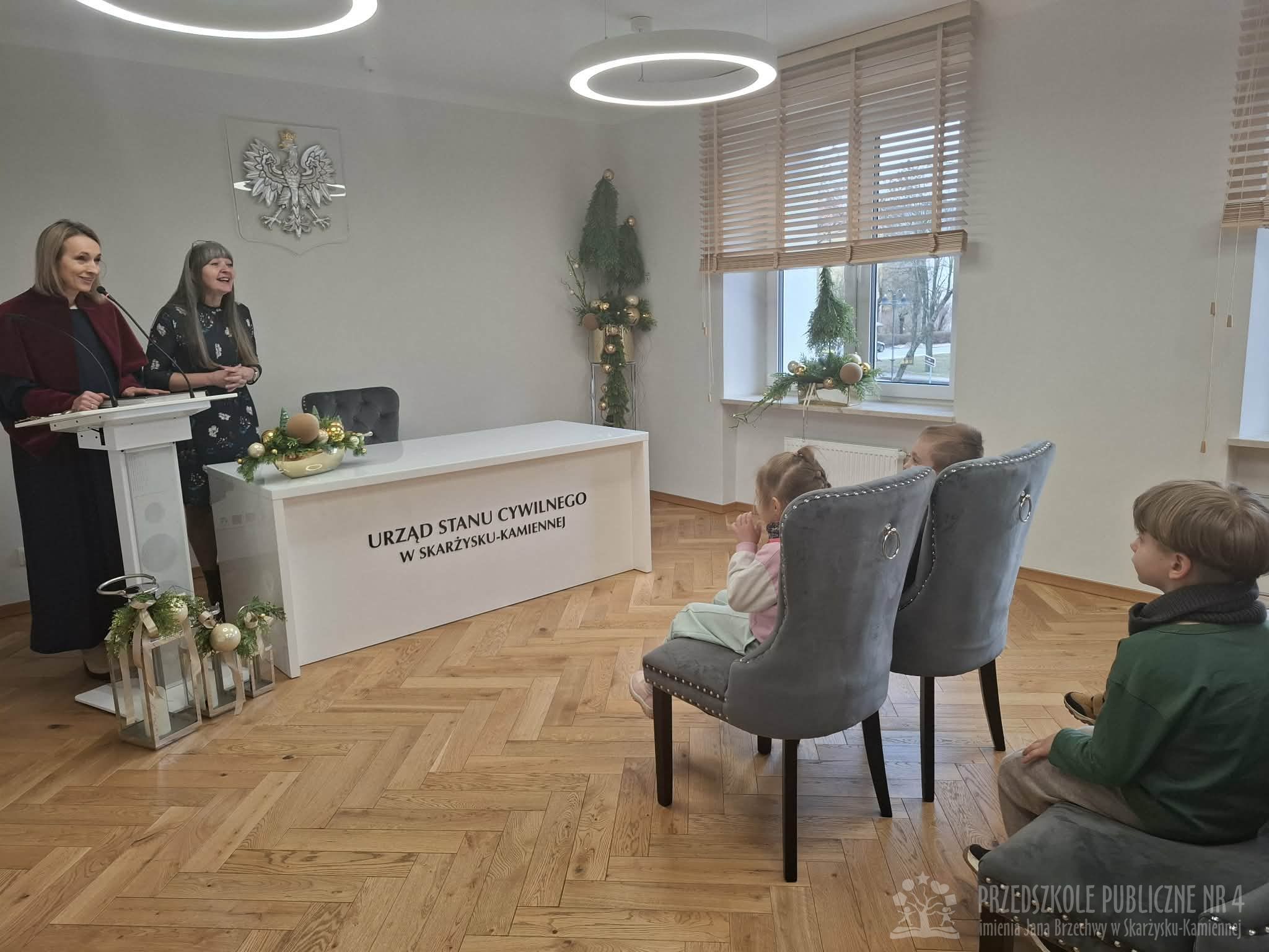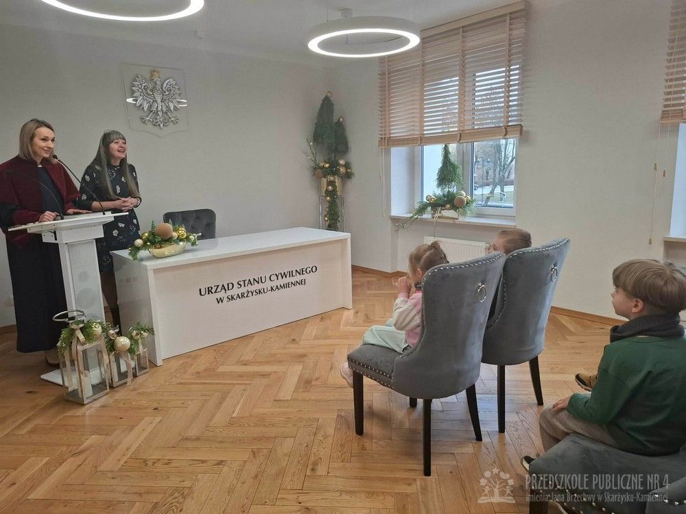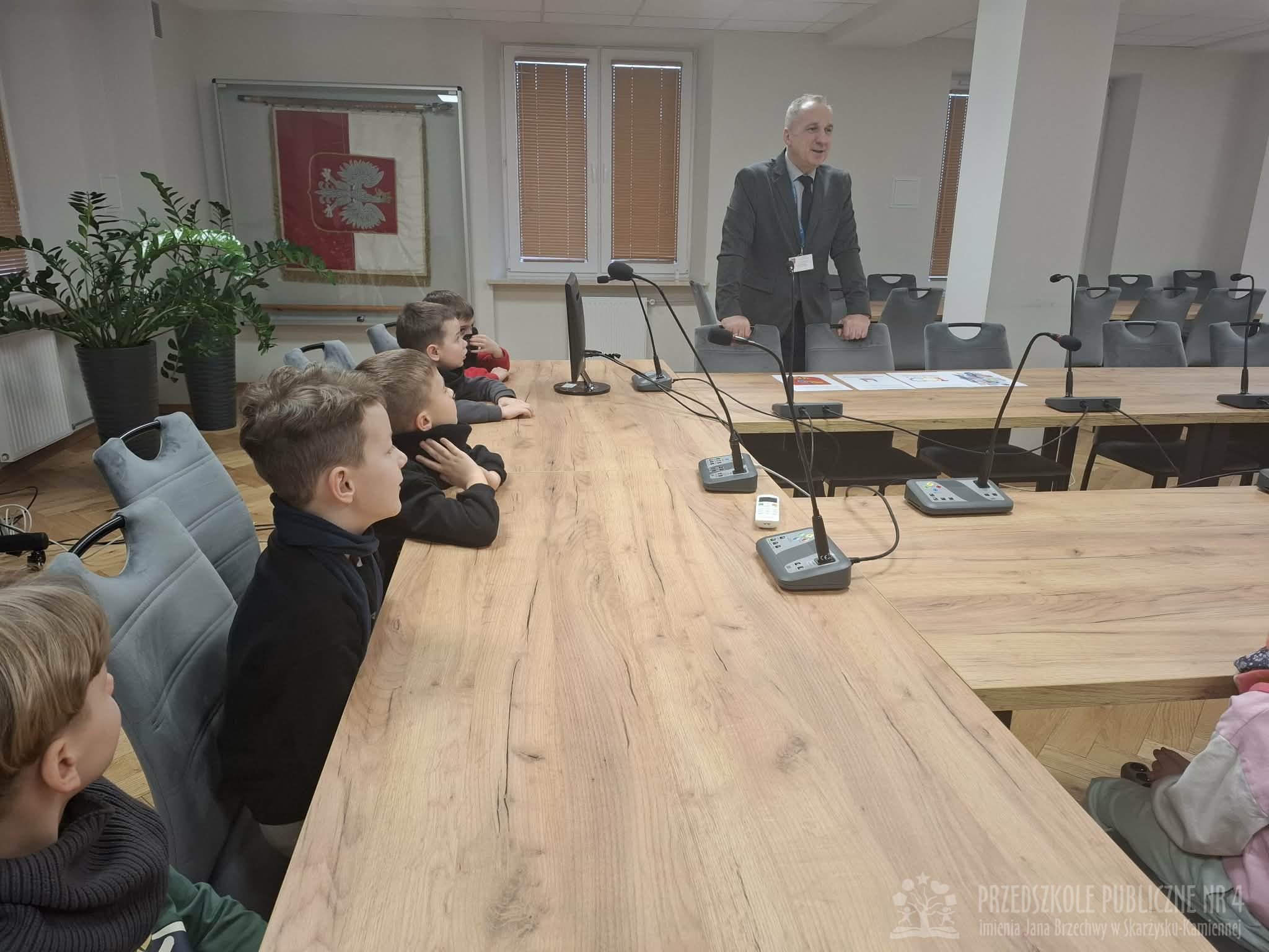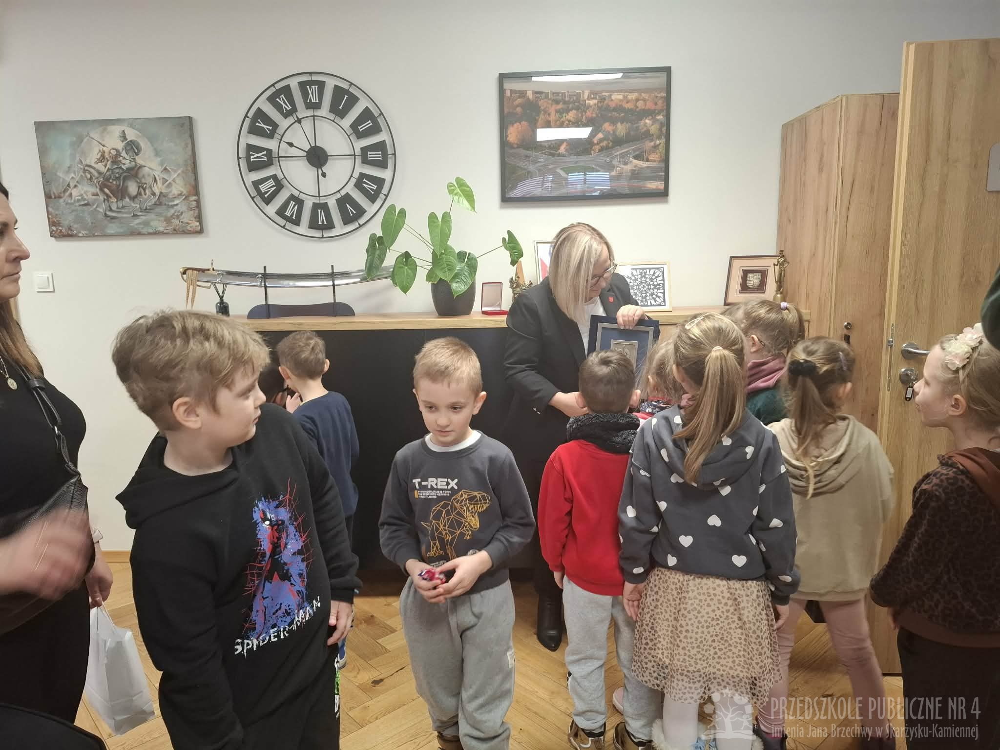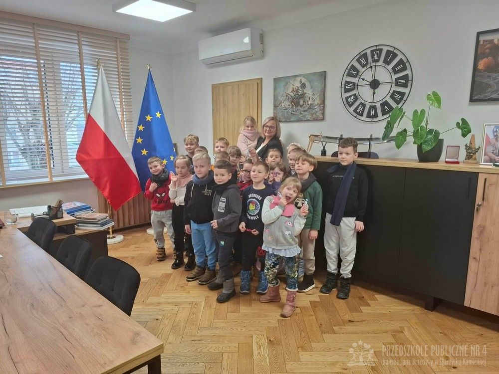 W dniu dzisiejszym dzieci z grupy "Biedronek" były na wycieczce w Urzędzie Miasta. W ramach poznawania preorientacji zawodowej miały okazję zapoznać się z zawodem urzędnika państwowego. Po urzędzie oprowadzał nas Pan Naczelnik Wydziału Edukacji. Dzieci zobaczyły salę konferencyjną, w której obradują radni miasta. Spotkały się i porozmawiały z Panią Wiceprezydent, obejrzały gabinet Prezydenta Miasta. Na koniec dzieci zostały zaproszone do Urzędu Stanu Cywilnego i zasiadły w Sali Ślubów. Tam pracownice USC opowiedziały dzieciom o zakresie swojej pracy. Wycieczka ta dostarczyła dzieciom wielu atrakcji i wiadomości o pracy urzędników.