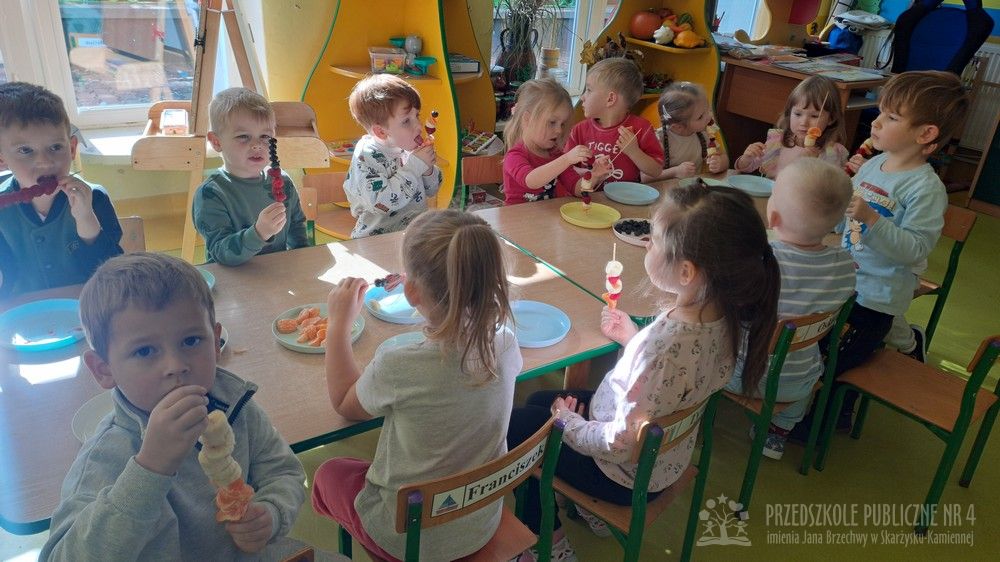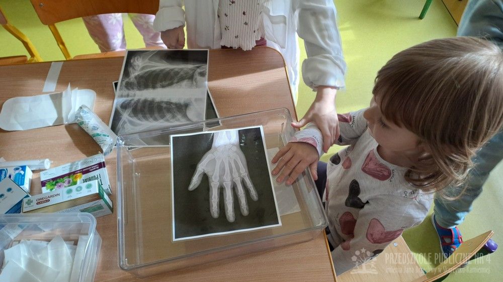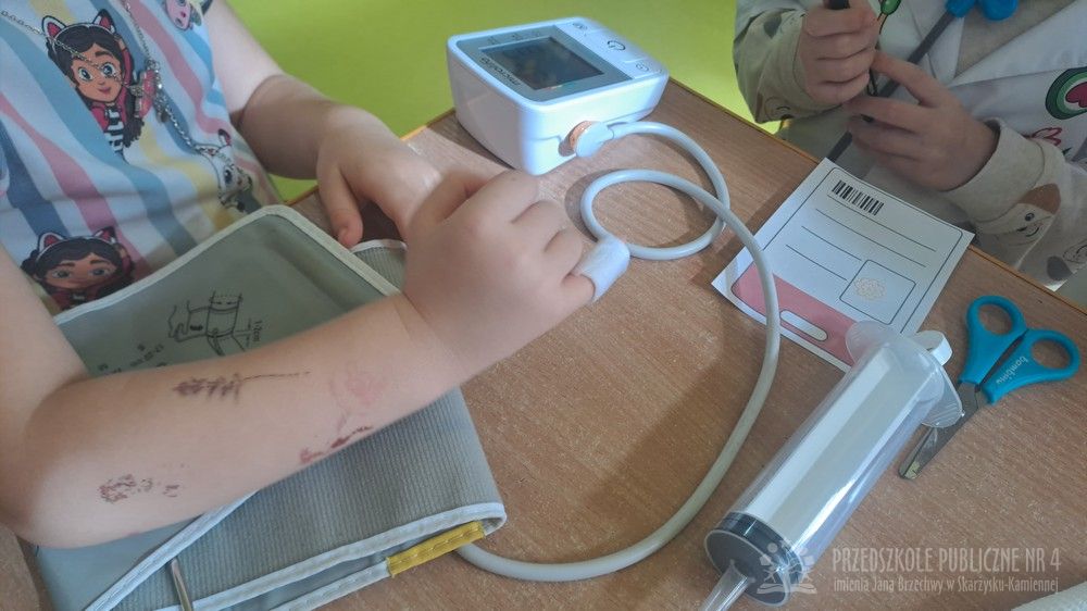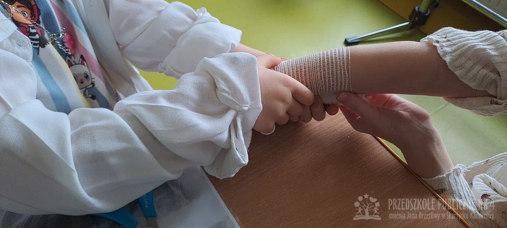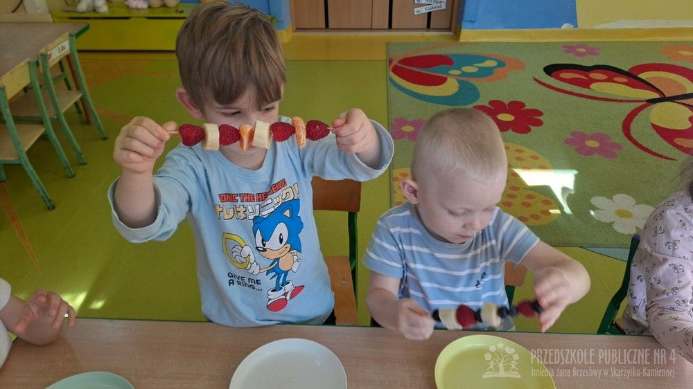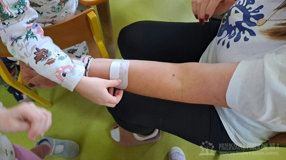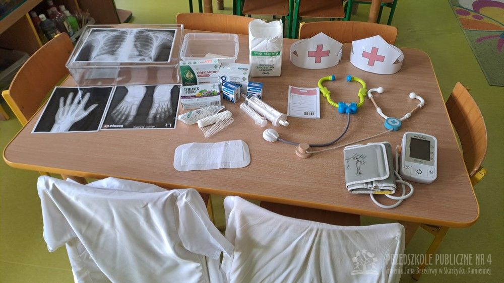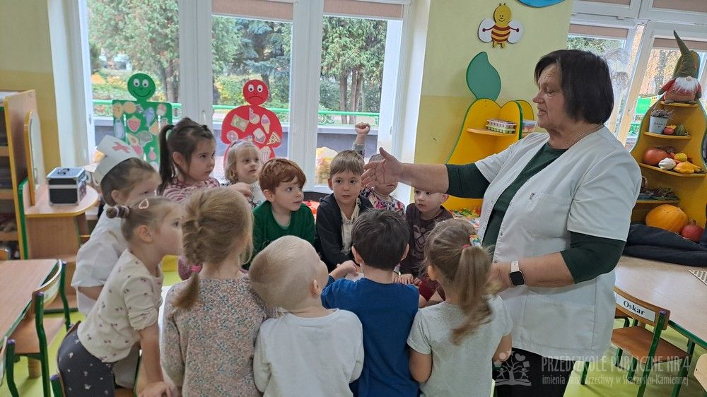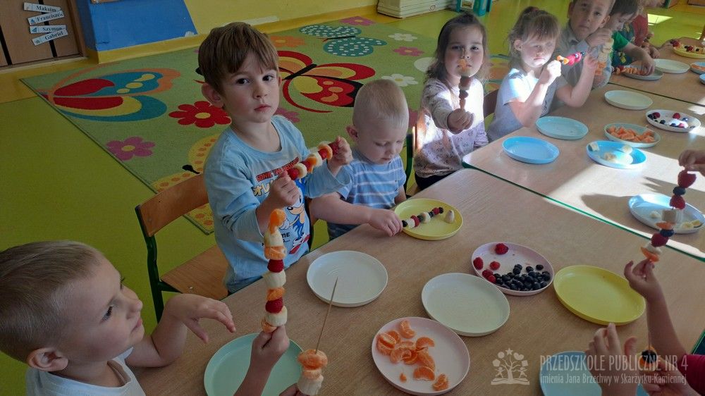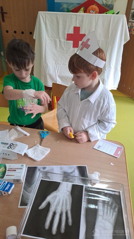 Zdrowie to bardzo ważna sprawa, wiedzą już o tym wszystkie Krasnale. W ostatnim czasie w naszej grupie zajmowaliśmy się tematem zdrowia. W toku zabaw dzieci poznały zasady zdrowego odżywiania oraz przygotowały szaszłyki owocowe, które były przepyszne. Gościliśmy w naszej grupie panią pielęgniarkę, która opowiedziała dzieciom o tym, jak zachować zasady higieny i zdrowego stylu życia. Krasnale dowiedziały się również, na czym polega praca pielęgniarki. Następnie miały okazję wcielić się role pracowników służby zdrowia - lekarza i pielęgniarki. Poprzez zabawę i aktywne działanie dzieci poznały atrybuty i narzędzia pracy przedstawicieli tych zawodów.