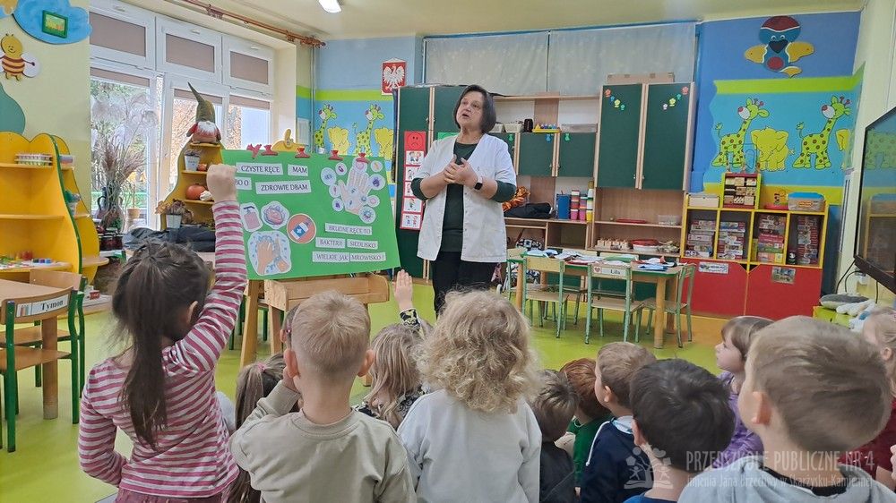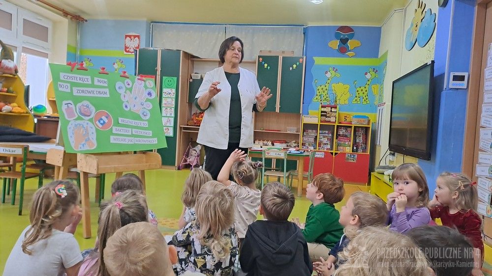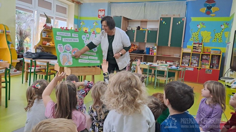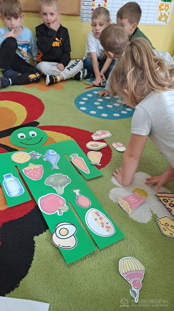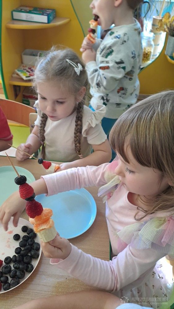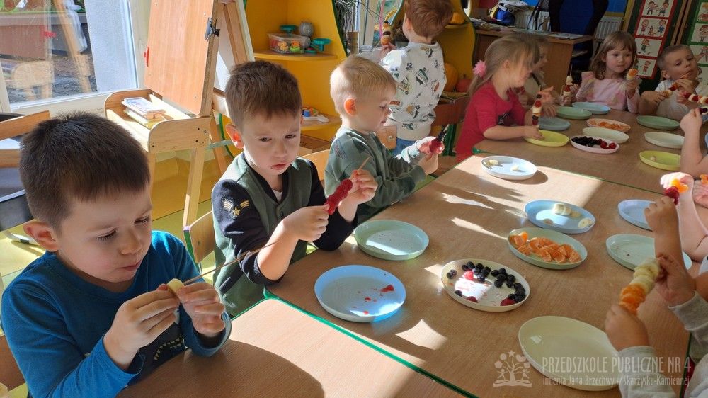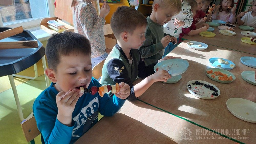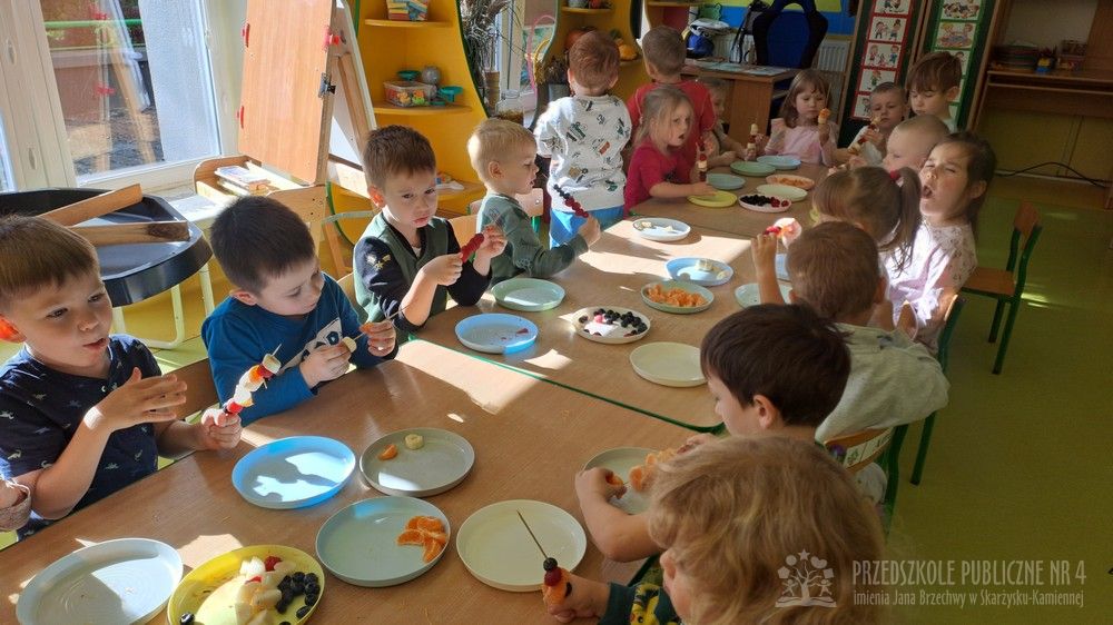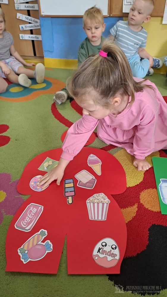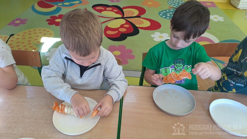 Zdrowie to bardzo ważna sprawa, wiedzą już o tym wszystkie Krasnale. W ostatnim czasie w naszej grupie zajmowaliśmy się tematem zdrowia. W toku zabaw dzieci poznały zasady zdrowego odżywiania oraz przygotowały szaszłyki owocowe, które były przepyszne. Gościliśmy w naszej grupie panią pielęgniarkę, która opowiedziała dzieciom o tym, jak zachować zasady higieny i zdrowego stylu życia. Krasnale dowiedziały się również, na czym polega praca pielęgniarki. Następnie miały okazję wcielić się role pracowników służby zdrowia - lekarza i pielęgniarki. Poprzez zabawę i aktywne działanie dzieci poznały atrybuty i narzędzia pracy przedstawicieli tych zawodów.