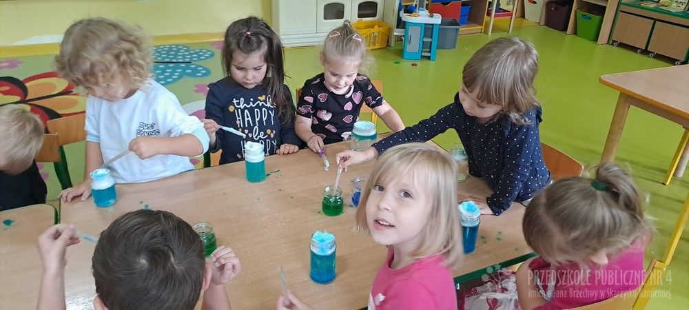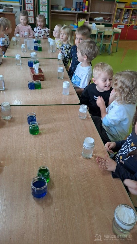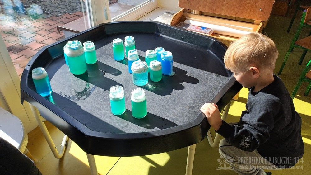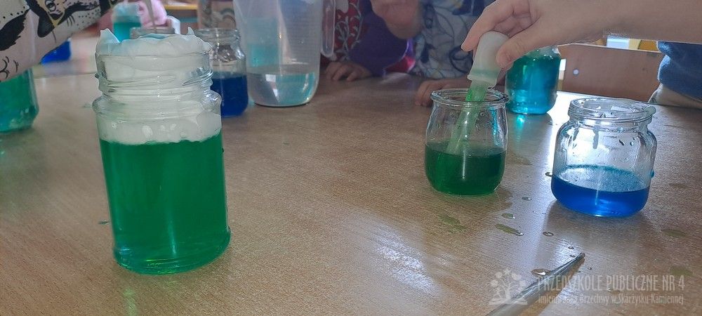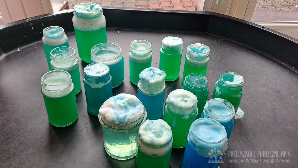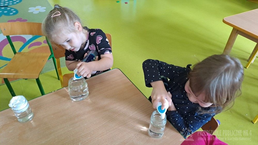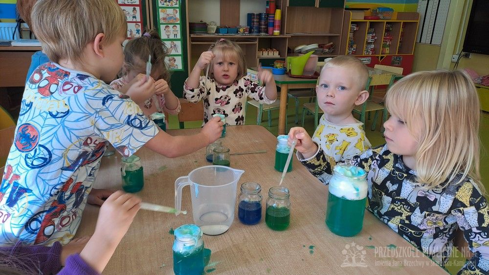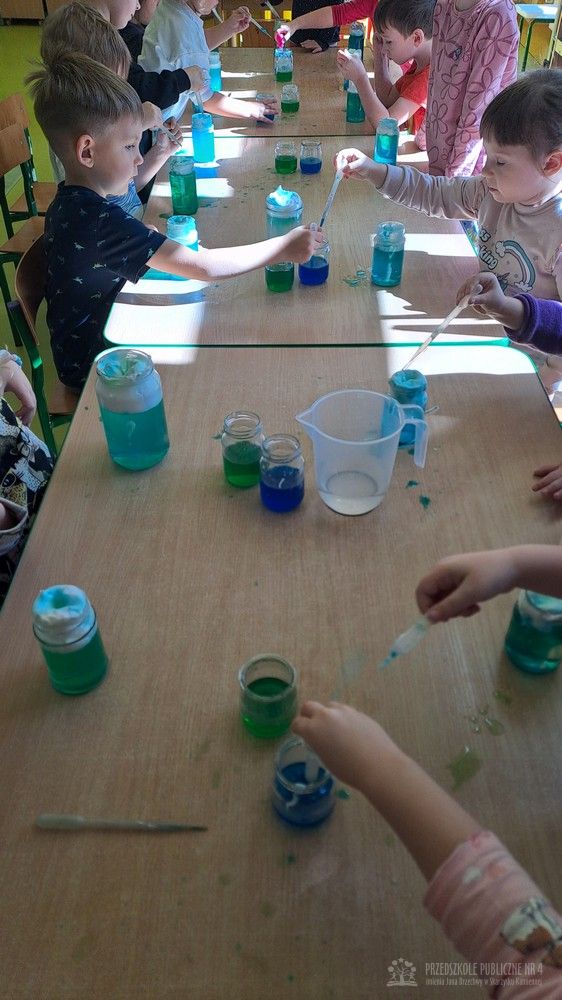 "Deszczowa chmura" - kolejny eksperyment w ramach zajęć dodatkowych w grupie Krasnali. Do przygotowania chmury wykorzystaliśmy wodę, piankę do golenia oraz niebieski barwnik. Efekt był niesamowity.