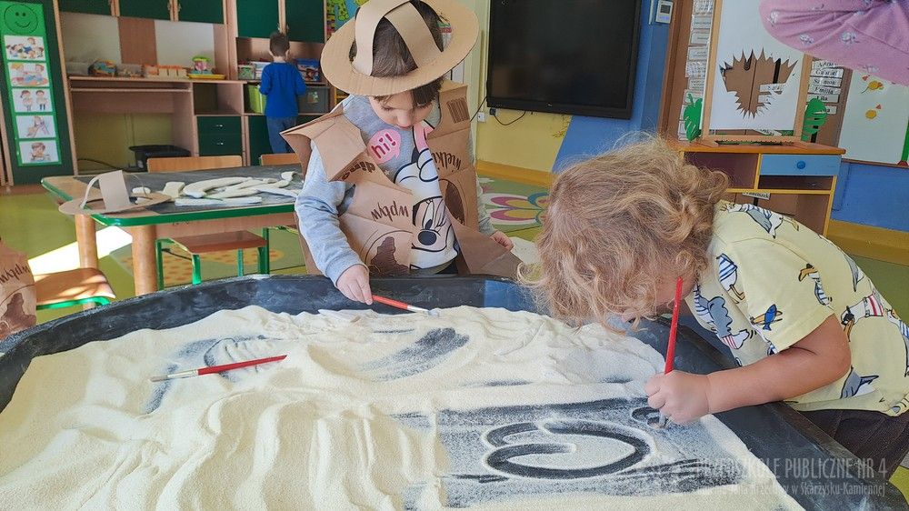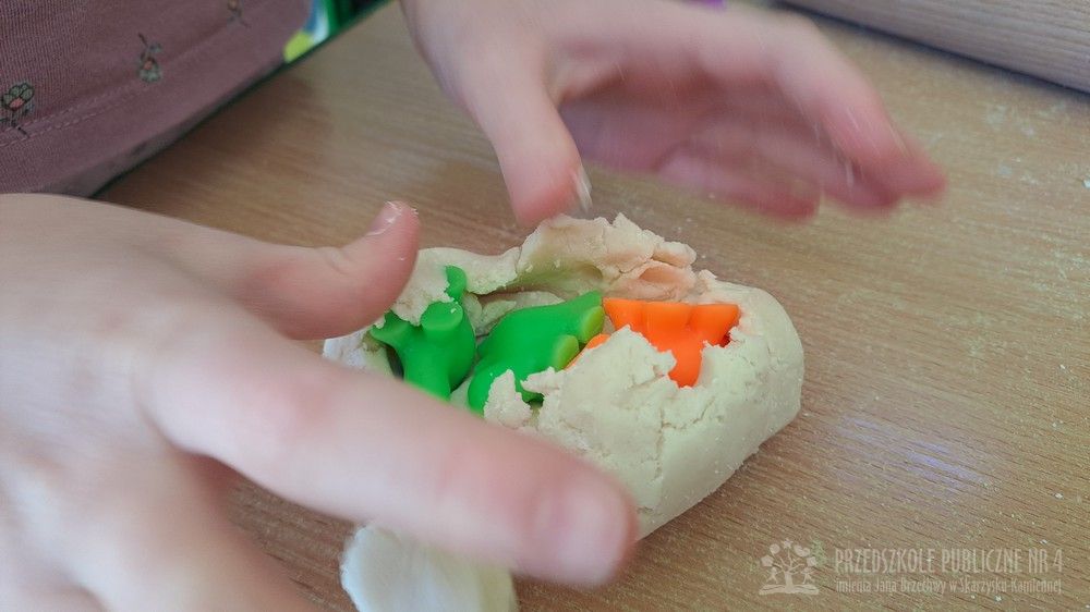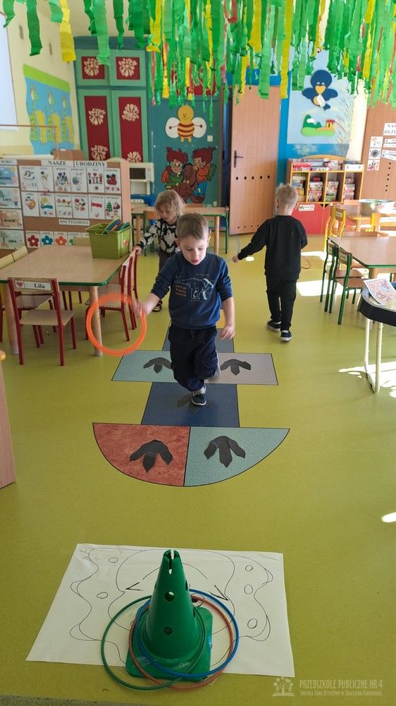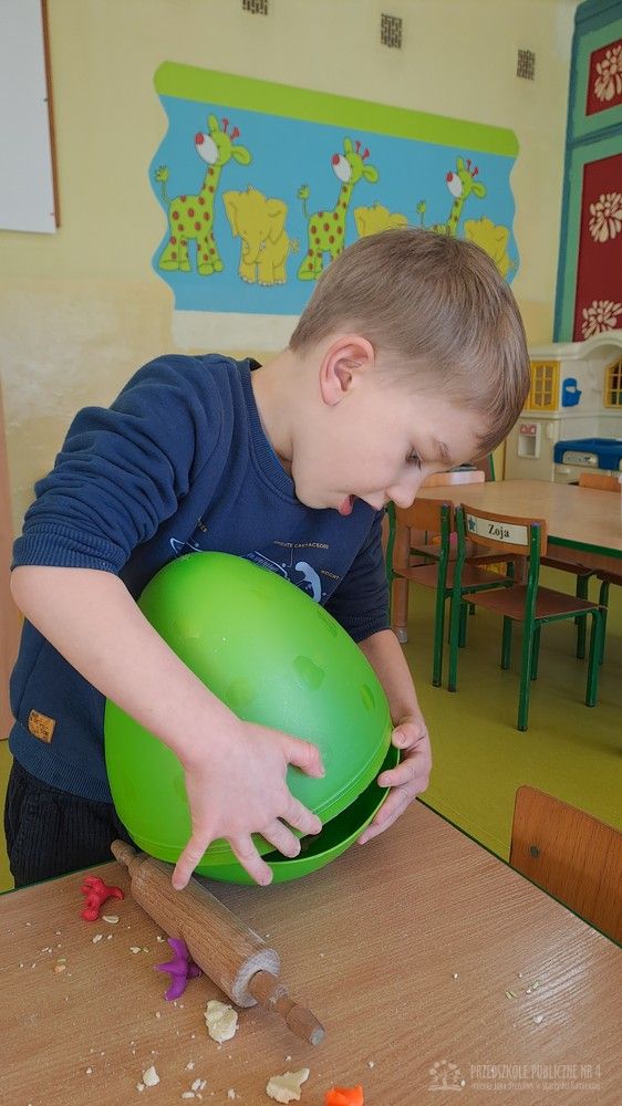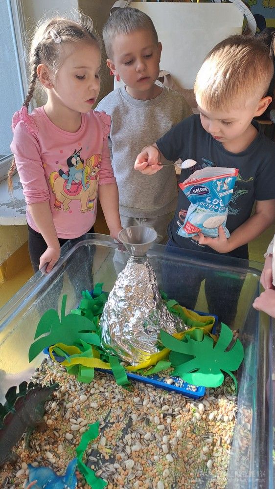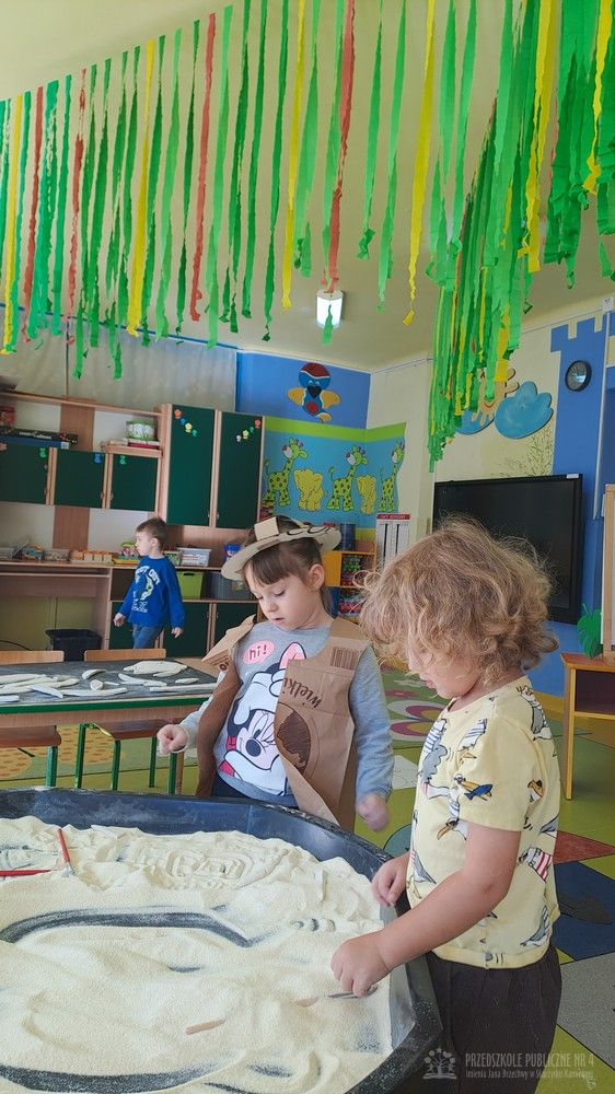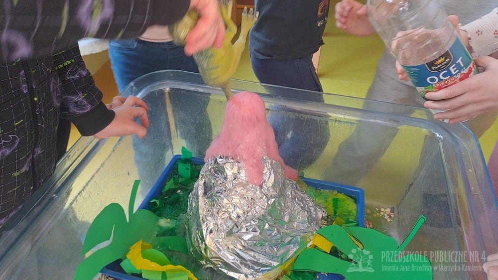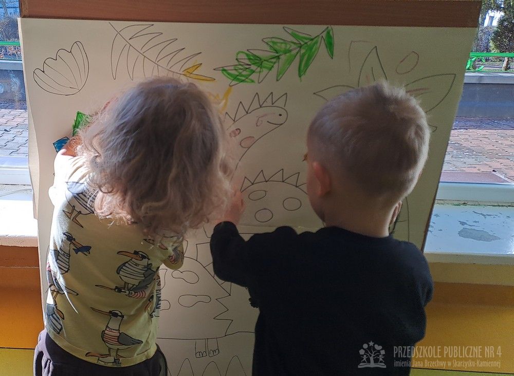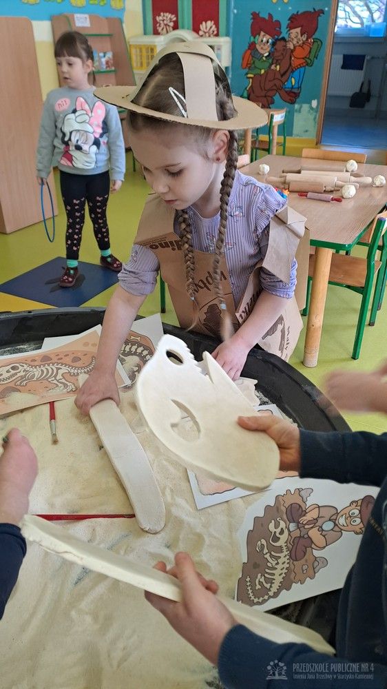 26 lutego w grupie Krasnali odbyły się wyjątkowe obchody Dnia Dinozaura, które przeniosły dzieci w fascynujący, prehistoryczny świat sprzed milionów lat. Podczas zajęć dzieci aktywnie działały zgodnie z założeniami planu daltońskiego – samodzielnie podejmowały decyzje, współpracowały w zespołach i odpowiedzialnie realizowały powierzone zadania. Tego dnia przedszkolaki zamieniły się w prawdziwych paleontologów – odkopywały kości dinozaura, a następnie wspólnie układały szkielet w całość, rozwijając umiejętność współpracy. Przedszkolaki z ogromnym zaangażowaniem wykonały pracę plastyczną według instrukcji, rozwijając przy tym swoją samodzielność, kreatywność oraz umiejętność działania krok po kroku. Nie zabrakło również fascynujących eksperymentów! Dzieci z zaciekawieniem obserwowały „lodowe jajka dinozaurów”, z których po stopniowym rozpuszczeniu lodu wyłaniały się ukryte niespodzianki. Ogromne emocje wzbudził także „wybuch wulkanu”. Dzieci kolorowały ilustracje prehistorycznych gadów oraz brały udział w ruchowej zabawie w klasy, poruszając się po śladach dinozaurów, co dostarczyło im mnóstwo radości i energii. To był dzień pełen wrażeń, nauki poprzez zabawę i niezapomnianych emocji, który na długo pozostanie w pamięci naszych małych odkrywców.