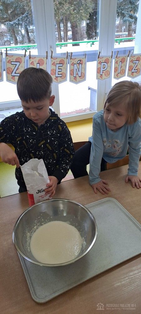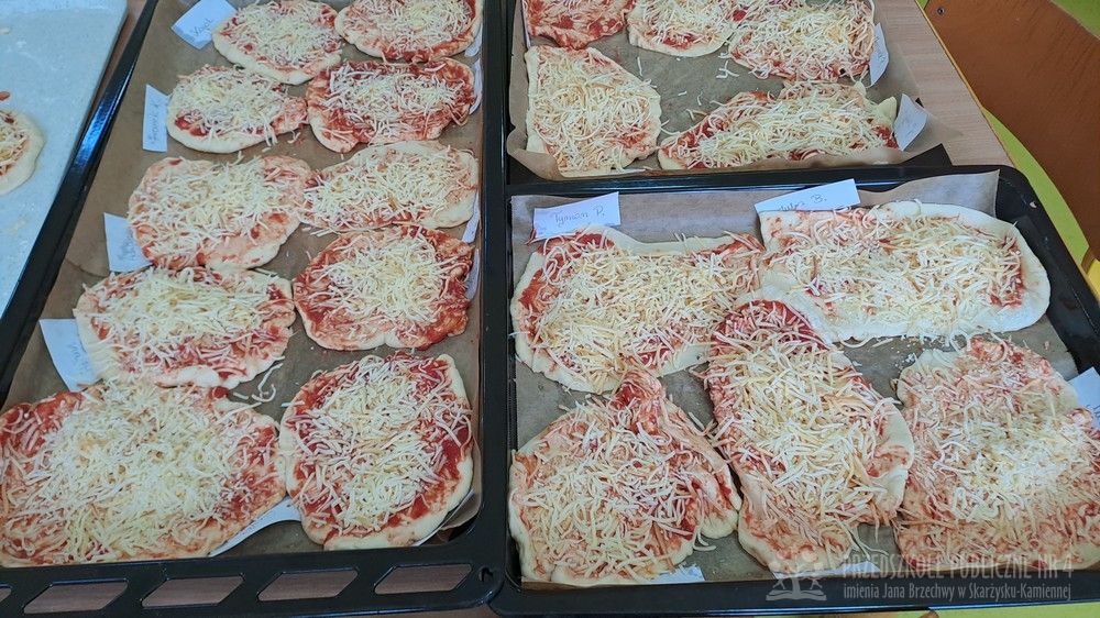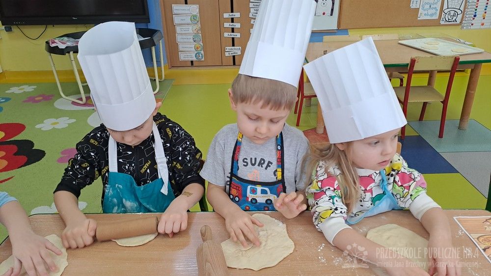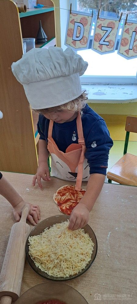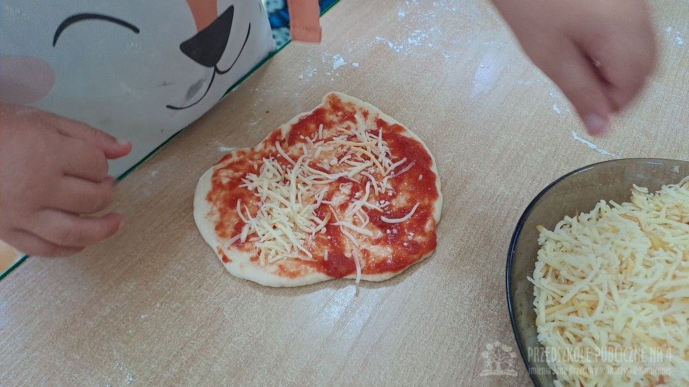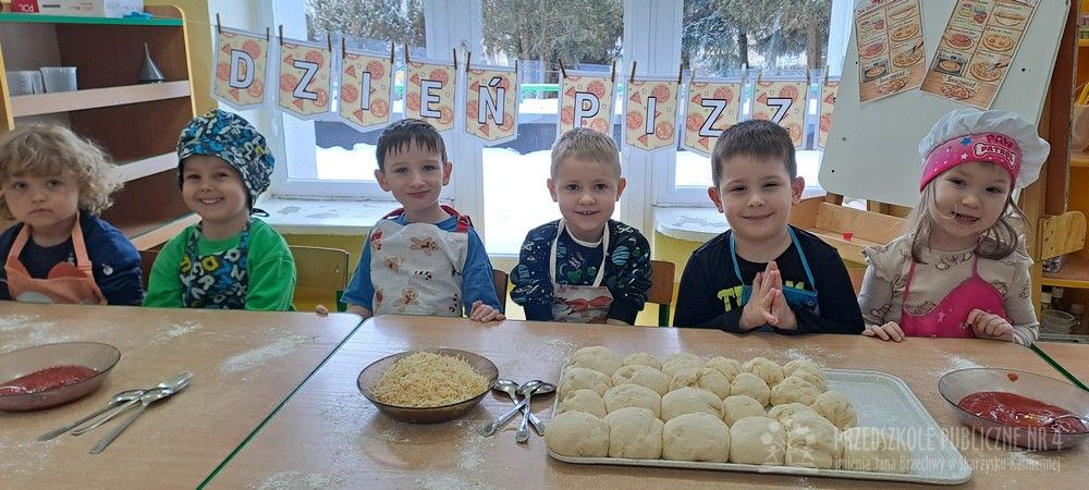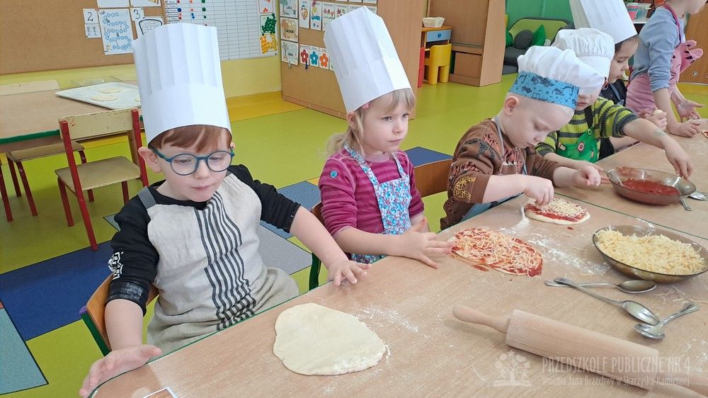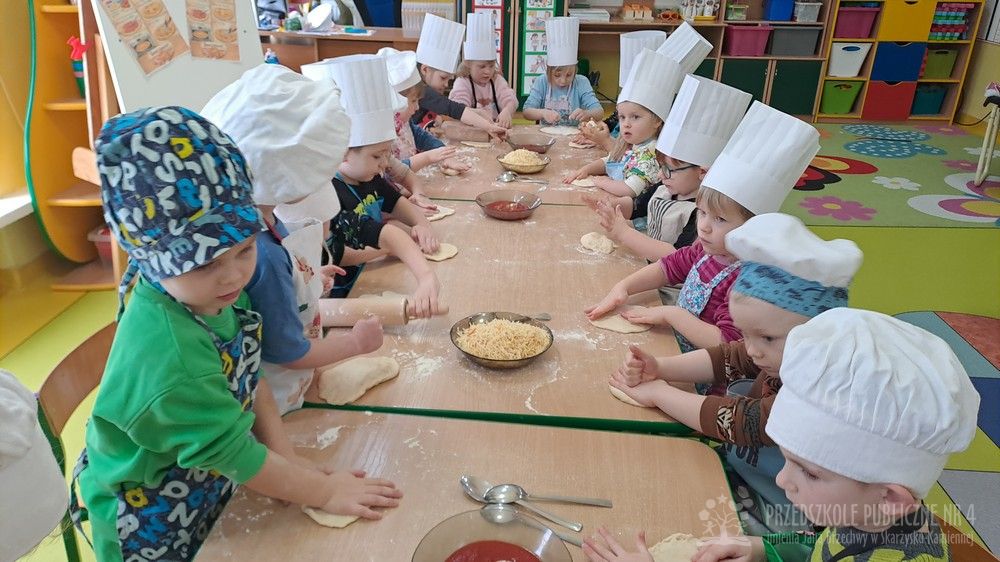 9 lutego obchodziliśmy Dzień Pizzy, który był pełen radości, zapachów i wspaniałej zabawy! Tego dnia zamieniliśmy się w prawdziwych małych kucharzy. Wspólnie przygotowaliśmy ciasto na pizzę – dzieci z zaangażowaniem pomagały w odmierzaniu składników, mieszaniu oraz wyrabianiu ciasta. Każde dziecko miało okazję przygotować swoją własną pizzę margheritę według obrazkowej instrukcji. Najpierw wałkowaliśmy ciasto, ćwicząc przy tym sprawność rąk. Następnie smarowaliśmy je sosem pomidorowym, a na koniec posypywaliśmy startym serem. Wszystkie pizze wyglądały wspaniale i były przygotowane z ogromną starannością. Po upieczeniu nadszedł najbardziej wyczekiwany moment – degustacja! Nasze pizze smakowały wyśmienicie, a dzieci z dumą próbowały swoich wypieków. Tego dnia nie zabrakło również zabaw matematycznych. Przedszkolaki przeliczały składniki, kawałki pizzy oraz ćwiczyły liczenie podczas tematycznych zabaw. Nauka poprzez działanie - zgodnie z koncepcją planu daltońskiego - sprawiła dzieciom wiele radości. To był wyjątkowy dzień pełen uśmiechu, samodzielności, współpracy i pysznych smaków!