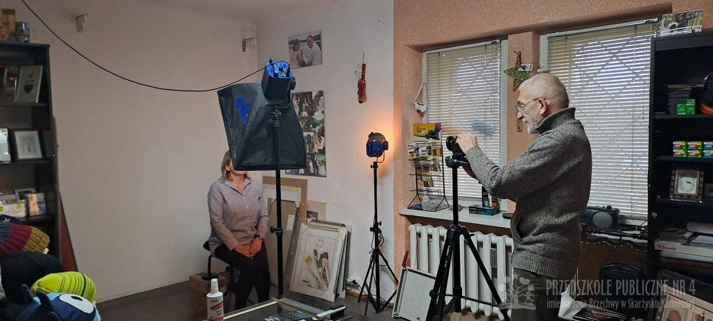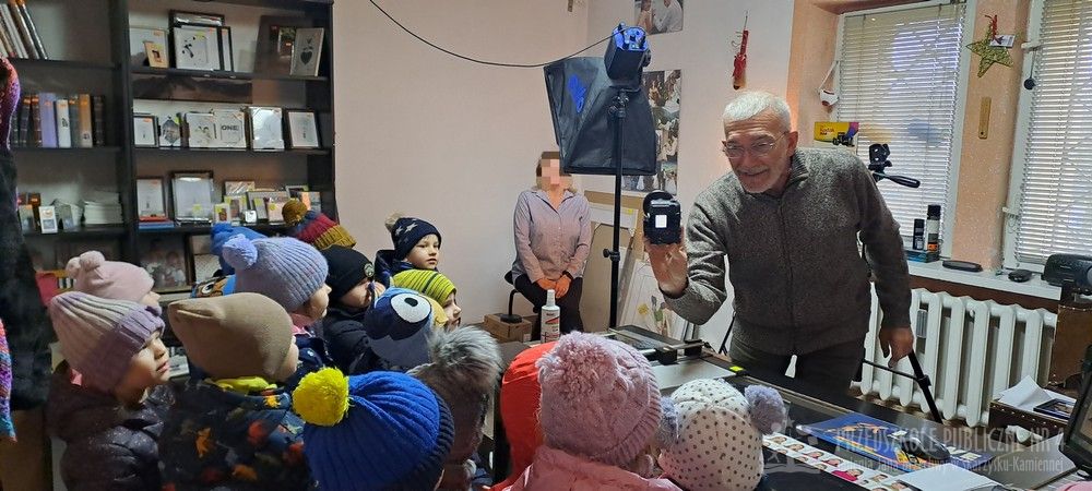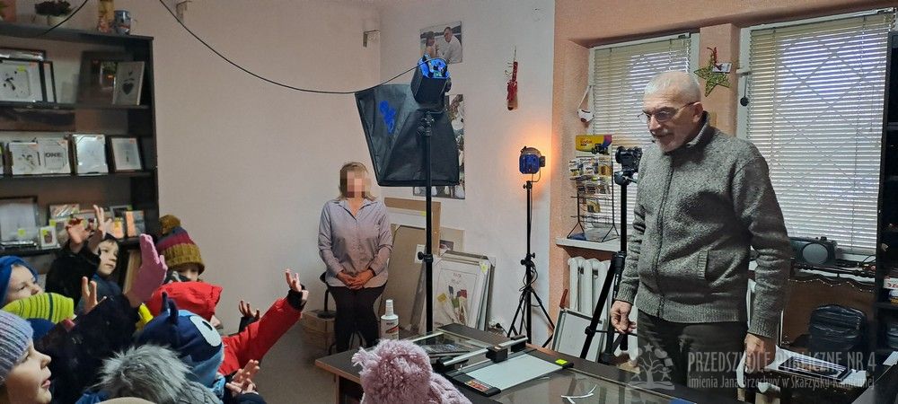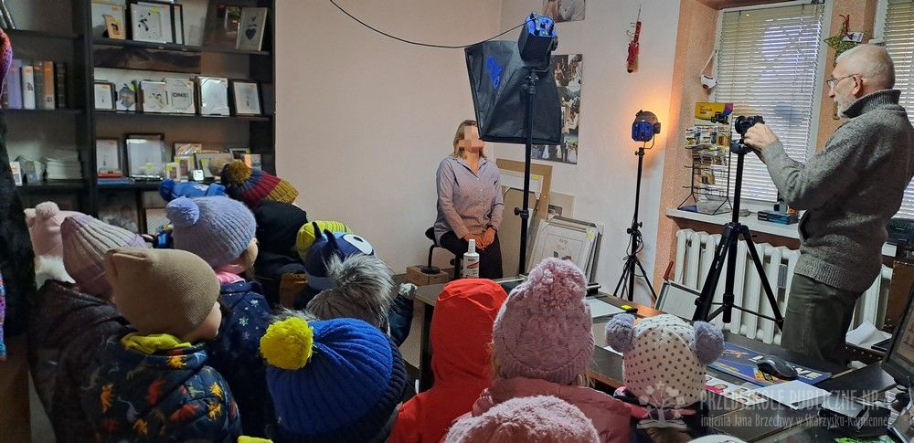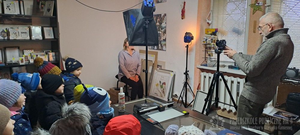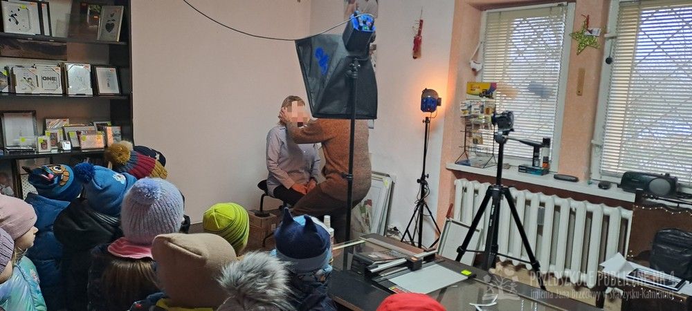 W tym tygodniu nasze Krasnale odwiedziły studio fotograficzne, aby zobaczyć z bliska na czym polega praca fotografa. Pan fotograf z wielką radością przyjął przedszkolaków i opowiedział o swojej pracy. Pokazał urządzenia, które wykorzystuje do robienia zdjęć oraz wyjaśnił, jak właściwie ustawić aparat, oświetlenie czy modela. Dla dzieci było to niezwykle interesujace spotkanie.