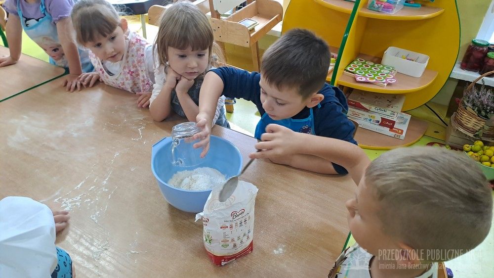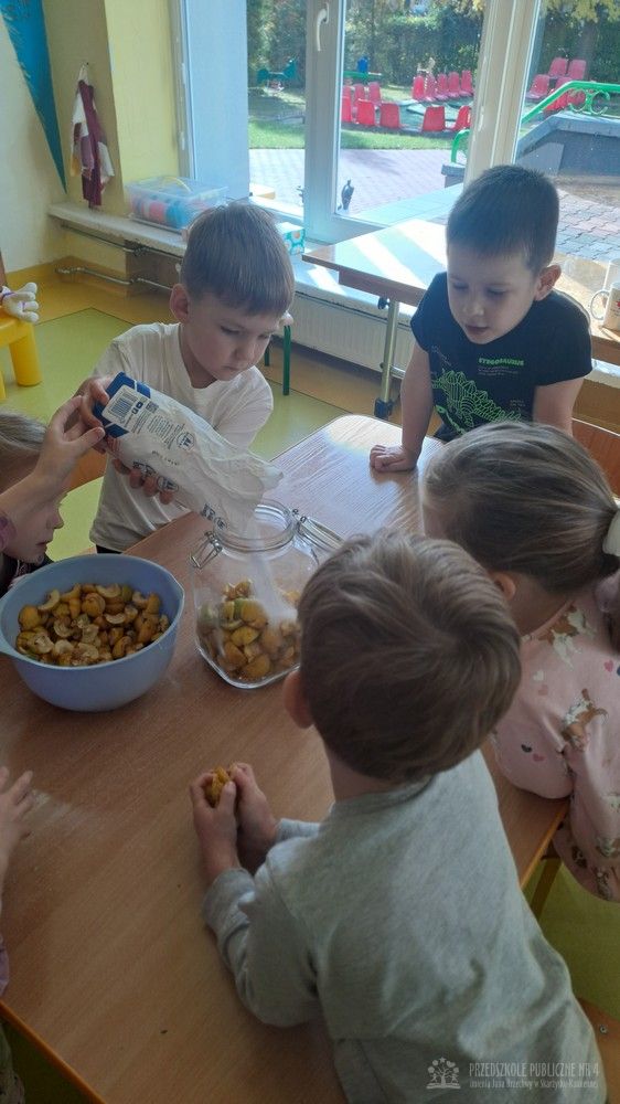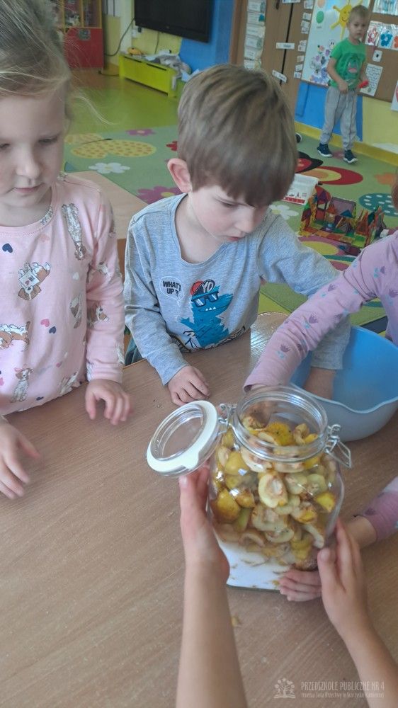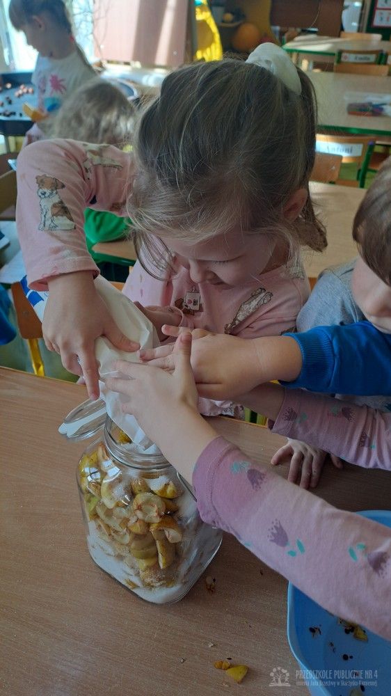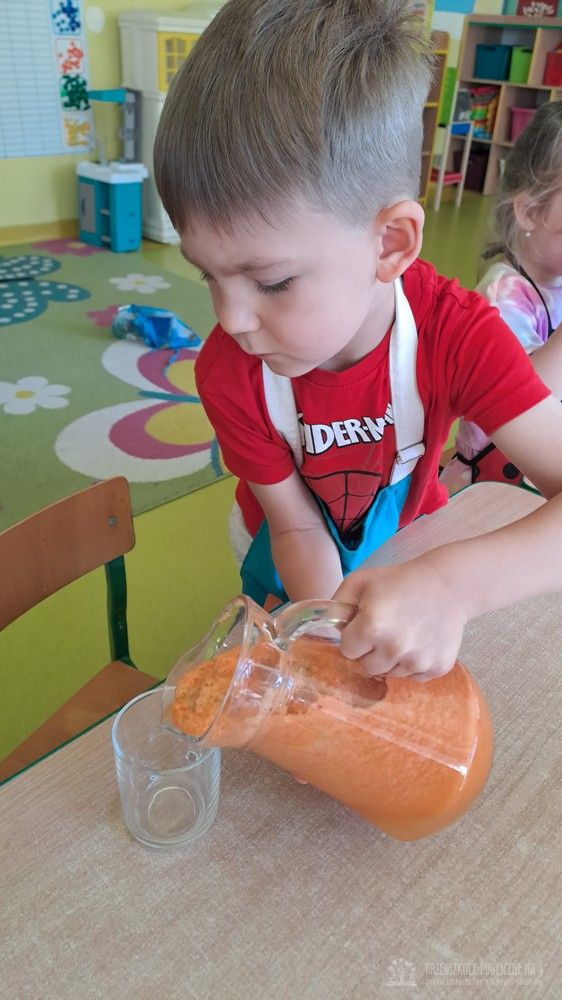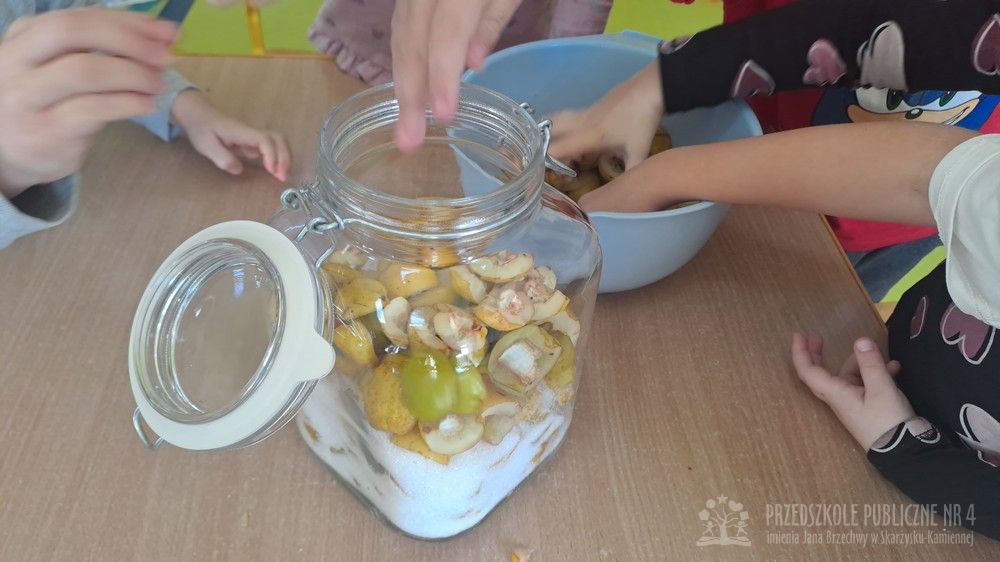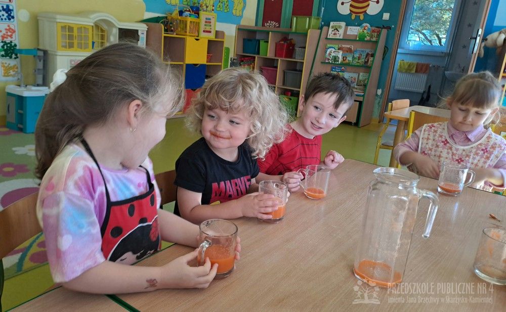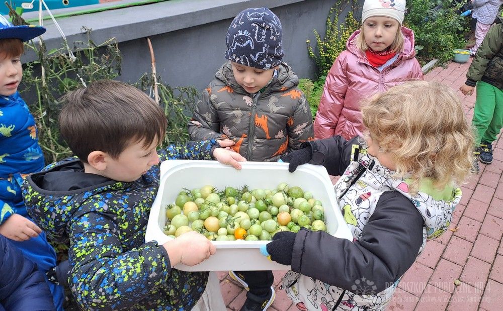 Jesień to czas zbioru owoców i warzyw. My także zebraliśmy plony z naszego ogrodu - pomidory, marchewki i pigwę. Z marchewek i jabłek wspólnie przygotowaliśmy pyszny sok przy pomocy sokowirówek. Nazajutrz upiekliśmy ciasto marchewkowe, które było tak pyszne, że zniknęło w mgnieniu oka. Krasnale bardzo lubią zajęcia kulinarne. Dzięki takim zajęciom rozwijamy u dzieci samodzielność, umiejętności manualne, kompetencje matematyczne. Jest to także doskonala okazja do poznawania zasad bezpieczeństwa, promowania zdrowego żywienia, a także rozwijania umiejętności współpracy i kreatywności zgodnie z koncepcją planu daltońskiego. Ponadto w trakcie zajęć dzieci zapoznają się z różnymi produktami, smakami i zapachami, a także uczą się zasad kulturalnego zachowania przy stole.