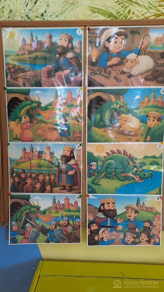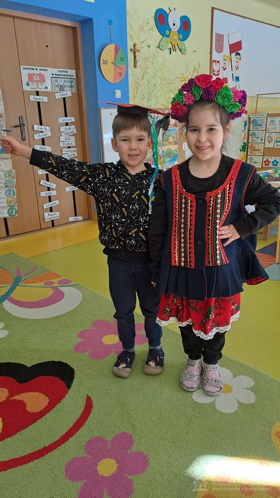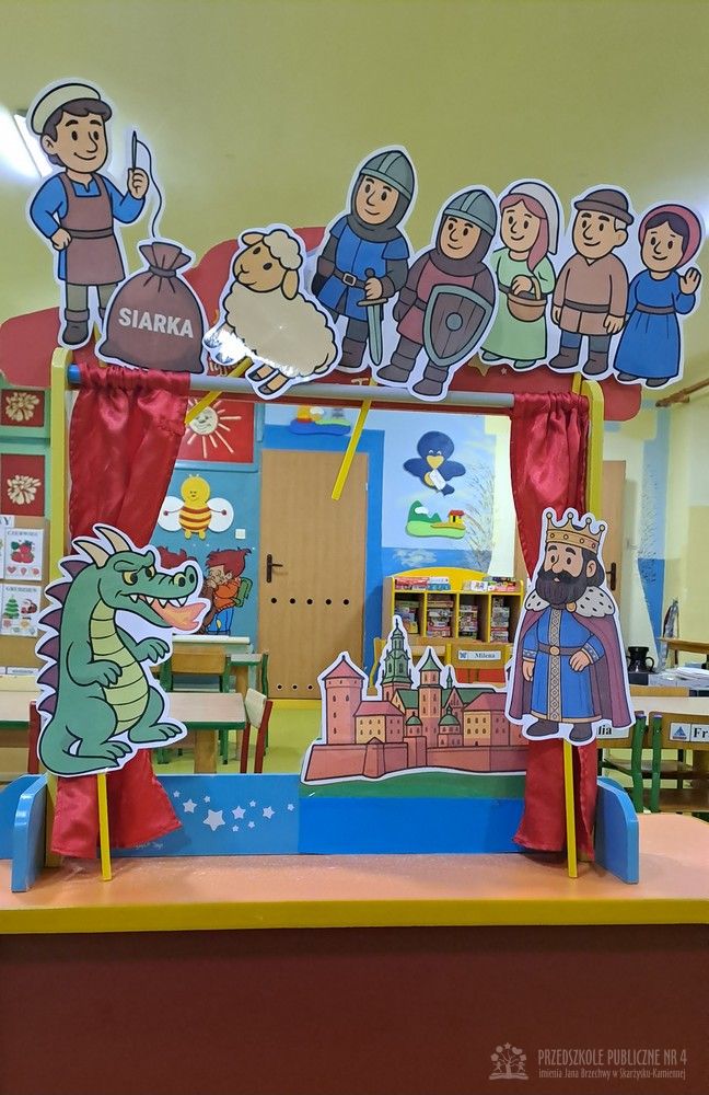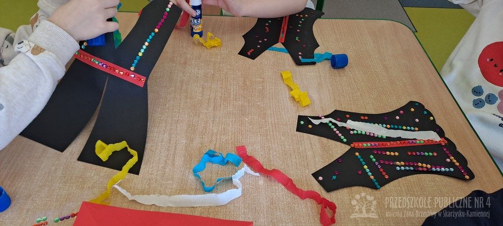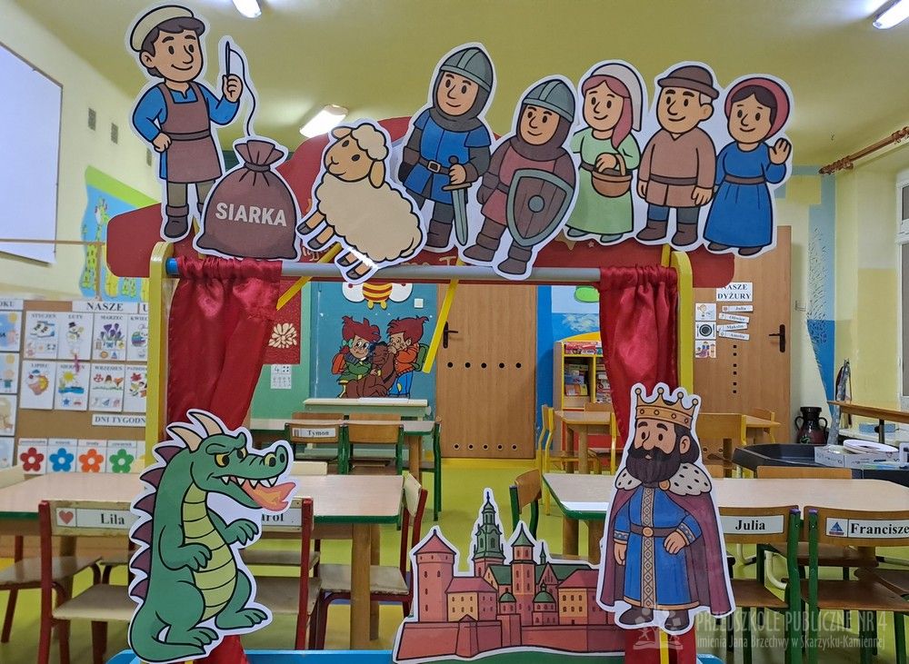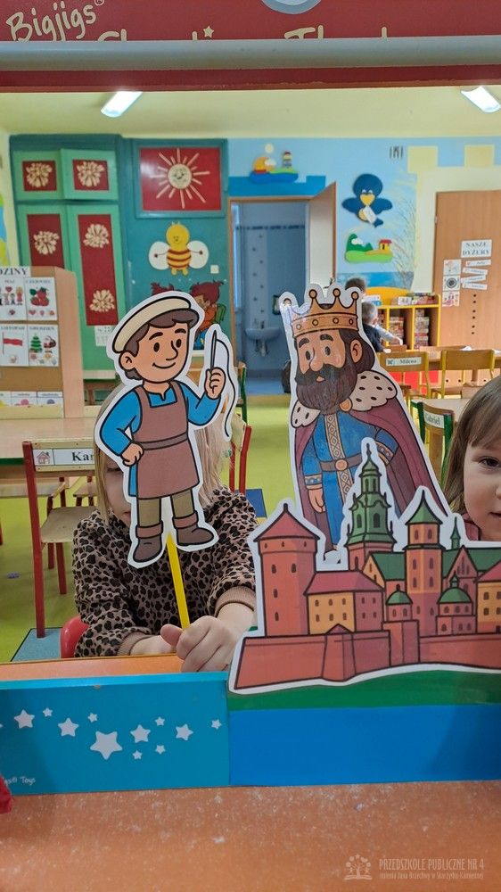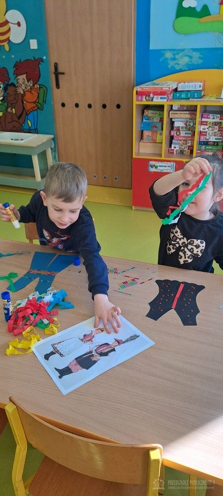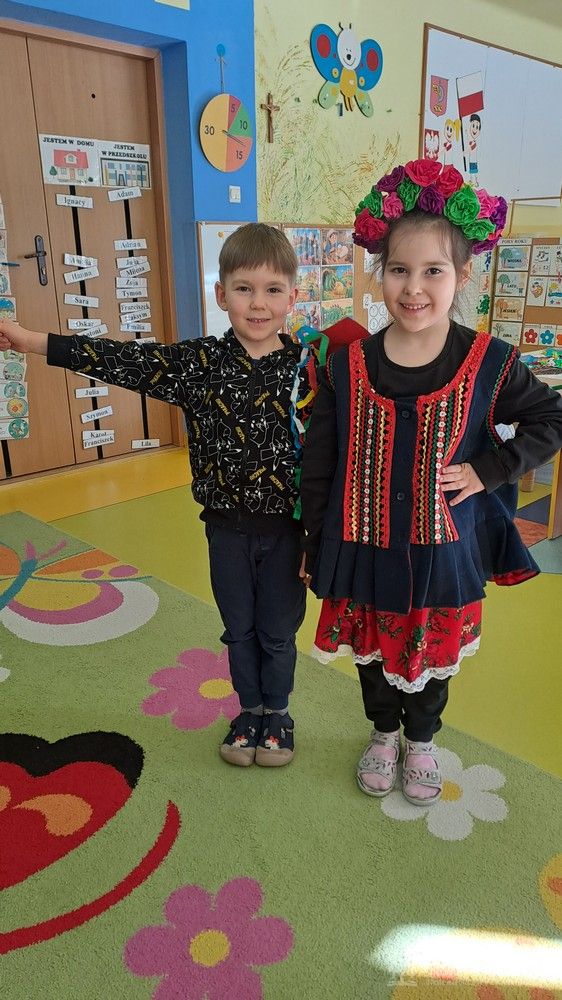 Podczas ostatnich zajęć Krasnale wybrały się w niezwykłą podróż do jednego z najpiękniejszych miast Polski – Krakowa. Dzieci poznały najważniejsze symbole miasta, takie jak Wawel, Wisłę oraz taniec narodowy Krakowiak. Szczególne zainteresowanie wzbudziła "Legenda o Smoku Wawelskim". Przedszkolaki z wielkim zaciekawieniem wysłuchały historii o smoku, który mieszkał u podnóża Wawelu, dzielnym szewczyku oraz sprytnym sposobie pokonania potwora. Następnie dzieci wcieliły się w bohaterów legendy i odegrały ją za pomocą teatrzyku kukiełkowego. Było dużo radości, śmiechu i kreatywnej zabawy. Nie zabrakło także aktywności muzycznej – przedszkolaki nauczyły się podstawowych kroków Krakowiaka i z ogromnym entuzjazmem tańczyły w rytm skocznej muzyki. Podczas zajęć dzieci poznały również tradycyjny strój krakowski - oglądały i przymierzały jego charakterystyczne elementy, takie jak kolorowy gorset, czapka krakuska, wstążki i korale. Każde dziecko wykonało pracę plastyczną inspirowaną strojem krakowskim. Dzieci ozdabiały papierowe elementy stroju – kaftan i gorset – wykorzystując kolorowe naklejki oraz bibułę. Powstały piękne, barwne prace, które stały się wspaniałą pamiątką z naszej „podróży” do Krakowa.