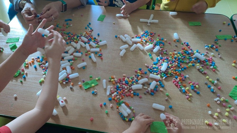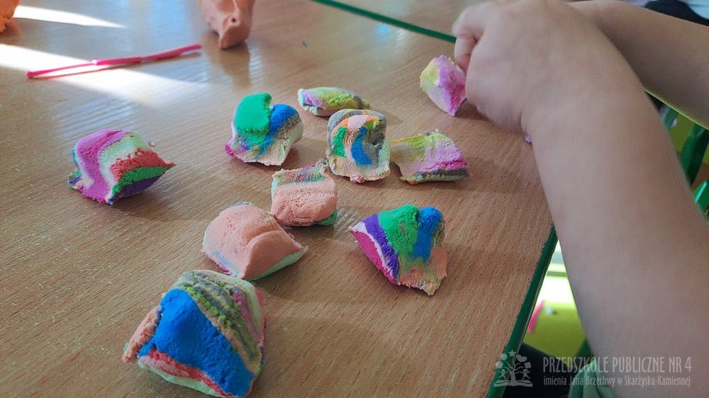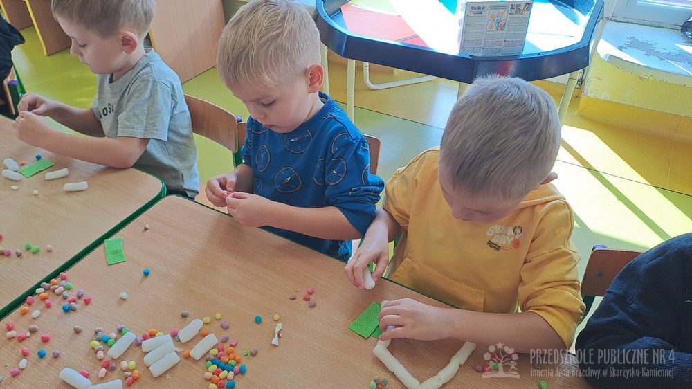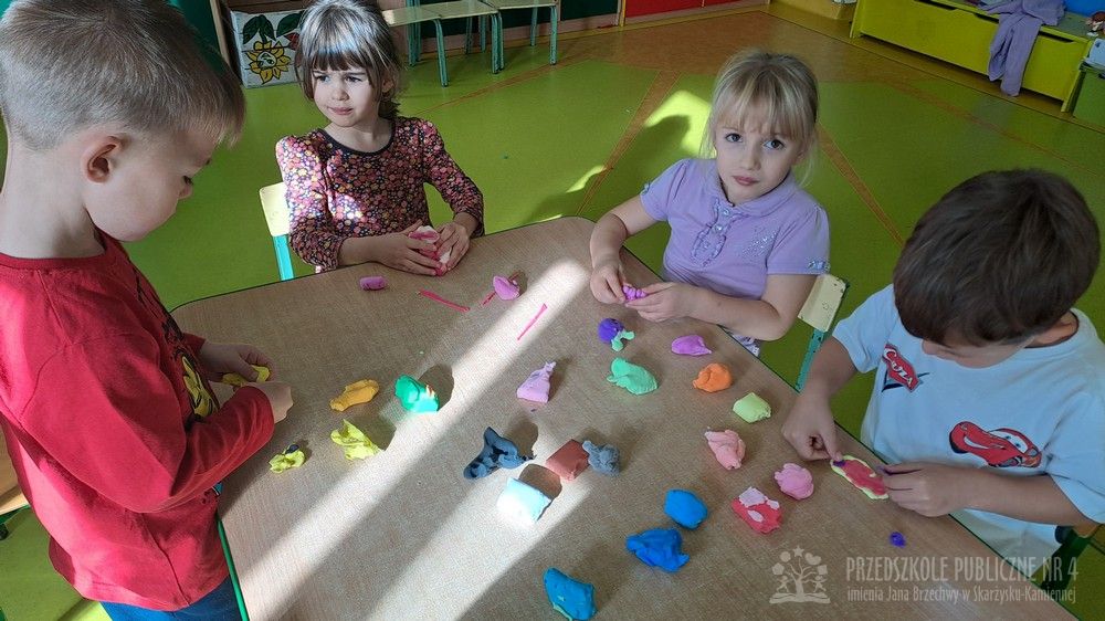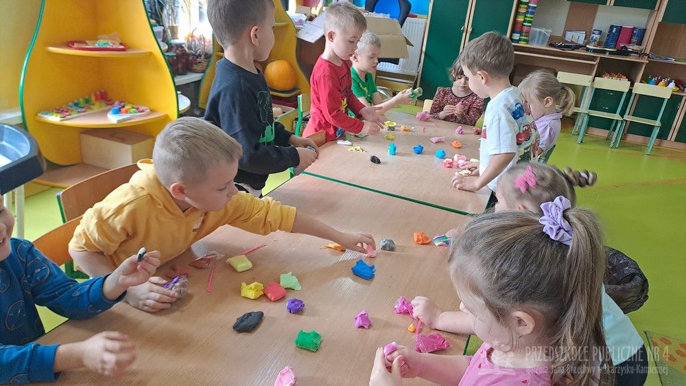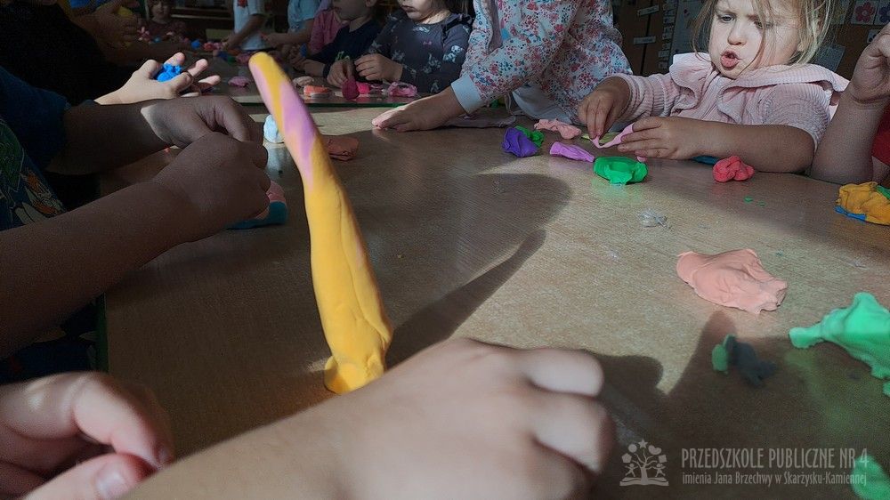 W paździrniku odbyły się pierwsze w tym roku szkolnym "warsztaty daltońskie". W grupie II tym razem zagościły kolorowe pianki. Przedszkolaki z wszystkich grup, które wybrały ten rodzaj zajęć, miały okzaję komponować i lepić figurki z kolorowych chrupek kukurydzianych PlayMais oraz z kolorowej piankoliny. Dzieci wykazały się dużą samodzielnością i kreatywnością w tworzeniu kompozycji. Na kolejne warsztaty zapraszamy już w listopadzie.