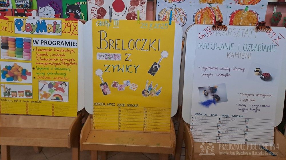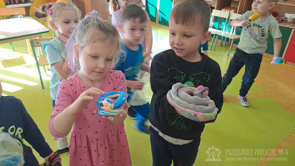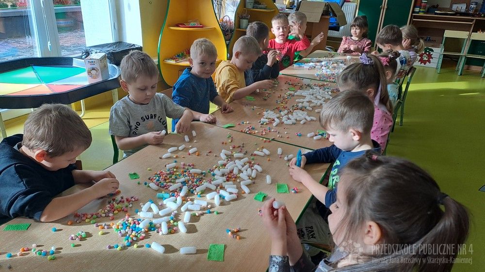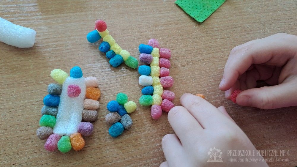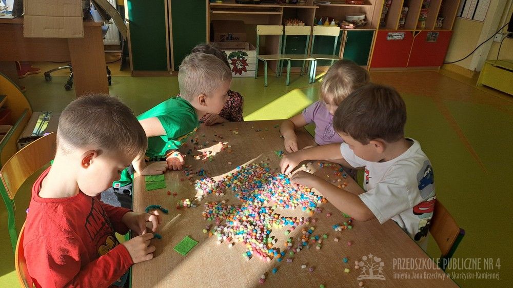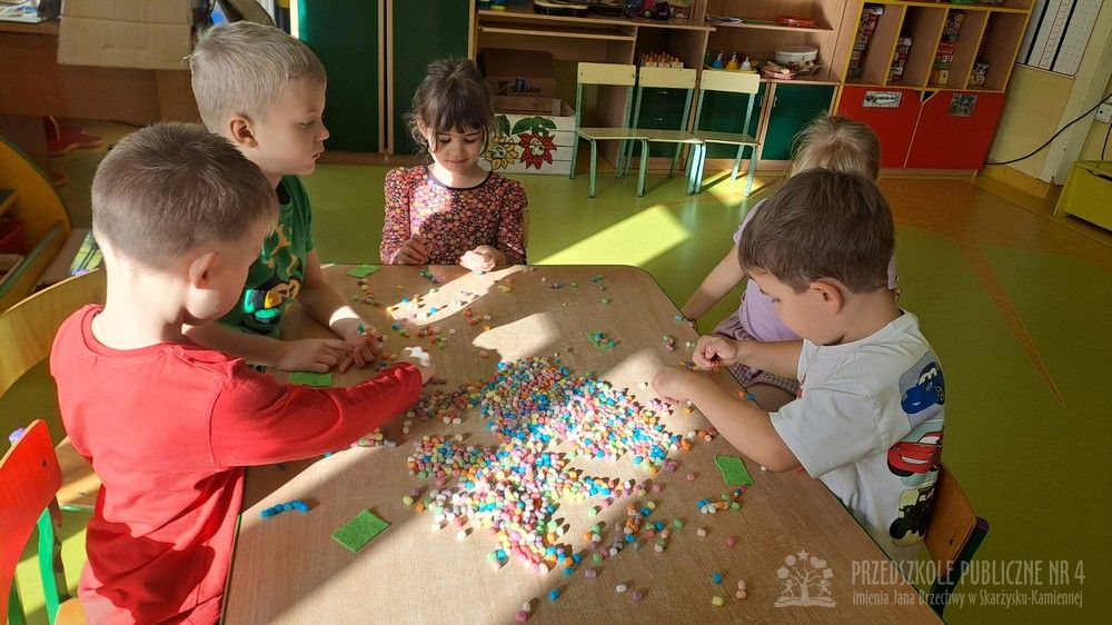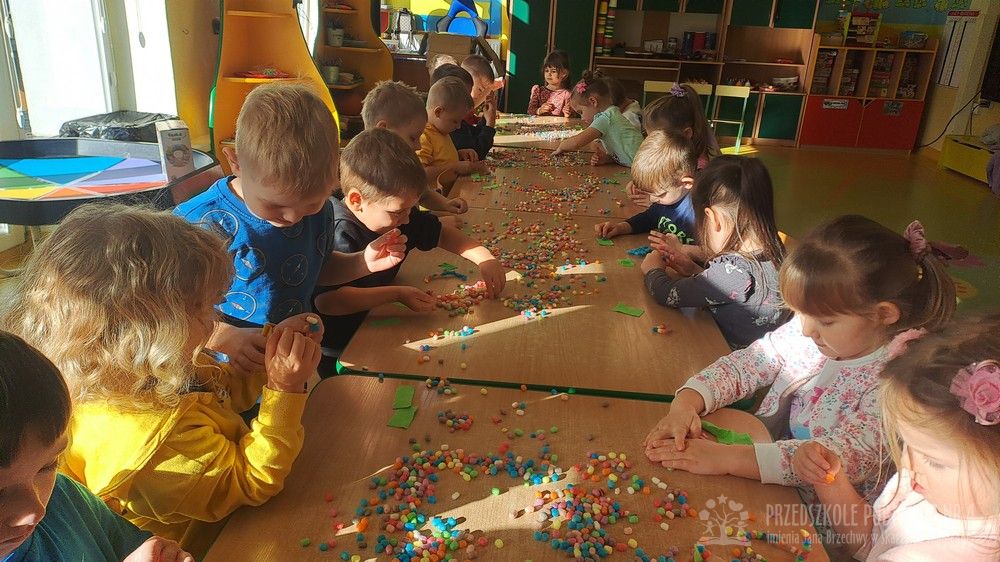 W paździrniku odbyły się pierwsze w tym roku szkolnym "warsztaty daltońskie". W grupie II tym razem zagościły kolorowe pianki. Przedszkolaki z wszystkich grup, które wybrały ten rodzaj zajęć, miały okzaję komponować i lepić figurki z kolorowych chrupek kukurydzianych PlayMais oraz z kolorowej piankoliny. Dzieci wykazały się dużą samodzielnością i kreatywnością w tworzeniu kompozycji. Na kolejne warsztaty zapraszamy już w listopadzie.