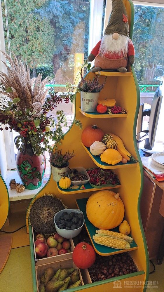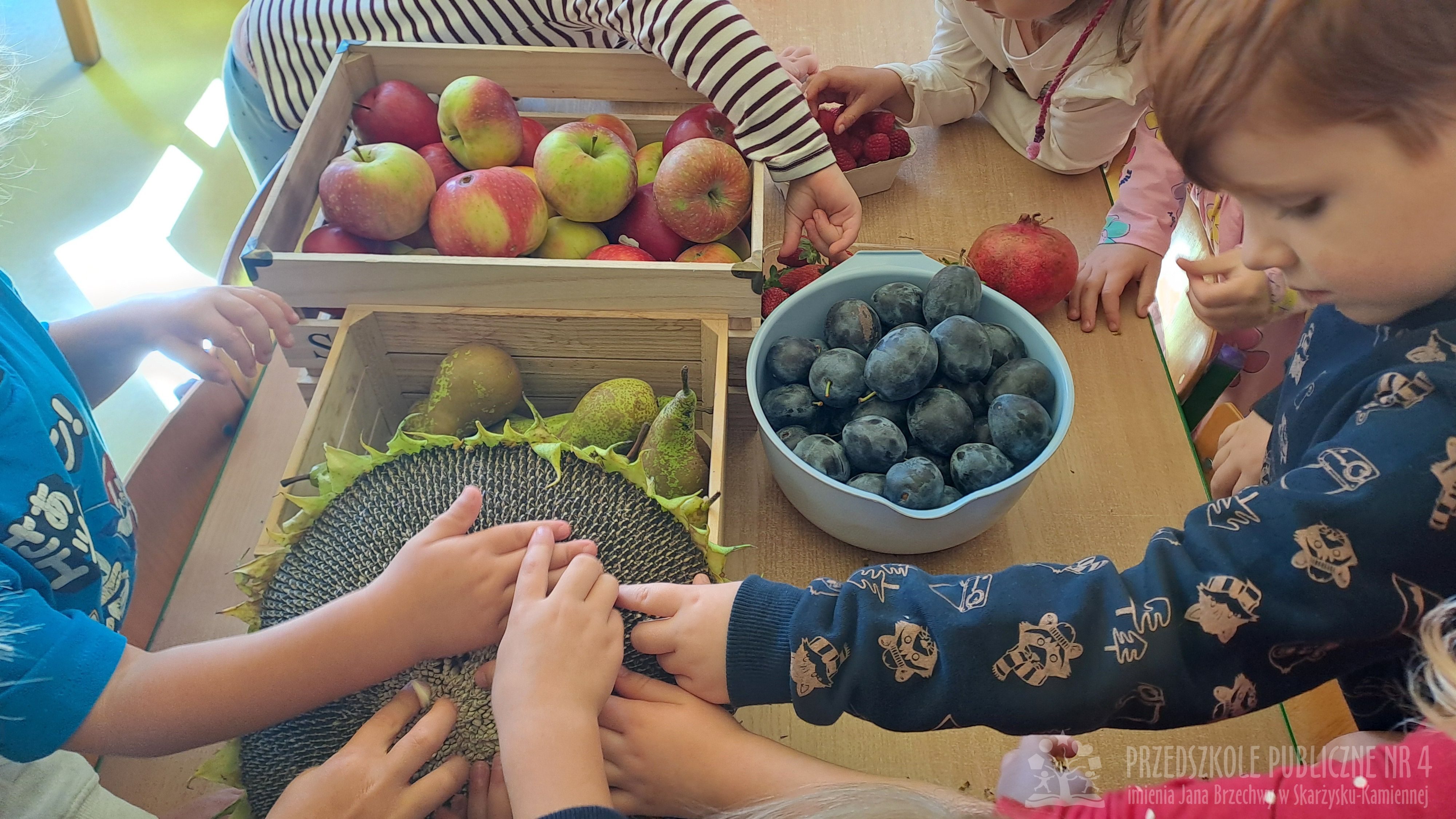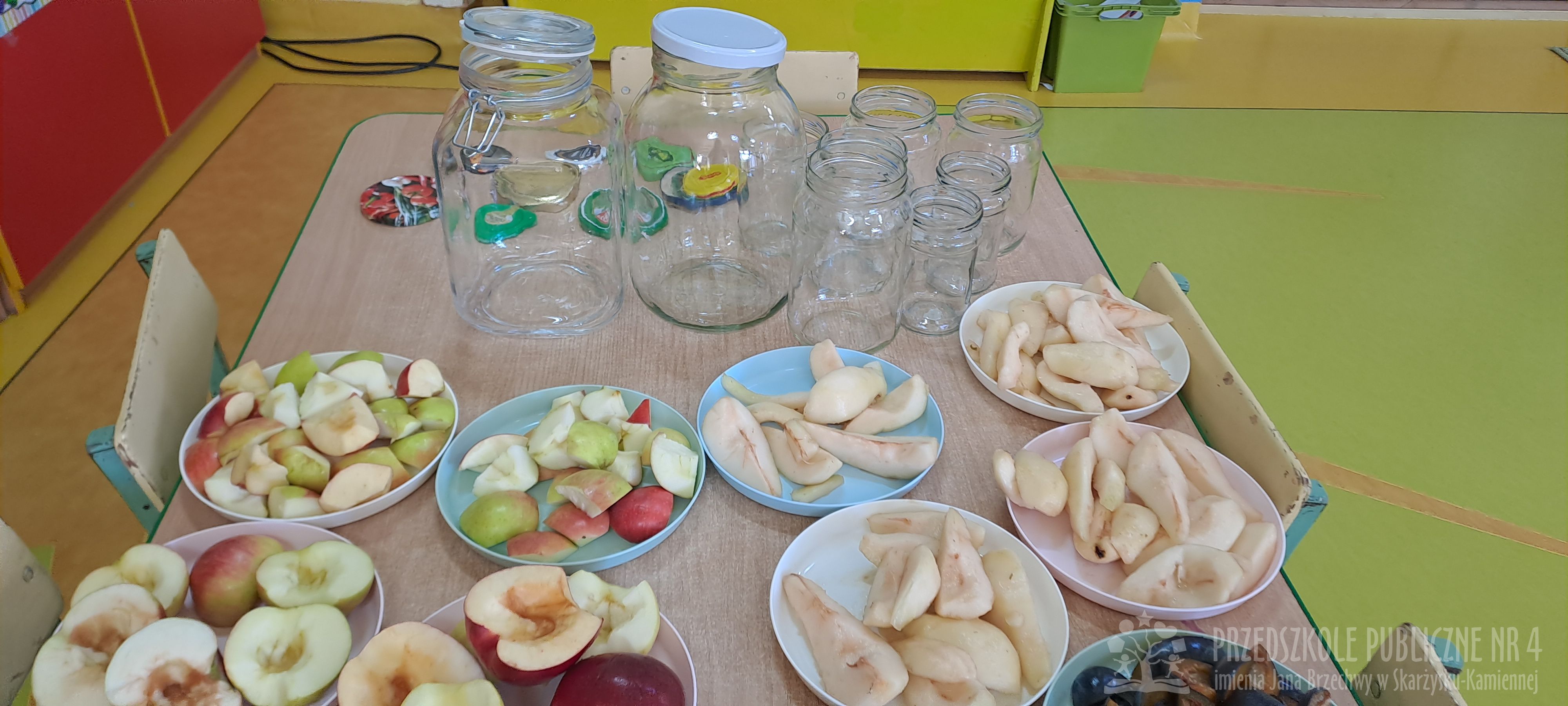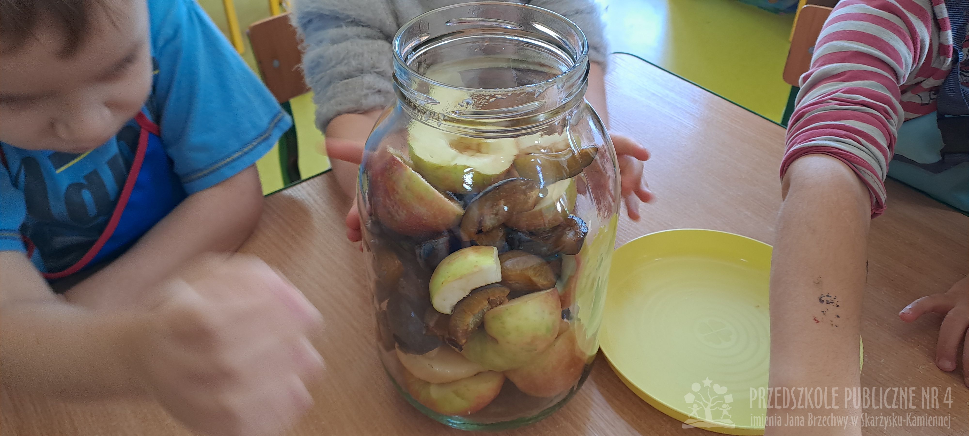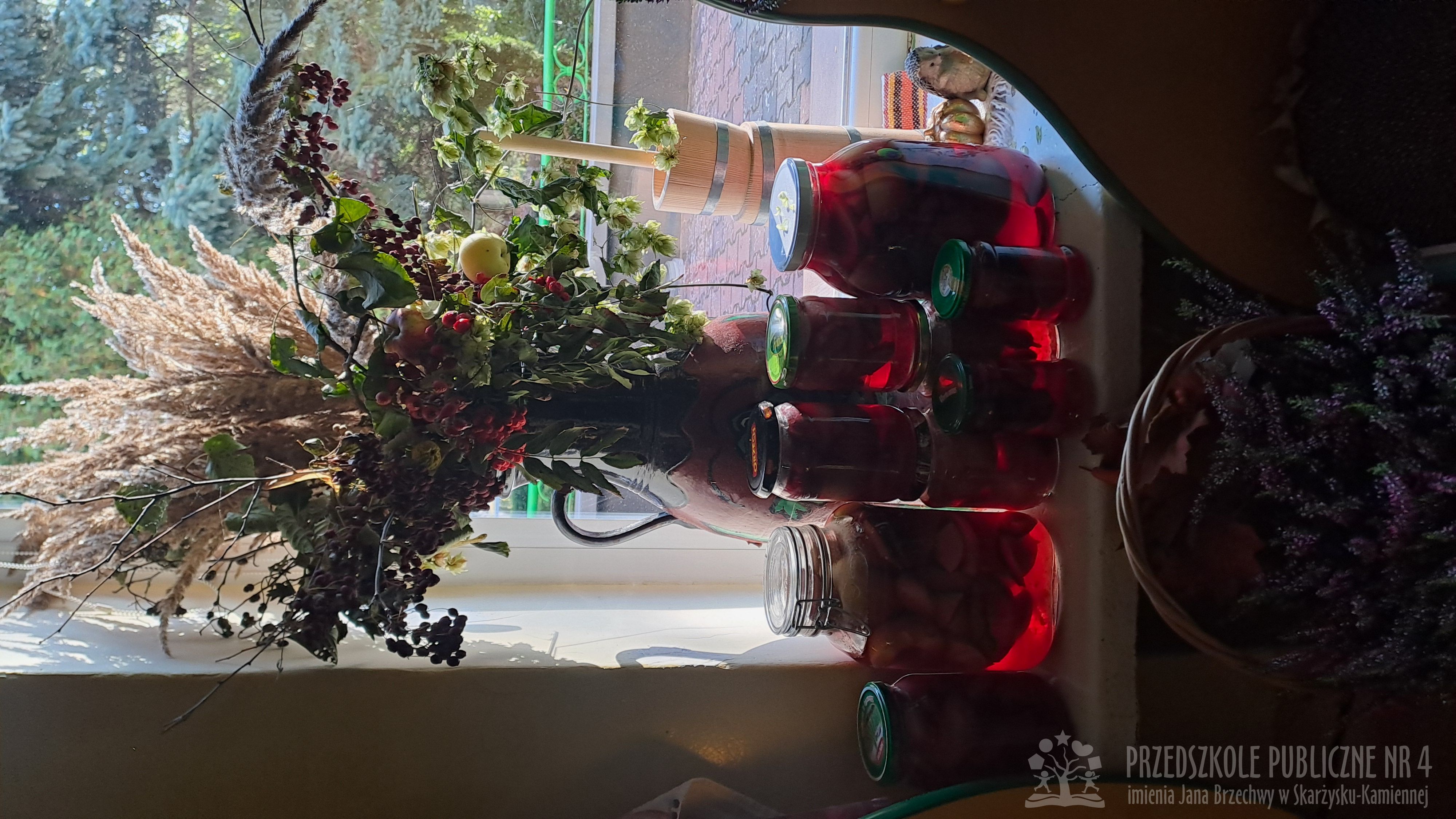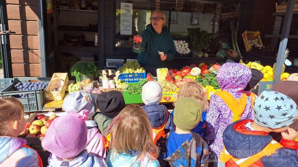 Jesień to czas zbiorów warzyw i owoców oraz przygotowywania różnych przetworów. Krasnale wybrały się do pobliskiego warzywniaka na zakupy, gdzie miały okazję poznać wybrane warzywa i owoce. Dzieci wykazały się bardzo dużą wiedzą w tym zakresie i odpowiedziały na wszystkie pytania zadawane przez panią ekspedientkę. Następnie wybrały owoce, które zakupiliśmy - jabłka, gruszki, śliwki, a nawet maliny i truskawki. Uwagę Krasnali przykuł duży słonecznik, który również postanowiliśmy kupić. Następnego dnia z zakupionych owoców wspólnie przygotowaliśmy kompoty. Podczas zajęć kulinarnych dzieci współpracowały w parach oraz małych zespołach. Wykazały się także dużą samodzielnością wkładając owoce do słoików, zasypując je cukrem i zalewając wodą. Krasnale dowiedziały się także, na czym polega pasteryzacja, której zostały poddane nasze przetwory. Takie zajęcia idealnie wpisują się w koncepcję planu daltońskiego, rozwijając samodzielność, odpowiedzialność, współpracę oraz pozwalają dzieciom na aktywne działanie.