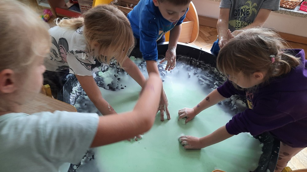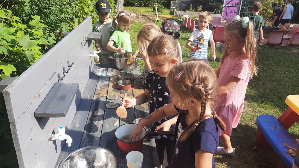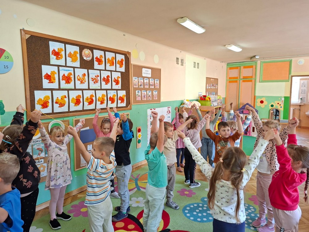 Tym razem na scenie prezentowany był wiersz Jana Brzechwy ,,Na straganie”. Gra aktorów była tak czarująca, że cała widownia śledziła akcje z zapartym tchem. Pogoda nam dopisała, dlatego większość czasu spędziliśmy w ogrodzie biorąc udział w licznych zabawach muzyczno-ruchowych. Nie zabrakło baniek mydlanych, malowania farbą po folii, zabaw z chustą animacyjną i kolorowego toru przeszkód.