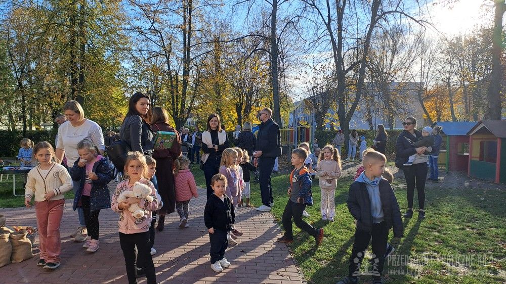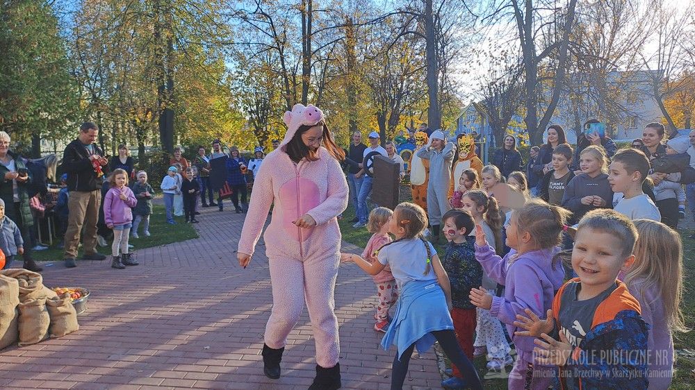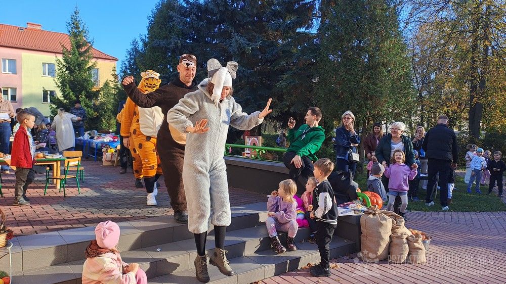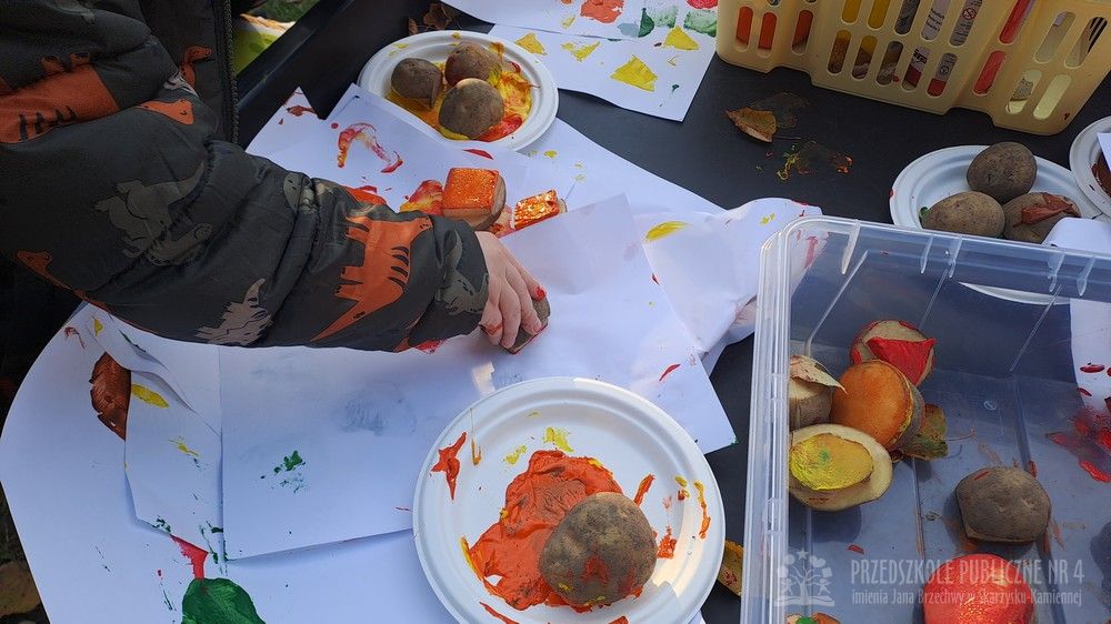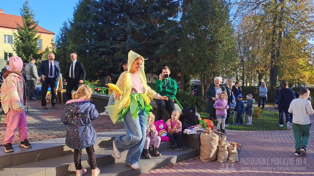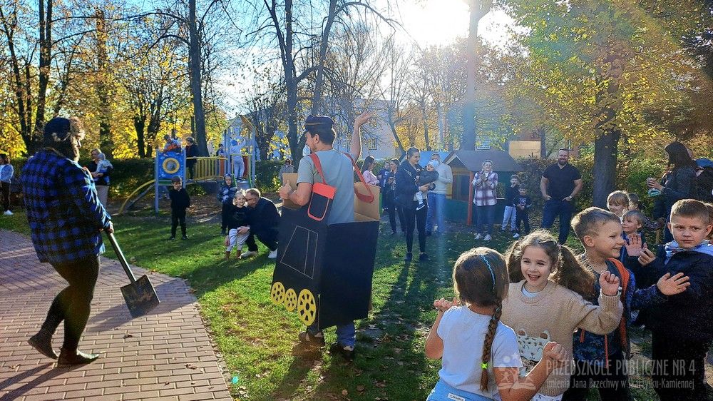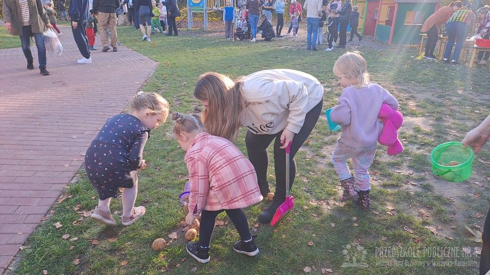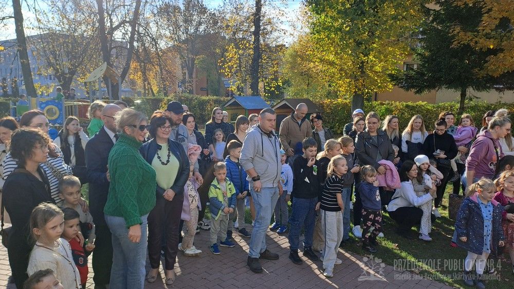 W czwartek 23 października w naszym przedszkolu zapanował radosny i jesienny nastrój, a wszystko za sprawą cudownej pogody oraz uwielbianego przez wszystkich kartofla, którego czciliśmy podczas „II Święta Pieczonego Ziemniaka”. W tym dniu w naszym ogrodzie zebrała się cała społeczność przedszkolna - Przedszkolaki wraz z Rodzicami oraz wszyscy pracownicy. Swoją obecnością zaszczycili nas także: Prezydent Miasta Pan Arkadiusz Bogucki, Naczelnik Wydziału Edukacji Pan Robert Wójcik, Dyrektor ZPO nr 4 Pani Renata Karpeta. Uroczystość rozpoczęła się od wspólnych zabaw przy jesiennej muzyce. Następnie przyszedł czas na inscenizację wiersza J.Tuwima "Lokomotywa", w której zaprezentowali się Rodzice. Kolejnym punktem programu były wesołe konkurencje, w których rywalizowali Rodzice - wykopywanie ziemniaków z wykorzystaniem różnych rekwizytów, a następnie przygotowywanie ciasta na placki ziemniaczane. Dużo emocji wywołał wyścig taczek. Nie zabrakło także twórczych zadań. Dzieci zamieniły ziemniaki w małe dzieła sztuki - wykonywały śmieszne ludziki z wykorzystaniem wykałaczek, a także odbijały stempelki tworząc z nich jesienne wzory, lepiły z gliny oraz tkały na krosnach. Radość i pomysłowość maluchów były nieograniczone! Kulminacyjnym punktem dnia była oczywiście degustacja pieczonych ziemniaków oraz kiełbasek. Wśród kulinarnych przysmaków znalazły się także chleb ze smalcem oraz różnego rodzaju ciasta. Dużym zainteresowaniem wśród przedszkolaków cieszyło się malowanie twarzy oraz pchli targ, gdzie można było nabyć m. in. gry, zabawki, puzzle, książki.„Święto Pieczonego Ziemniaka” było nie tylko okazją do wesołej zabawy i sportowej rywalizacji, ale również do integracji i wzbogacenia wiedzy na temat darów jesieni. Wszystkie dzieci bawiły się wyśmienicie, a uśmiechy nie schodziły z ich twarzy! Już nie możemy się doczekać przyszłorocznego, równie udanego, ziemniaczanego świętowania!