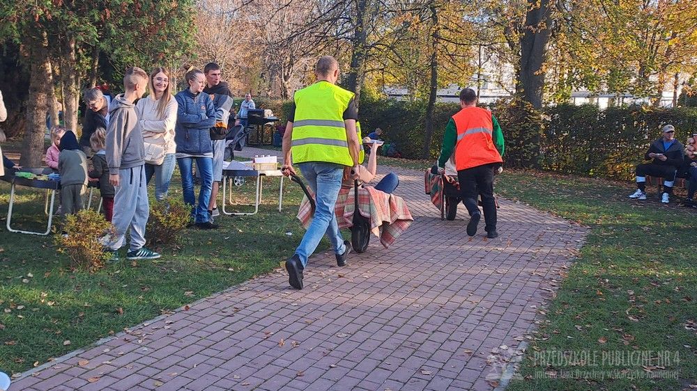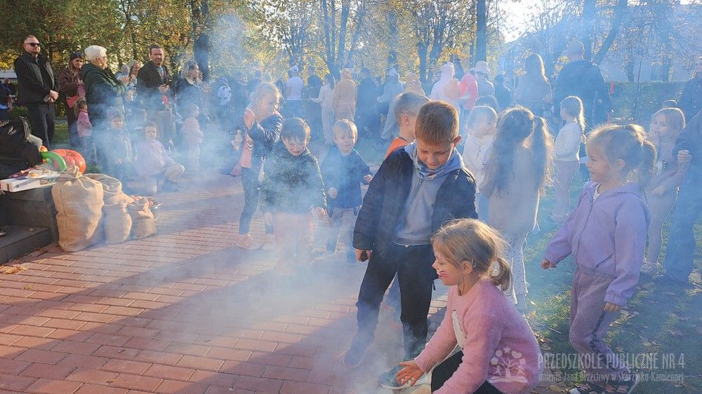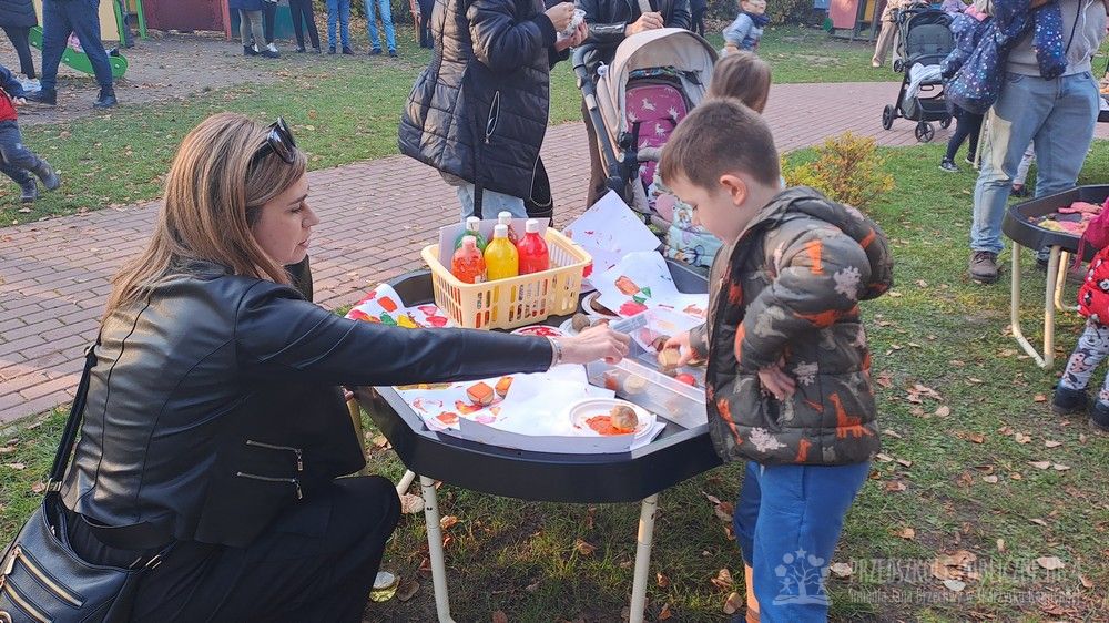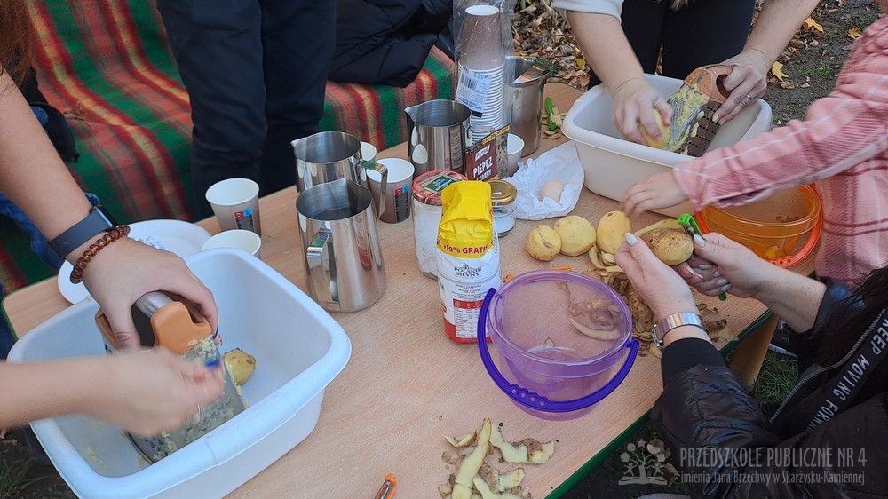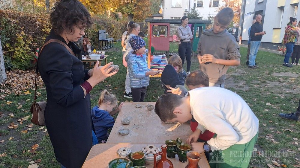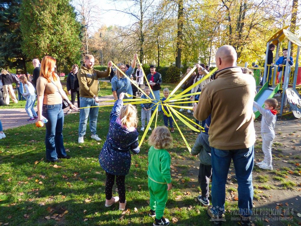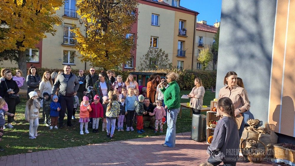 W czwartek 23 października w naszym przedszkolu zapanował radosny i jesienny nastrój, a wszystko za sprawą cudownej pogody oraz uwielbianego przez wszystkich kartofla, którego czciliśmy podczas „II Święta Pieczonego Ziemniaka”. W tym dniu w naszym ogrodzie zebrała się cała społeczność przedszkolna - Przedszkolaki wraz z Rodzicami oraz wszyscy pracownicy. Swoją obecnością zaszczycili nas także: Prezydent Miasta Pan Arkadiusz Bogucki, Naczelnik Wydziału Edukacji Pan Robert Wójcik, Dyrektor ZPO nr 4 Pani Renata Karpeta. Uroczystość rozpoczęła się od wspólnych zabaw przy jesiennej muzyce. Następnie przyszedł czas na inscenizację wiersza J.Tuwima "Lokomotywa", w której zaprezentowali się Rodzice. Kolejnym punktem programu były wesołe konkurencje, w których rywalizowali Rodzice - wykopywanie ziemniaków z wykorzystaniem różnych rekwizytów, a następnie przygotowywanie ciasta na placki ziemniaczane. Dużo emocji wywołał wyścig taczek. Nie zabrakło także twórczych zadań. Dzieci zamieniły ziemniaki w małe dzieła sztuki - wykonywały śmieszne ludziki z wykorzystaniem wykałaczek, a także odbijały stempelki tworząc z nich jesienne wzory, lepiły z gliny oraz tkały na krosnach. Radość i pomysłowość maluchów były nieograniczone! Kulminacyjnym punktem dnia była oczywiście degustacja pieczonych ziemniaków oraz kiełbasek. Wśród kulinarnych przysmaków znalazły się także chleb ze smalcem oraz różnego rodzaju ciasta. Dużym zainteresowaniem wśród przedszkolaków cieszyło się malowanie twarzy oraz pchli targ, gdzie można było nabyć m. in. gry, zabawki, puzzle, książki.„Święto Pieczonego Ziemniaka” było nie tylko okazją do wesołej zabawy i sportowej rywalizacji, ale również do integracji i wzbogacenia wiedzy na temat darów jesieni. Wszystkie dzieci bawiły się wyśmienicie, a uśmiechy nie schodziły z ich twarzy! Już nie możemy się doczekać przyszłorocznego, równie udanego, ziemniaczanego świętowania!