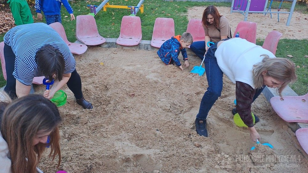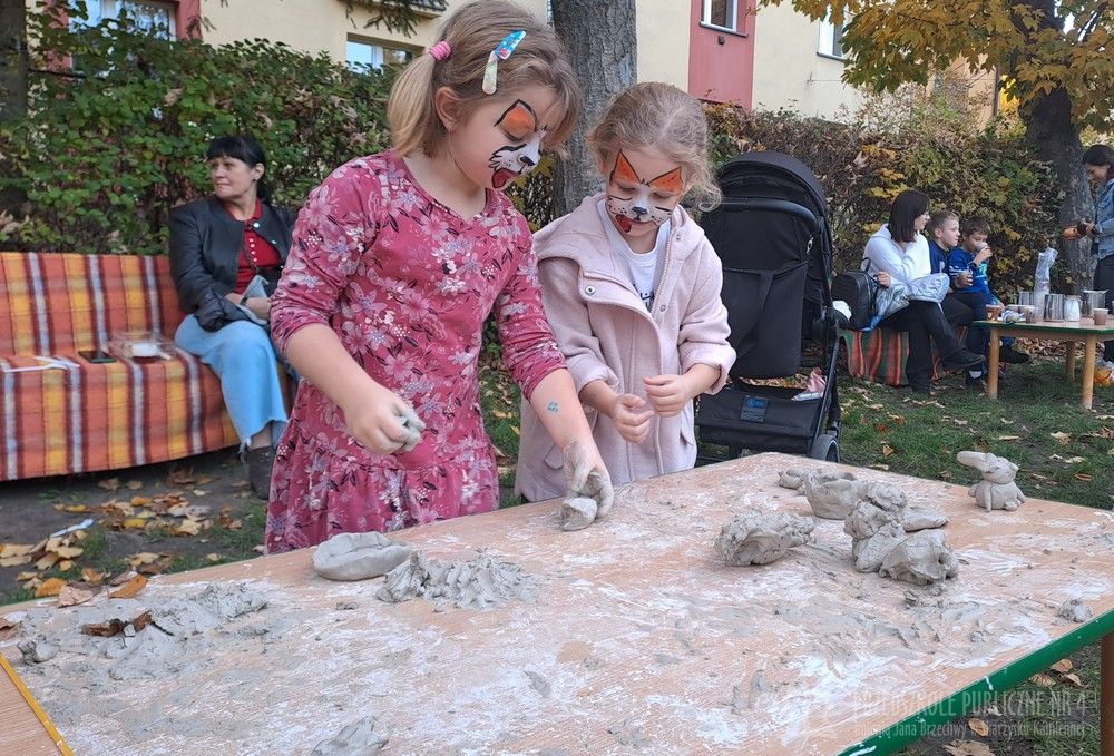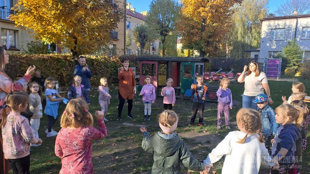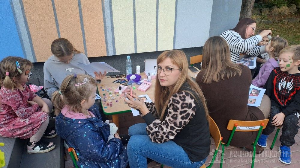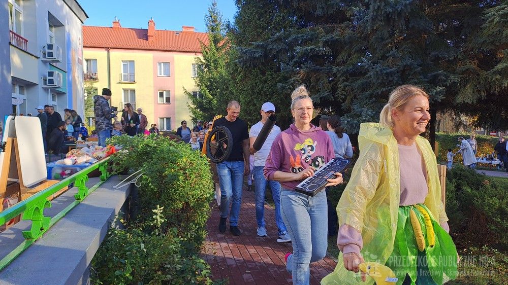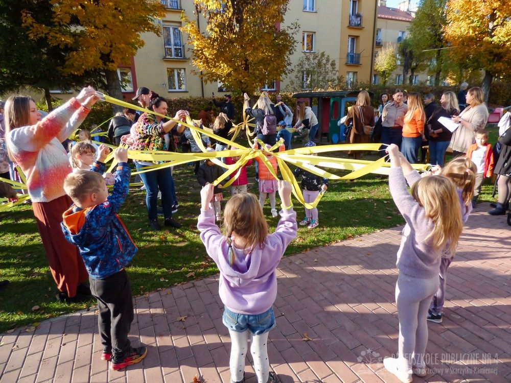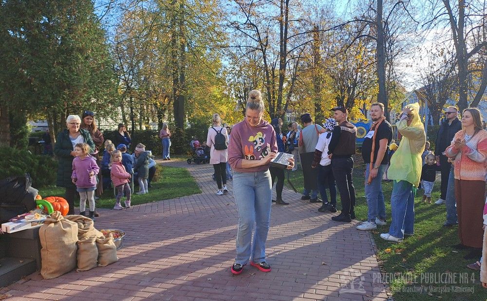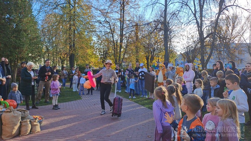 W czwartek 23 października w naszym przedszkolu zapanował radosny i jesienny nastrój, a wszystko za sprawą cudownej pogody oraz uwielbianego przez wszystkich kartofla, którego czciliśmy podczas „II Święta Pieczonego Ziemniaka”. W tym dniu w naszym ogrodzie zebrała się cała społeczność przedszkolna - Przedszkolaki wraz z Rodzicami oraz wszyscy pracownicy. Swoją obecnością zaszczycili nas także: Prezydent Miasta Pan Arkadiusz Bogucki, Naczelnik Wydziału Edukacji Pan Robert Wójcik, Dyrektor ZPO nr 4 Pani Renata Karpeta. Uroczystość rozpoczęła się od wspólnych zabaw przy jesiennej muzyce. Następnie przyszedł czas na inscenizację wiersza J.Tuwima "Lokomotywa", w której zaprezentowali się Rodzice. Kolejnym punktem programu były wesołe konkurencje, w których rywalizowali Rodzice - wykopywanie ziemniaków z wykorzystaniem różnych rekwizytów, a następnie przygotowywanie ciasta na placki ziemniaczane. Dużo emocji wywołał wyścig taczek. Nie zabrakło także twórczych zadań. Dzieci zamieniły ziemniaki w małe dzieła sztuki - wykonywały śmieszne ludziki z wykorzystaniem wykałaczek, a także odbijały stempelki tworząc z nich jesienne wzory, lepiły z gliny oraz tkały na krosnach. Radość i pomysłowość maluchów były nieograniczone! Kulminacyjnym punktem dnia była oczywiście degustacja pieczonych ziemniaków oraz kiełbasek. Wśród kulinarnych przysmaków znalazły się także chleb ze smalcem oraz różnego rodzaju ciasta. Dużym zainteresowaniem wśród przedszkolaków cieszyło się malowanie twarzy oraz pchli targ, gdzie można było nabyć m. in. gry, zabawki, puzzle, książki.„Święto Pieczonego Ziemniaka” było nie tylko okazją do wesołej zabawy i sportowej rywalizacji, ale również do integracji i wzbogacenia wiedzy na temat darów jesieni. Wszystkie dzieci bawiły się wyśmienicie, a uśmiechy nie schodziły z ich twarzy! Już nie możemy się doczekać przyszłorocznego, równie udanego, ziemniaczanego świętowania!