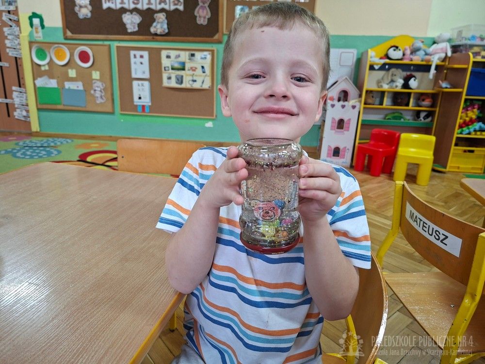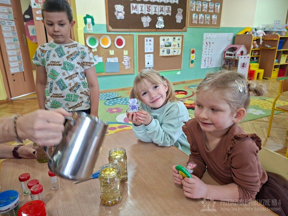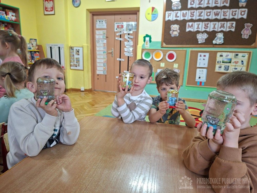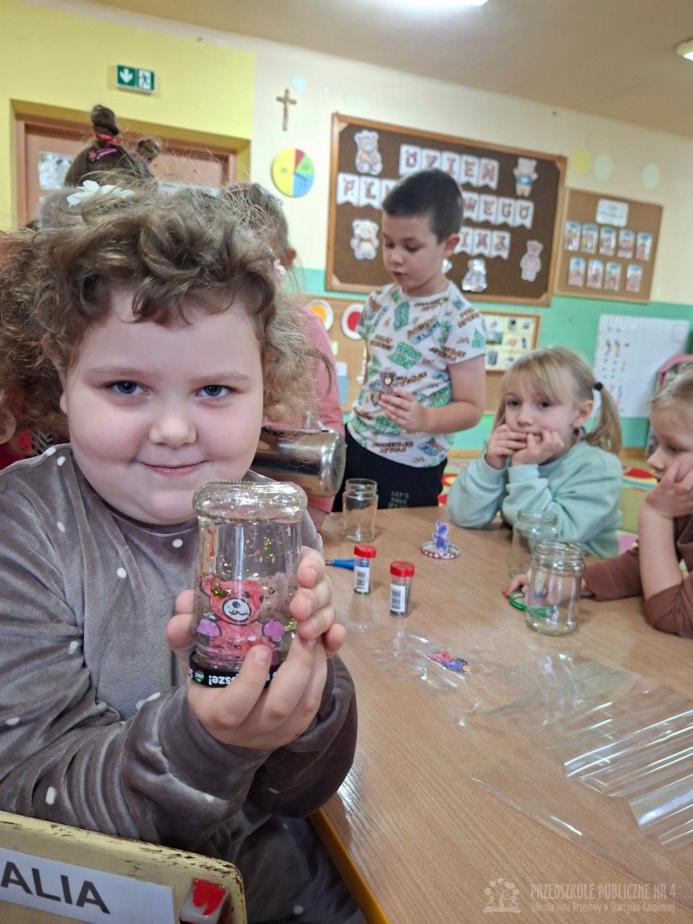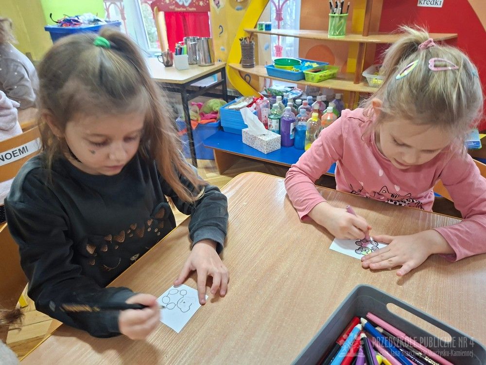 Słoneczka w tym dniu bawiły się z misiami, tańczyły, śpiewały i opowiadały o swoich pluszakach, Na koniec każde dziecko wykonało brokatową kulę z rysunkiem misia w środku. Był to dzień pełen zabaw i dobrego humoru.