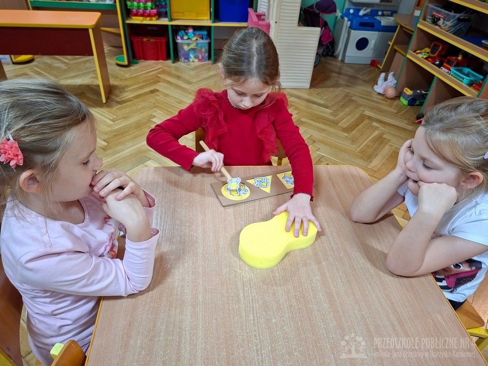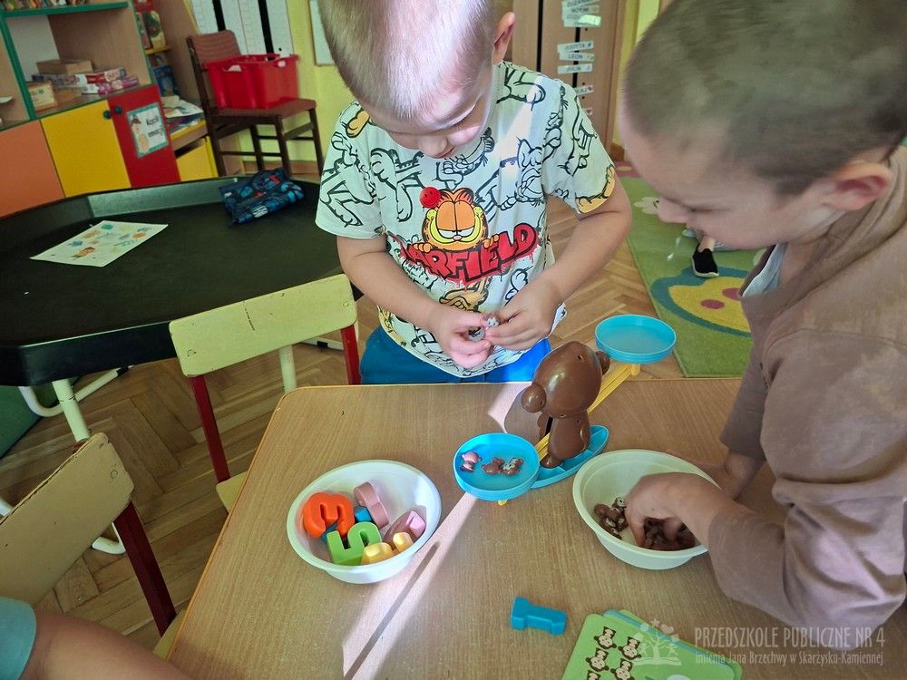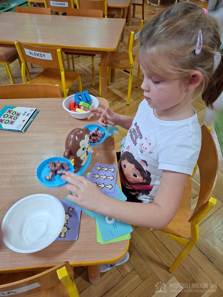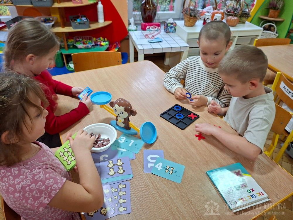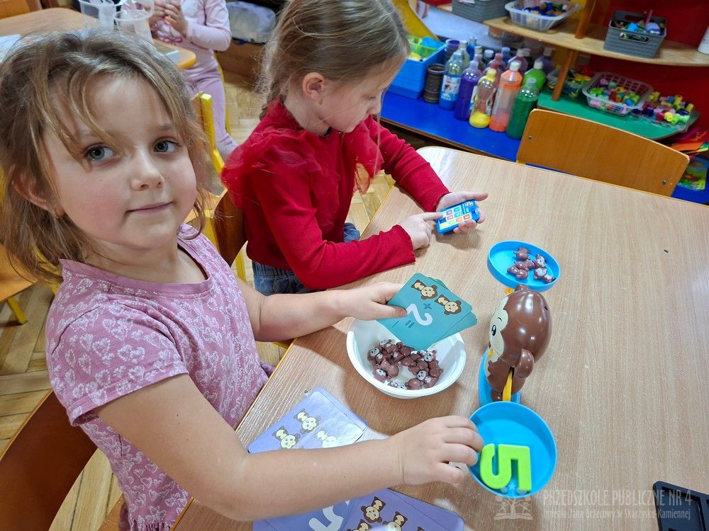Słoneczka w wolnym czasie lubią zabawy matematyczne, do któych wykorzystują zabawki z kącika matematycznego. Także podczas zajęć chętnie liczą, klsyfikują a także rozwiązują proste zadania tekstowe posługując się liczmanami.
