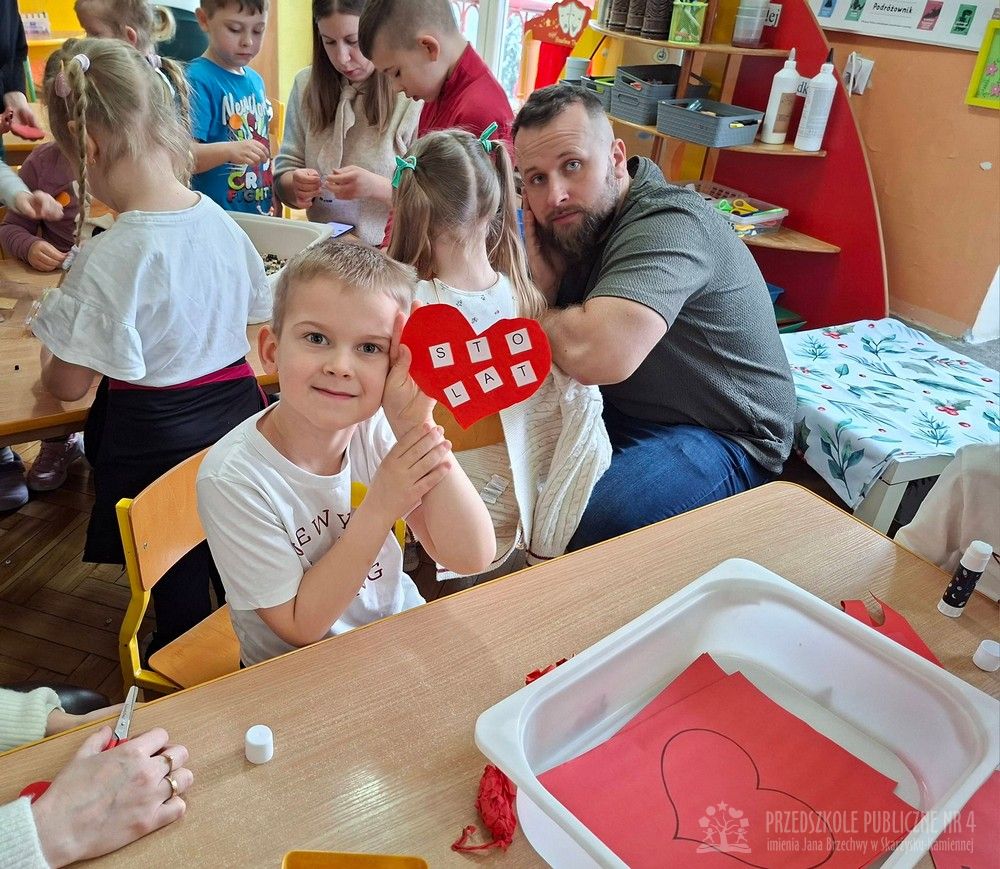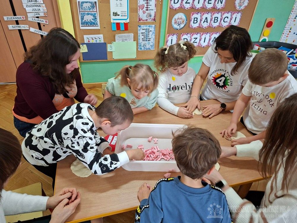 W grupie ,,Słoneczek" miały miejsce zajęcia otwarte dla rodziców. Dotyczyły one zbliżającego się święta babci i dziadka. Podczas zajęć przedszkolaki dowiedziały się w jaki sposób można uczcić ten radosny czas. Dzieci wykonując różnego rodzaju cwiczenia wykazały się także umiejętnościami językowymi i znajomością liter. Na koniec wykonały upominki dla swoich babć i dziadków.