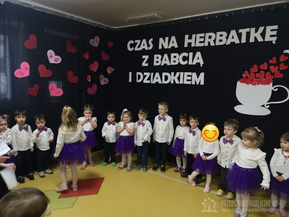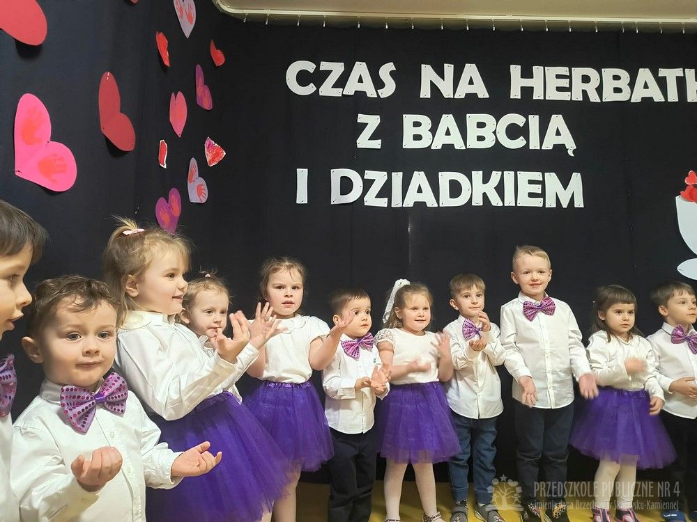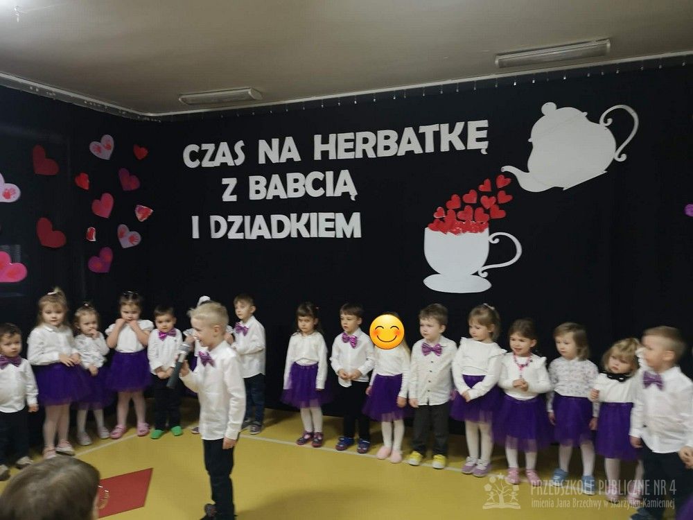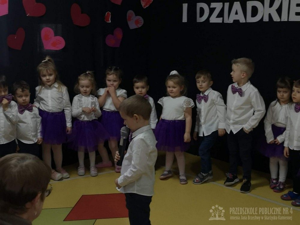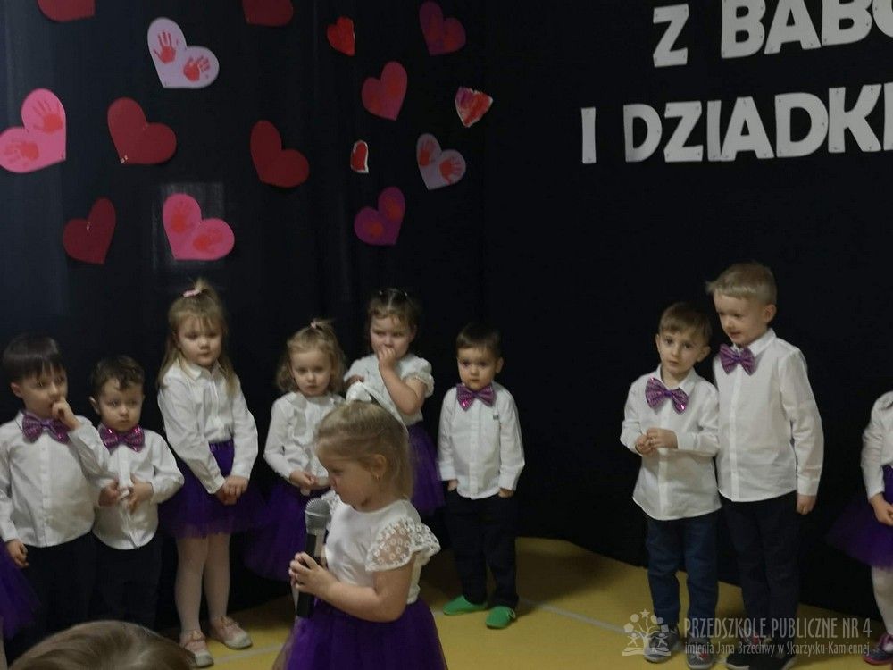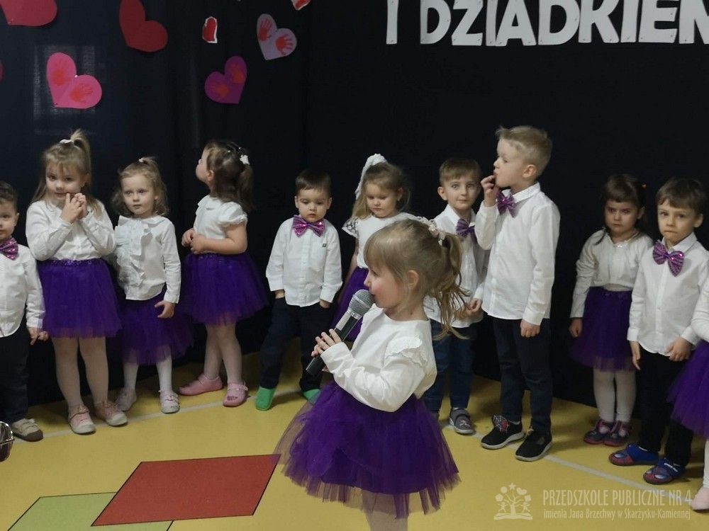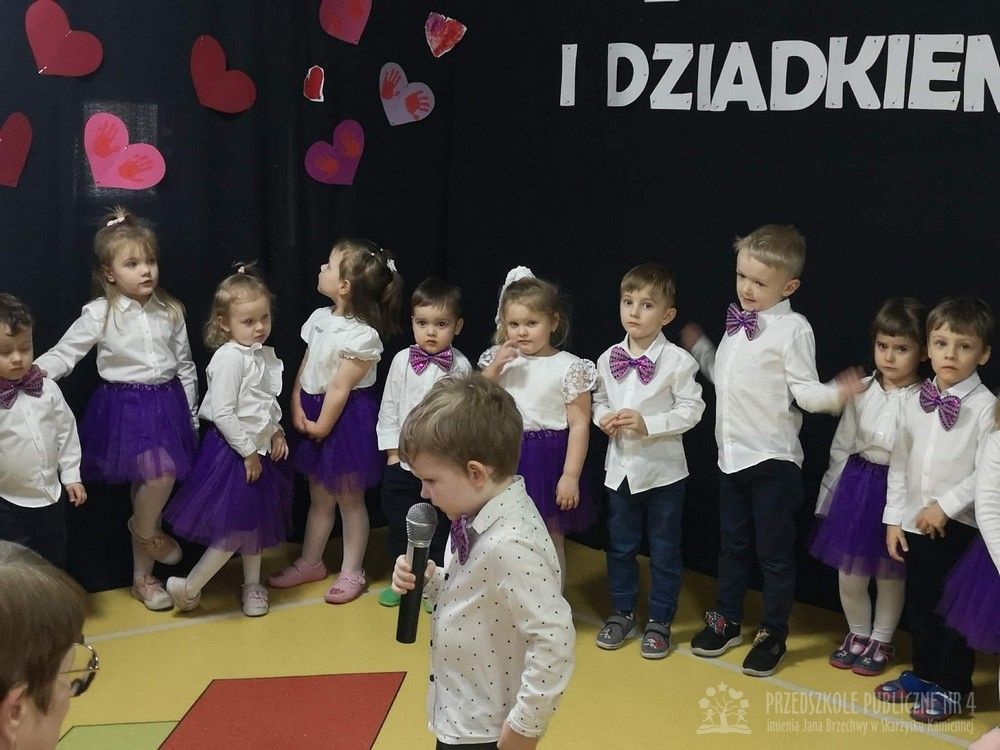 W dniu uroczystości z okazji Dnia Babci i Dziadka najmłodsze dzieci z grupy „Smerfy” zaprezentowały przygotowany występ artystyczny. Mali artyści z dużym zaangażowaniem i radością recytowali wiersze oraz śpiewali piosenki dedykowane Babciom i Dziadkom, wywołując wiele uśmiechów i wzruszeń wśród zaproszonych gości.