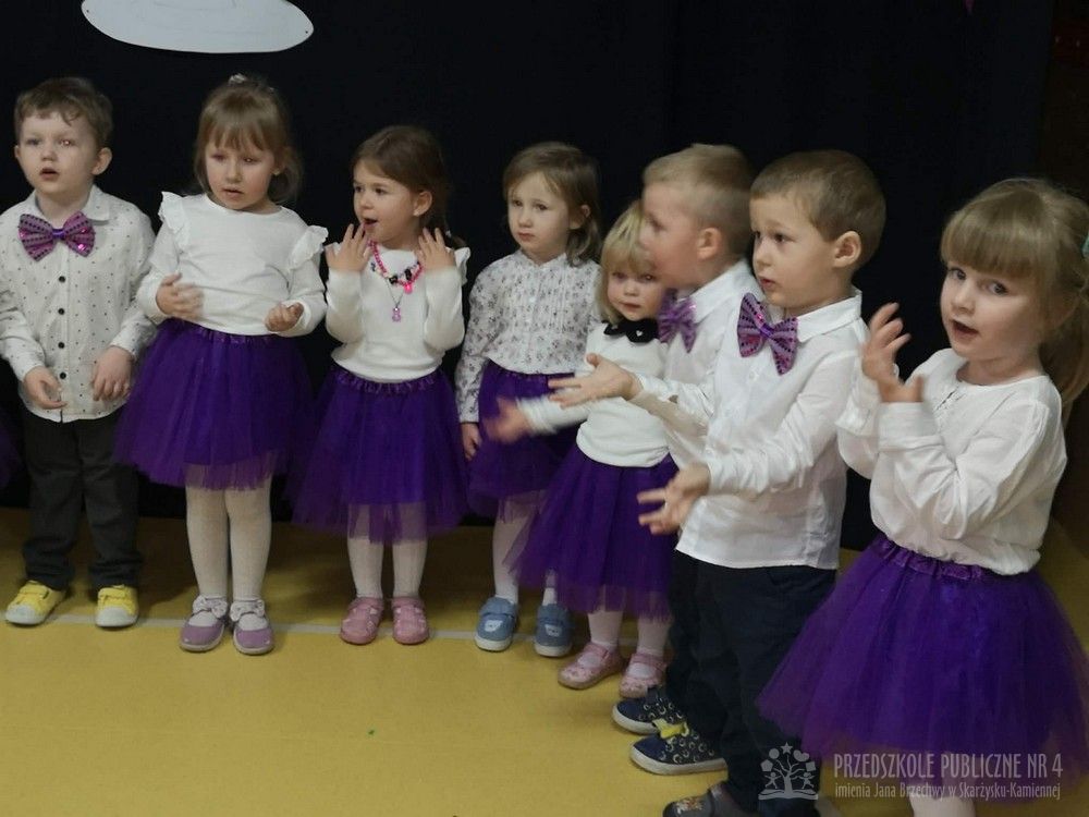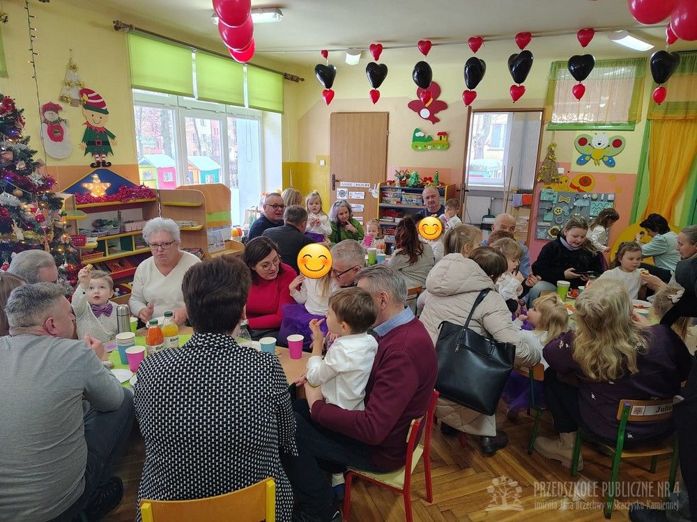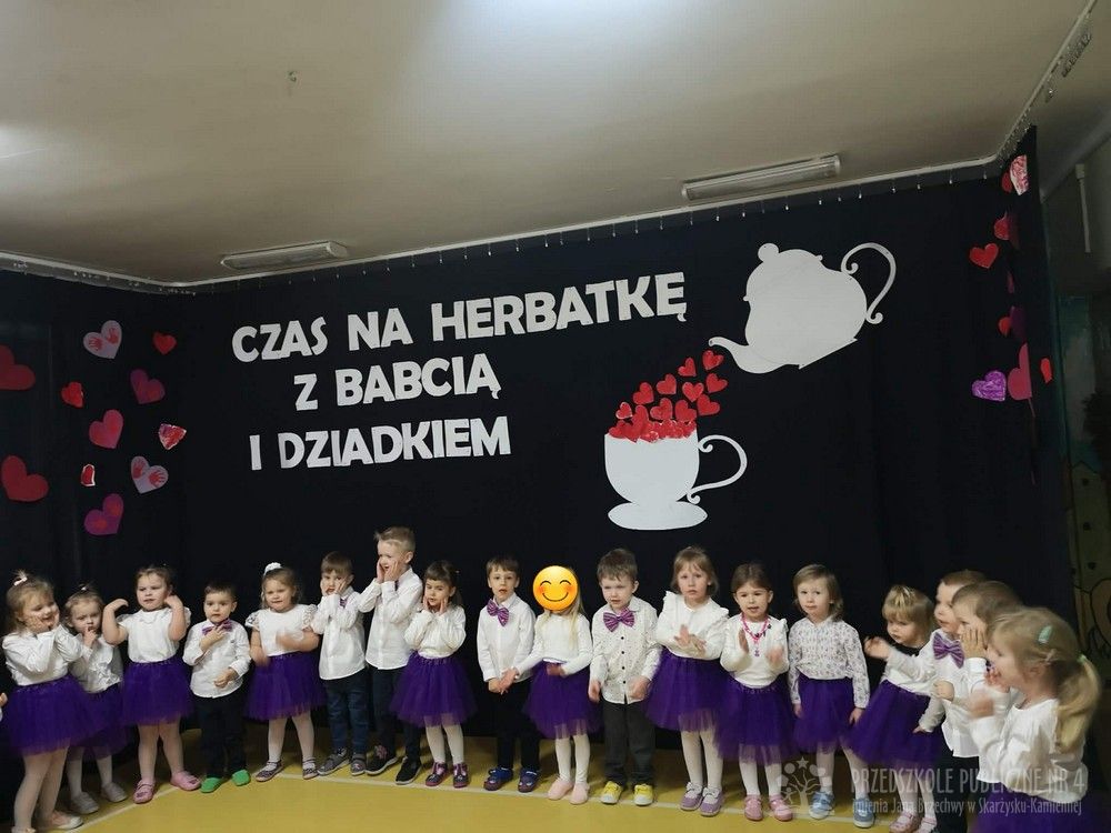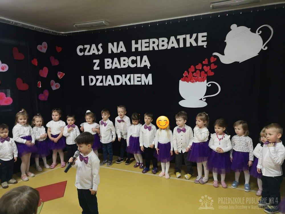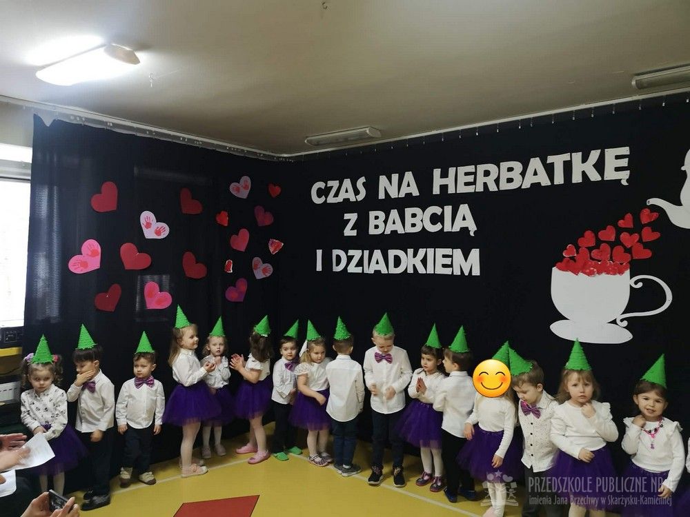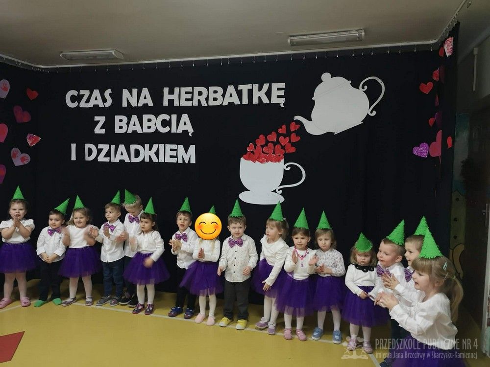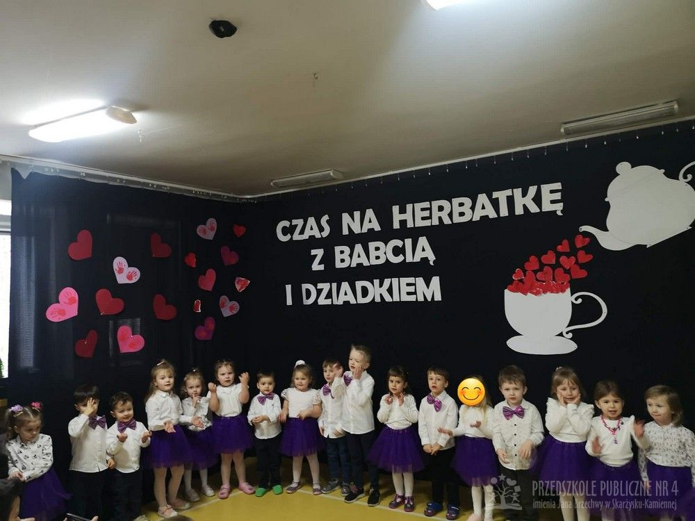 W dniu uroczystości z okazji Dnia Babci i Dziadka najmłodsze dzieci z grupy „Smerfy” zaprezentowały przygotowany występ artystyczny. Mali artyści z dużym zaangażowaniem i radością recytowali wiersze oraz śpiewali piosenki dedykowane Babciom i Dziadkom, wywołując wiele uśmiechów i wzruszeń wśród zaproszonych gości.