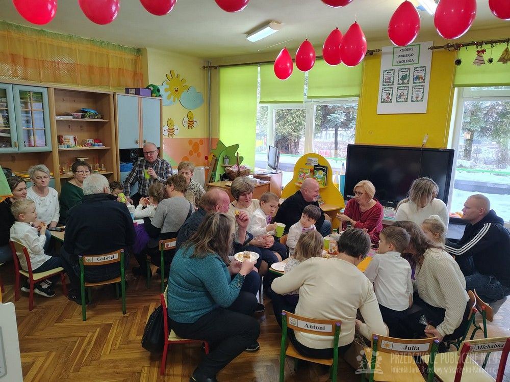 Po występie Babcie i Dziadkowie zostali ugoszczeni słodkim poczęstunkiem przygotowanym przez rodziców naszych maluszków.