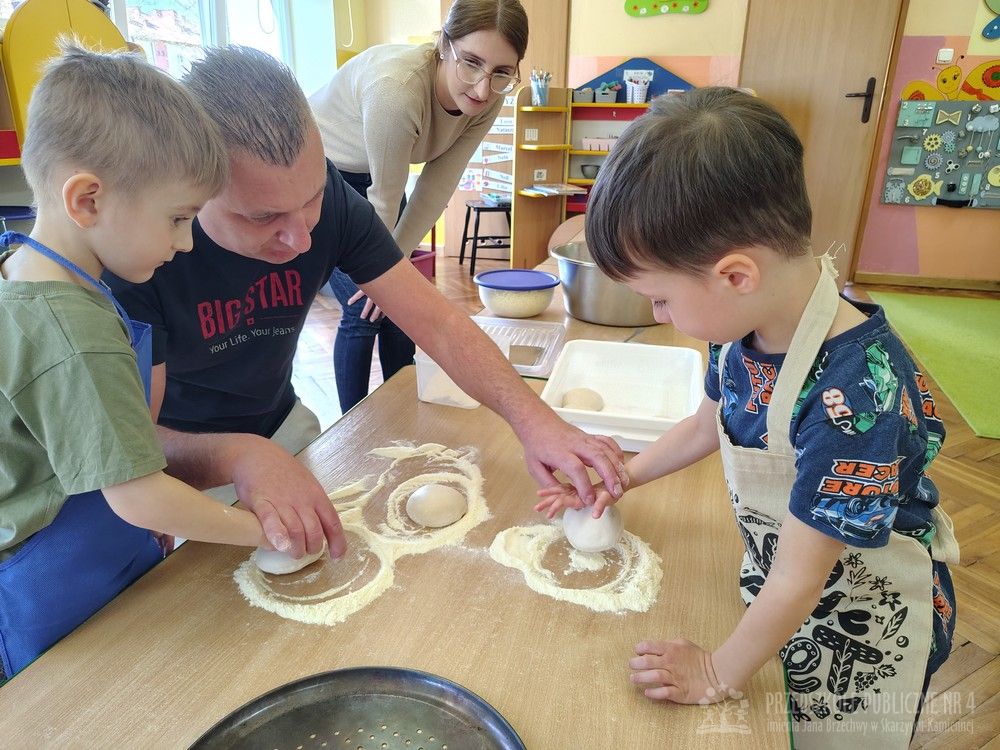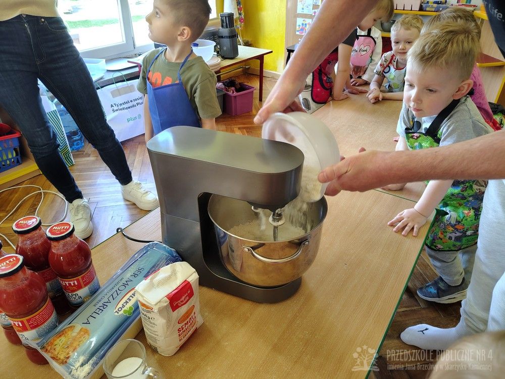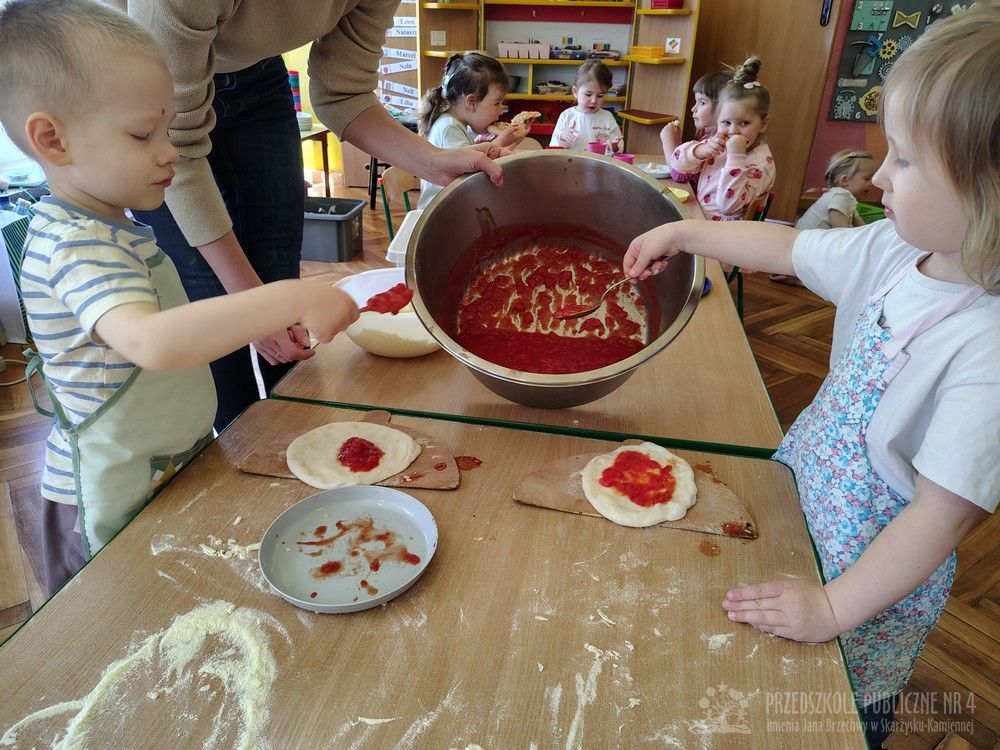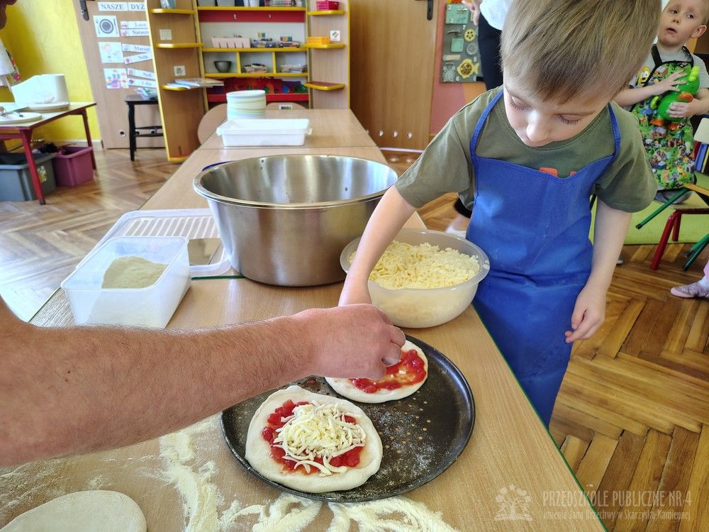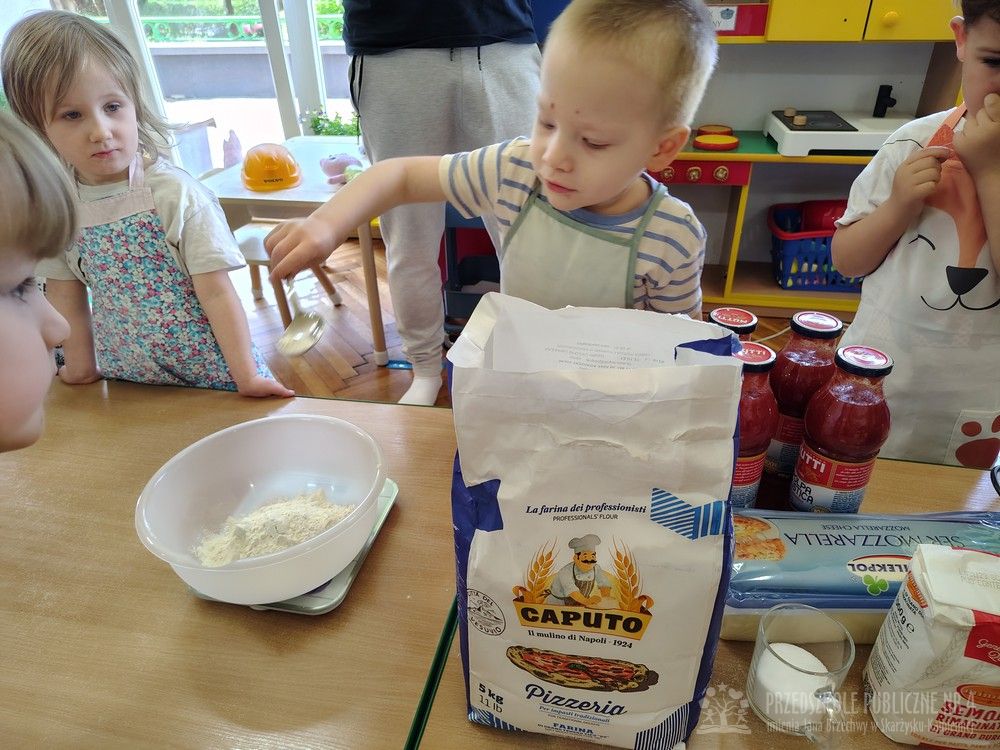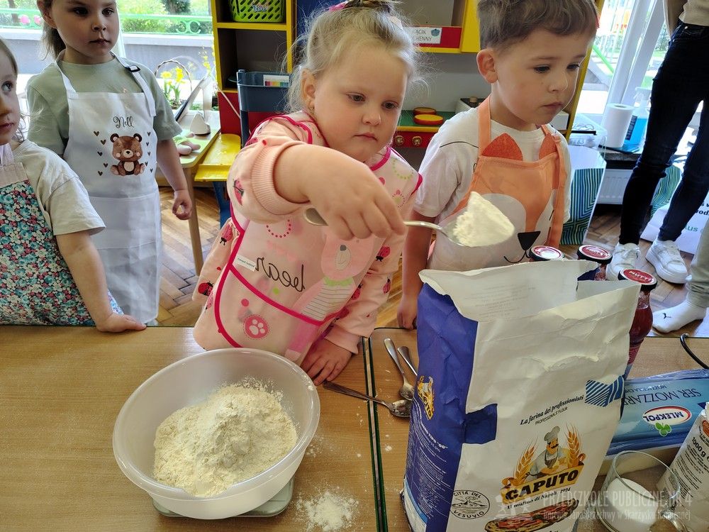 W naszej grupie 3-latków odbyły się wyjątkowe warsztaty kulinarne, podczas których dzieci miały okazję przygotować włoską pizzę. Zajęcia poprowadzili rodzice jednego z przedszkolaków, którzy w ciekawy i przystępny sposób opowiedzieli o składnikach oraz kolejnych etapach przygotowania tego popularnego dania.
