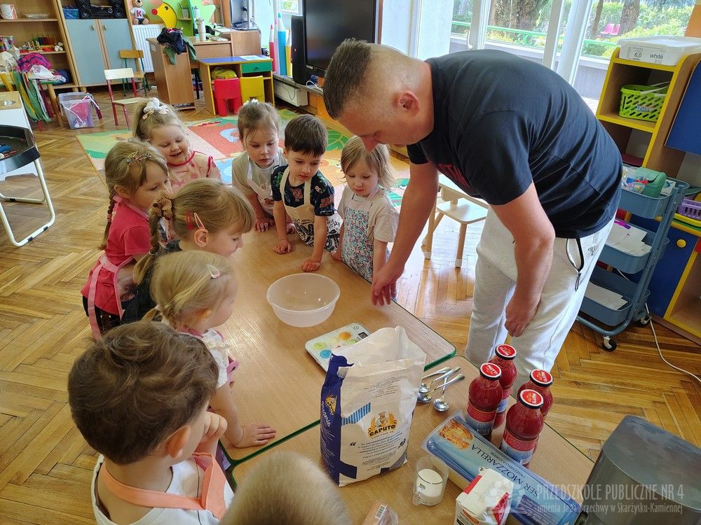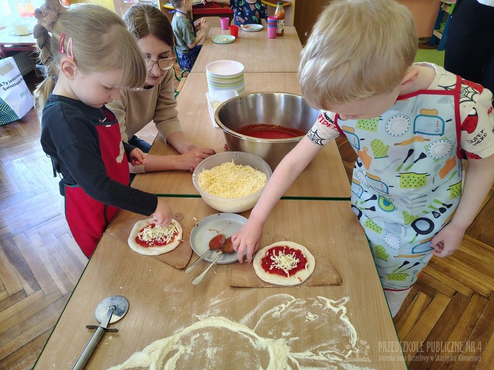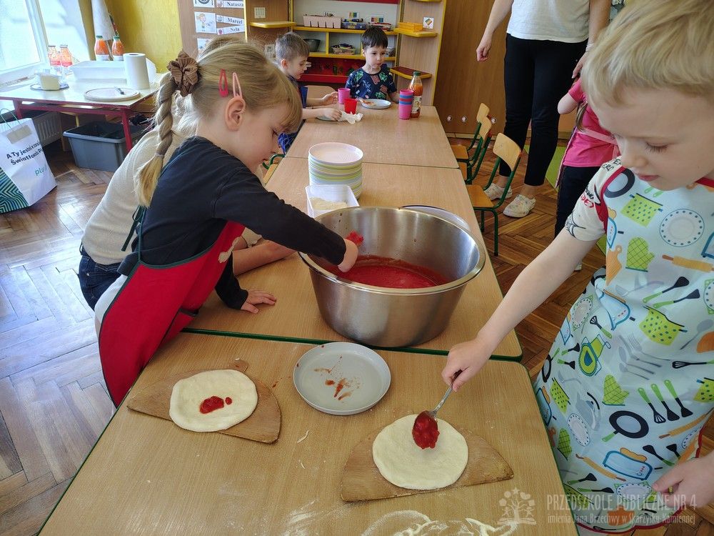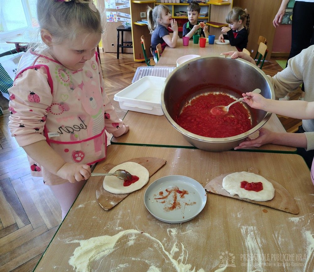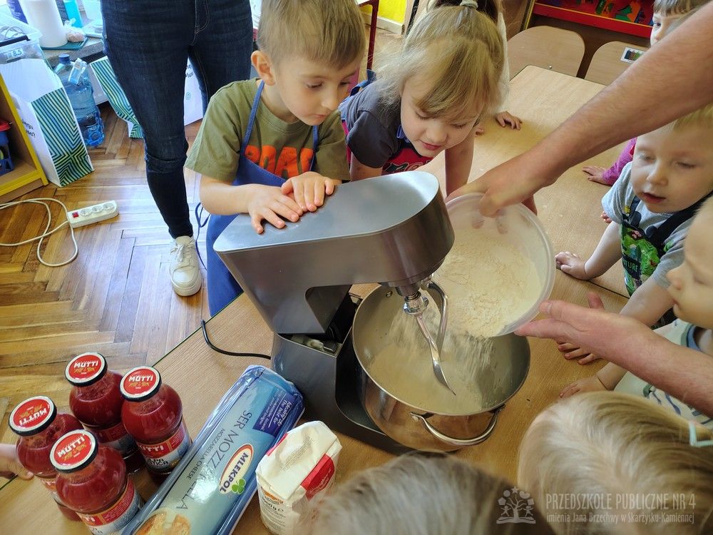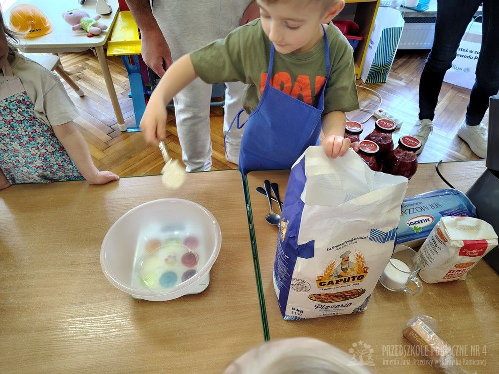 W naszej grupie 3-latków odbyły się wyjątkowe warsztaty kulinarne, podczas których dzieci miały okazję przygotować włoską pizzę. Zajęcia poprowadzili rodzice jednego z przedszkolaków, którzy w ciekawy i przystępny sposób opowiedzieli o składnikach oraz kolejnych etapach przygotowania tego popularnego dania.