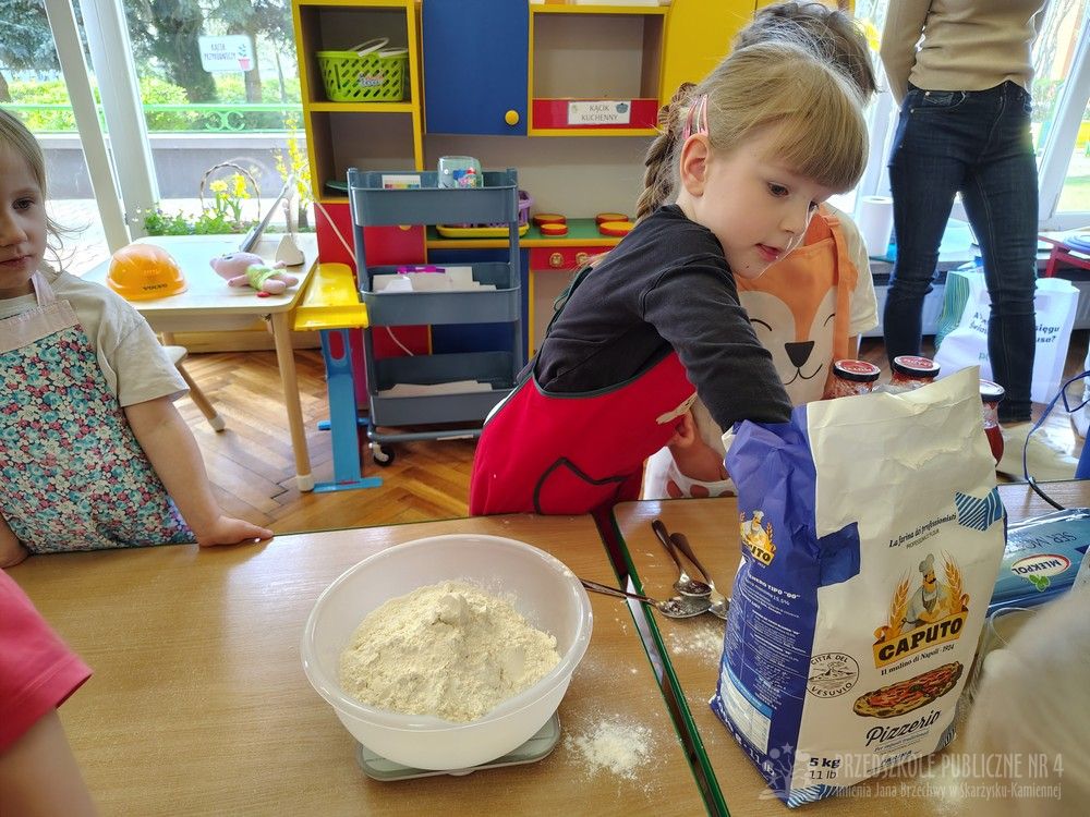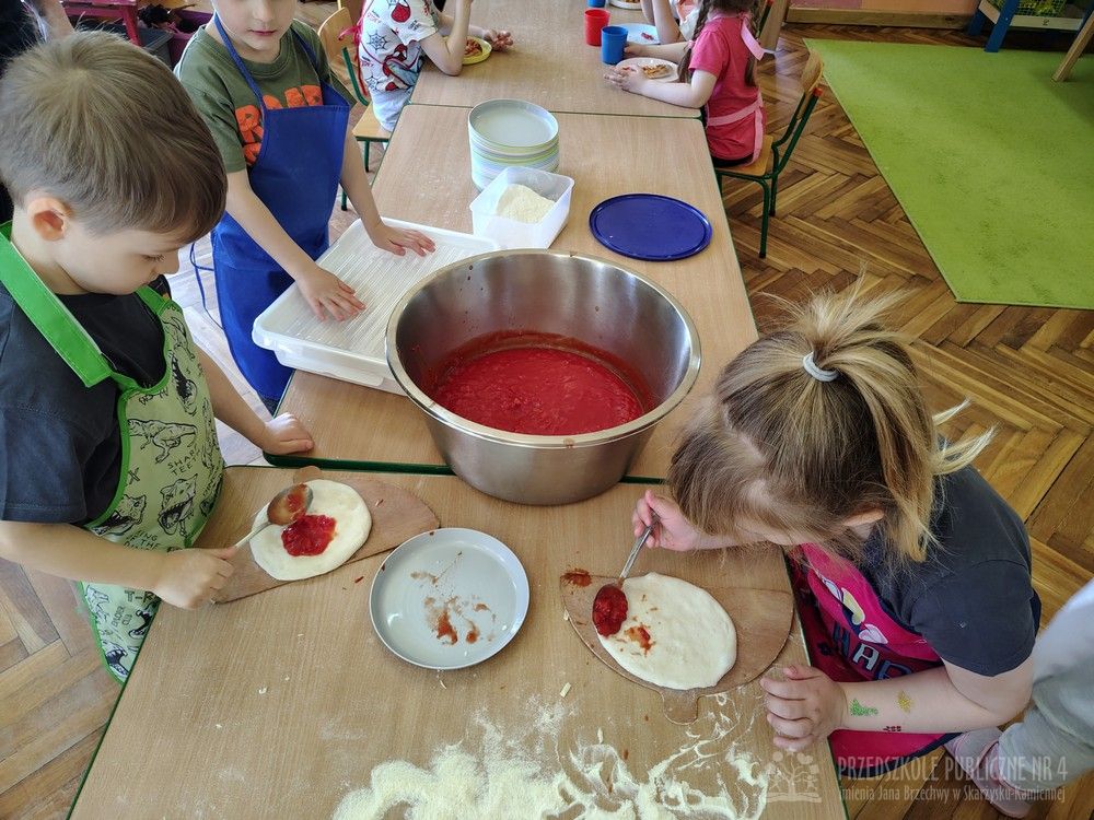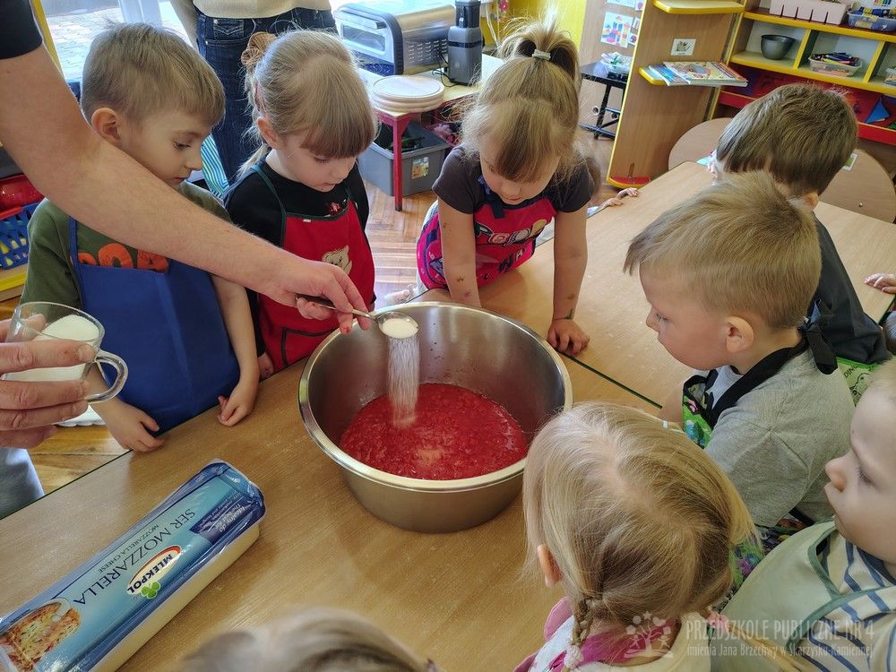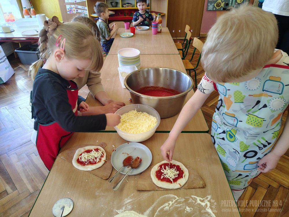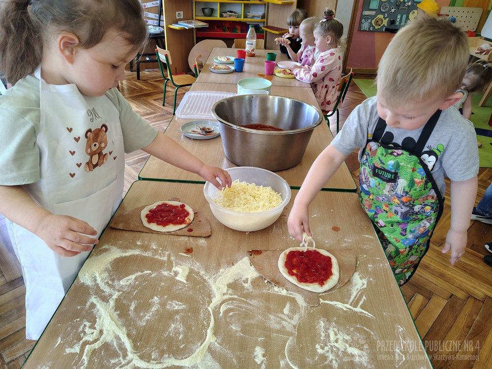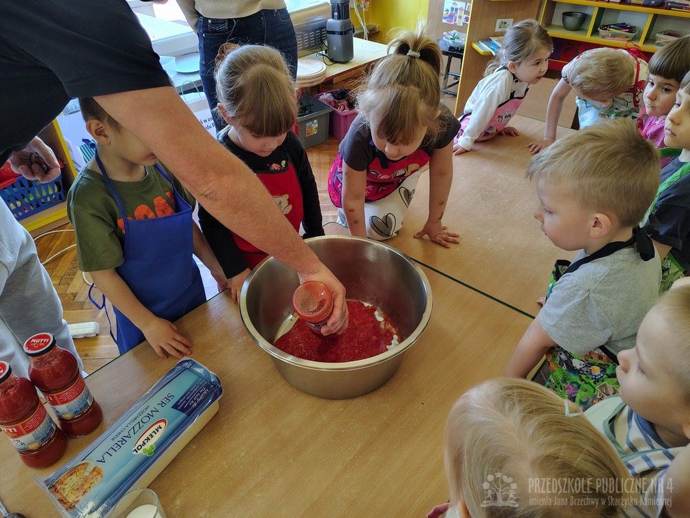 W naszej grupie 3-latków odbyły się wyjątkowe warsztaty kulinarne, podczas których dzieci miały okazję przygotować włoską pizzę. Zajęcia poprowadzili rodzice jednego z przedszkolaków, którzy w ciekawy i przystępny sposób opowiedzieli o składnikach oraz kolejnych etapach przygotowania tego popularnego dania.