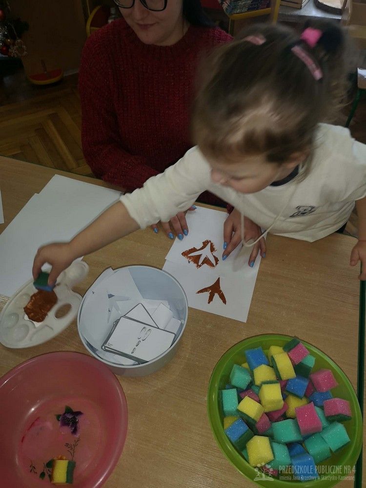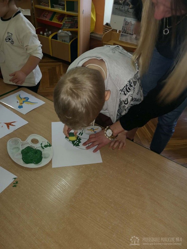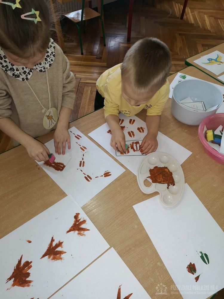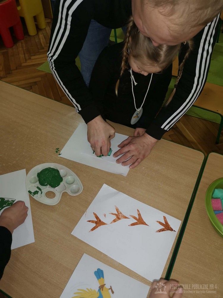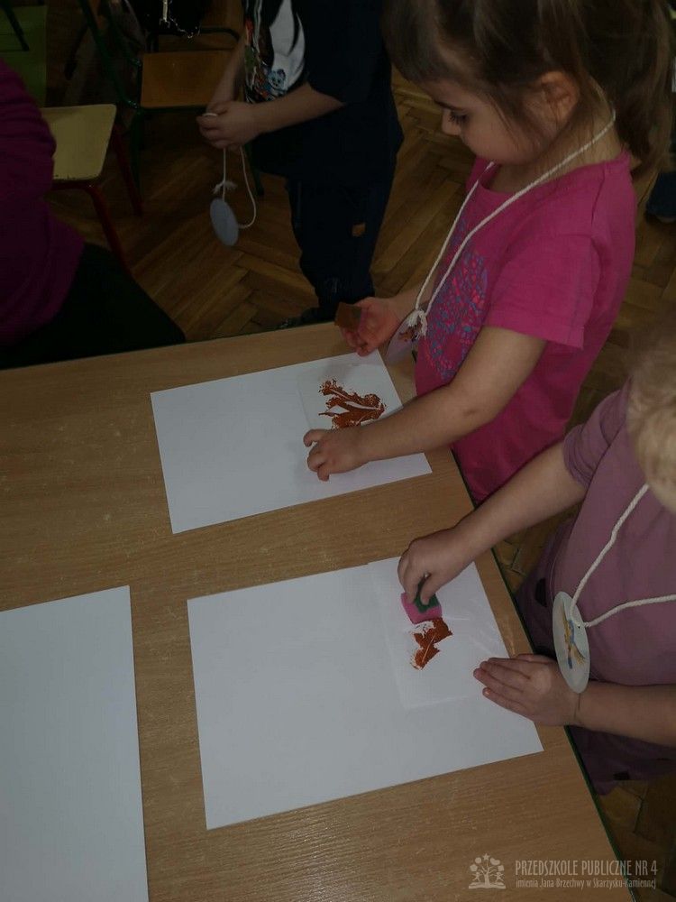W części praktycznej dzieci wykonywały prace plastyczne, odciskając „tropy” zwierząt w przygotowanej masie lub farbami na kartkach. Zajęcia przebiegały w miłej i radosnej atmosferze, a dzieci wykazały się dużym zaangażowaniem i aktywnością.