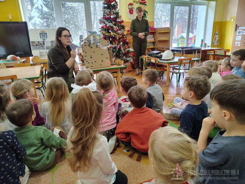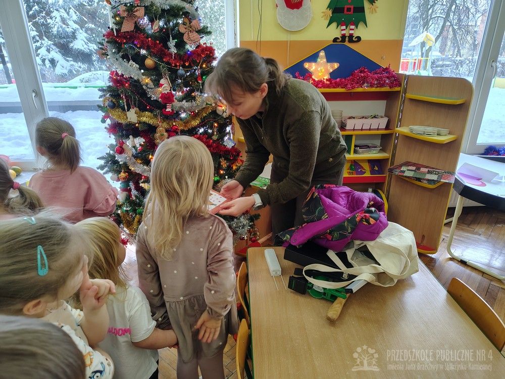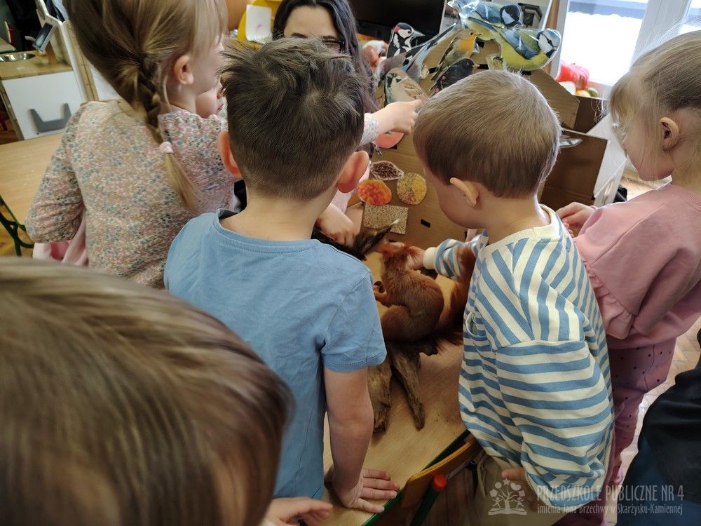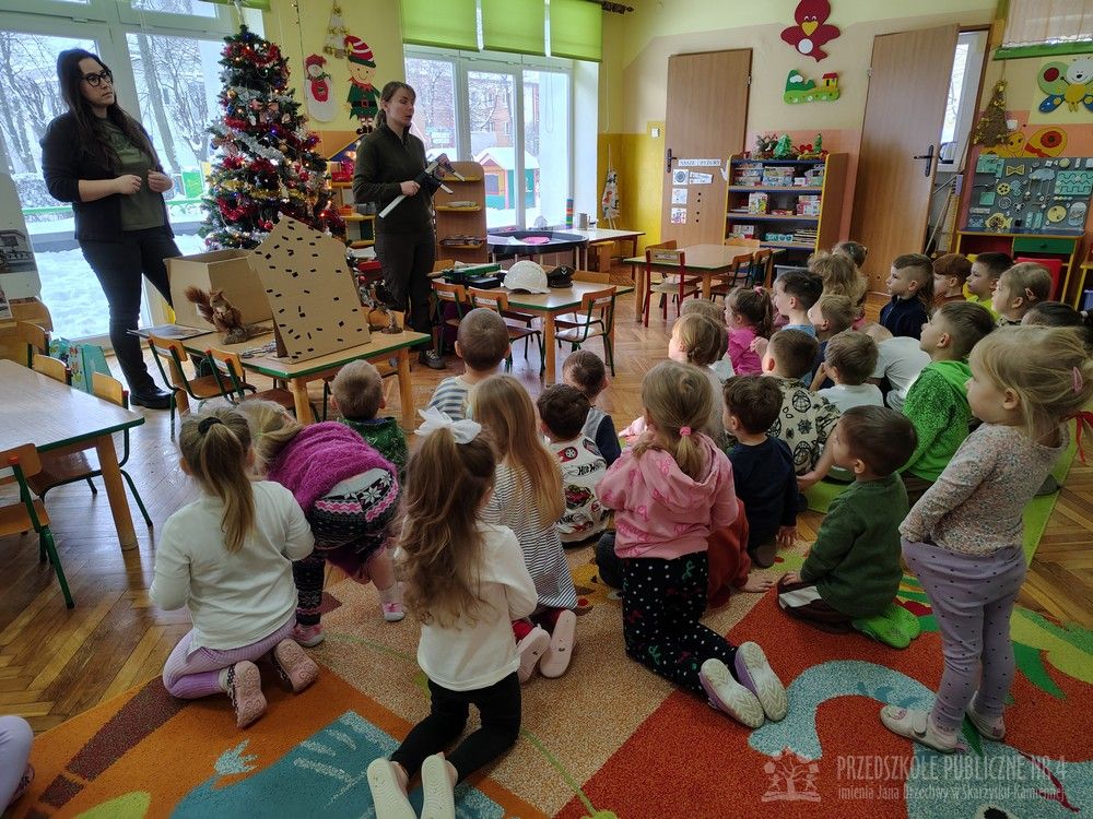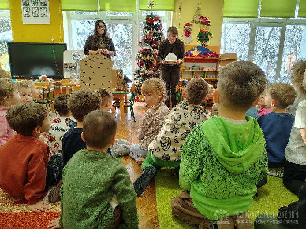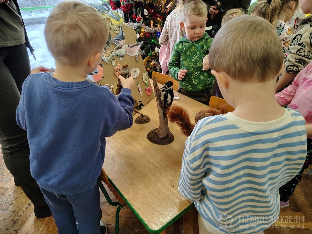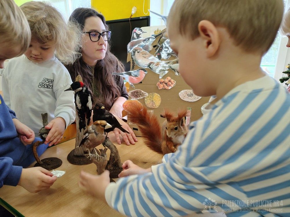 Kolejnym tematem było dokarmianie ptaków zimą. Dzieci poznały różne gatunki ptaków pozostających z nami w chłodnych miesiącach oraz dowiedziały się, czym można je bezpiecznie dokarmiać. Rozmawialiśmy o odpowiedzialności za zwierzęta i konieczności regularnego uzupełniania karmników.